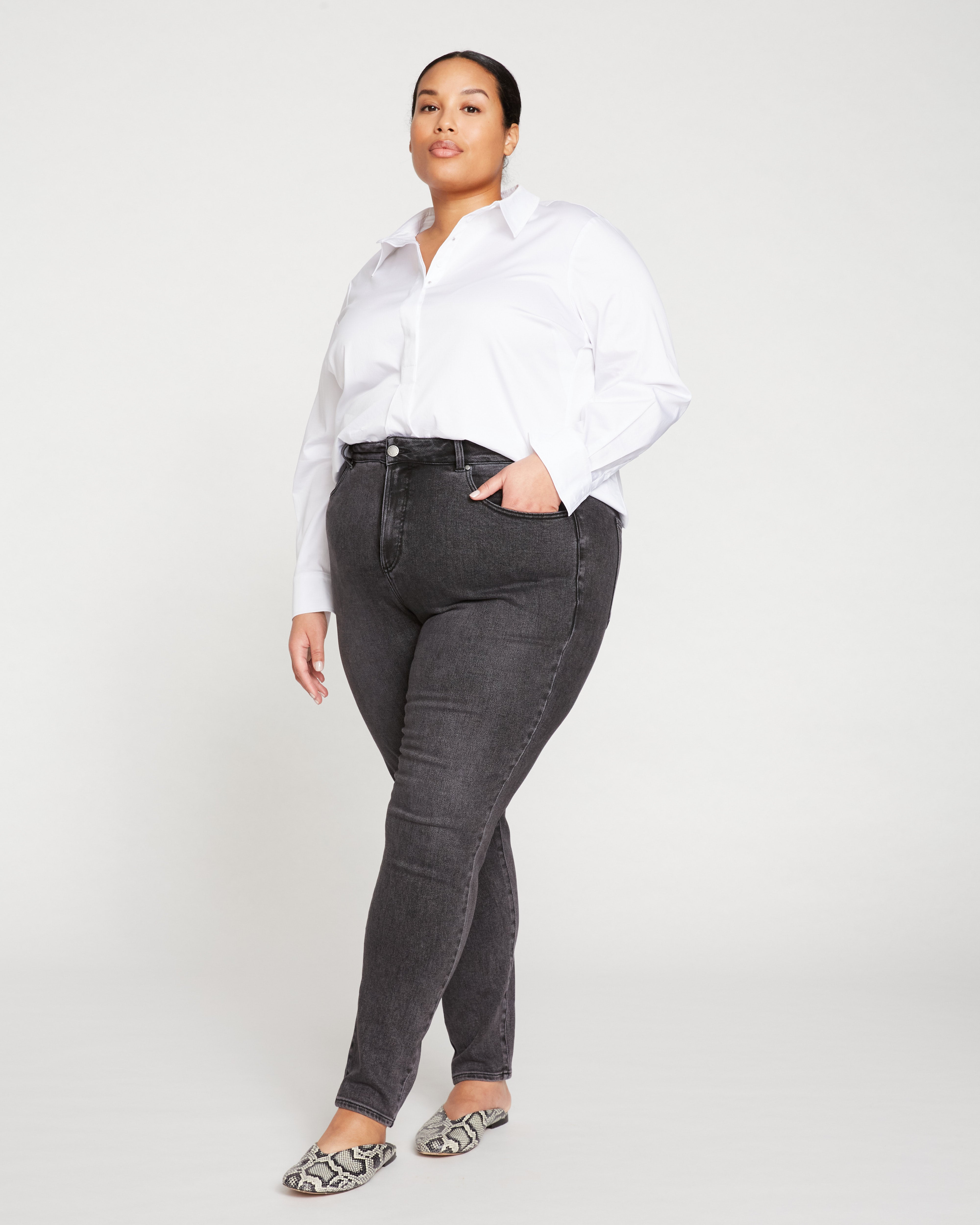 Donna High Rise Curve Straight Leg Jeans 32 Inch - Stonewash Black