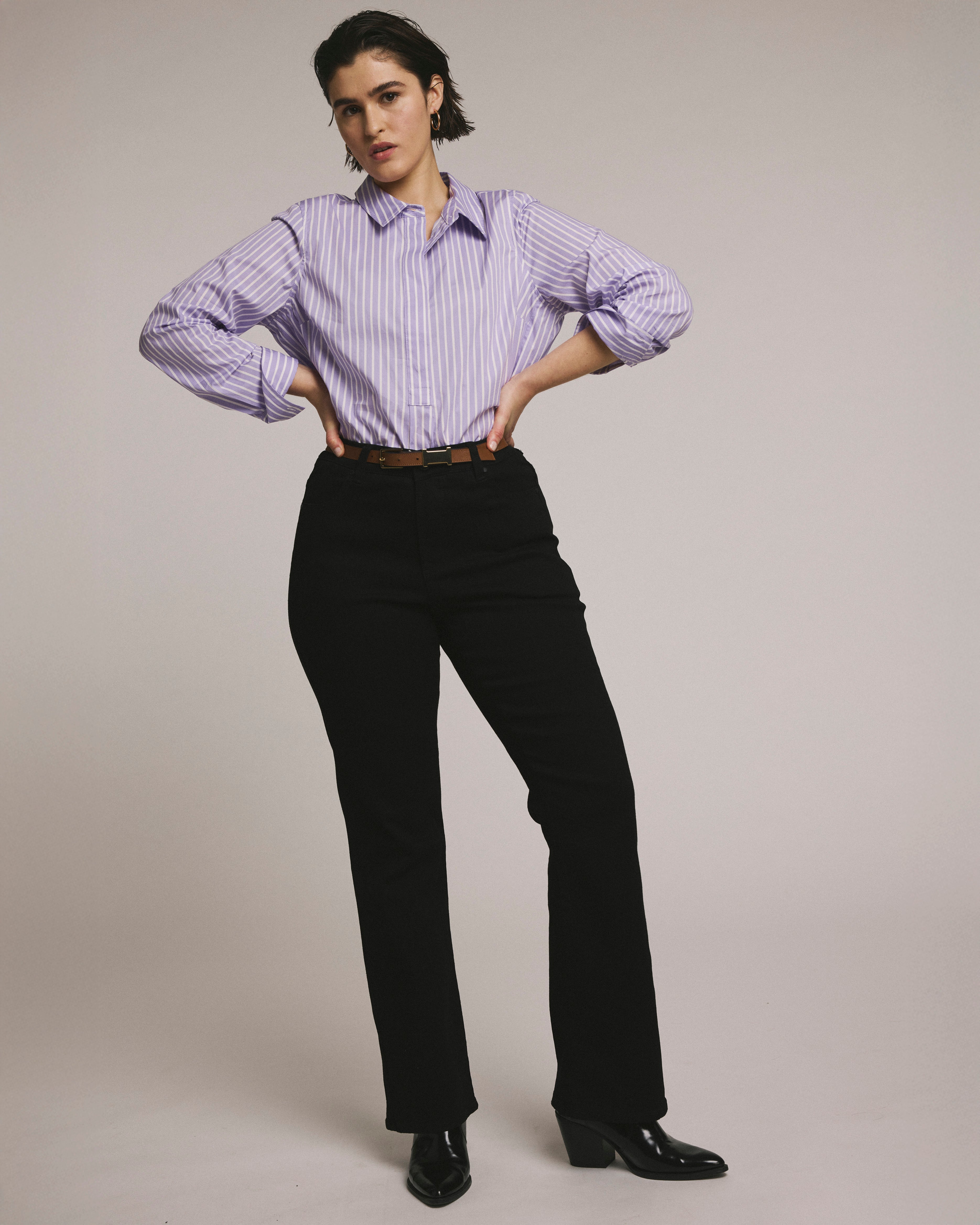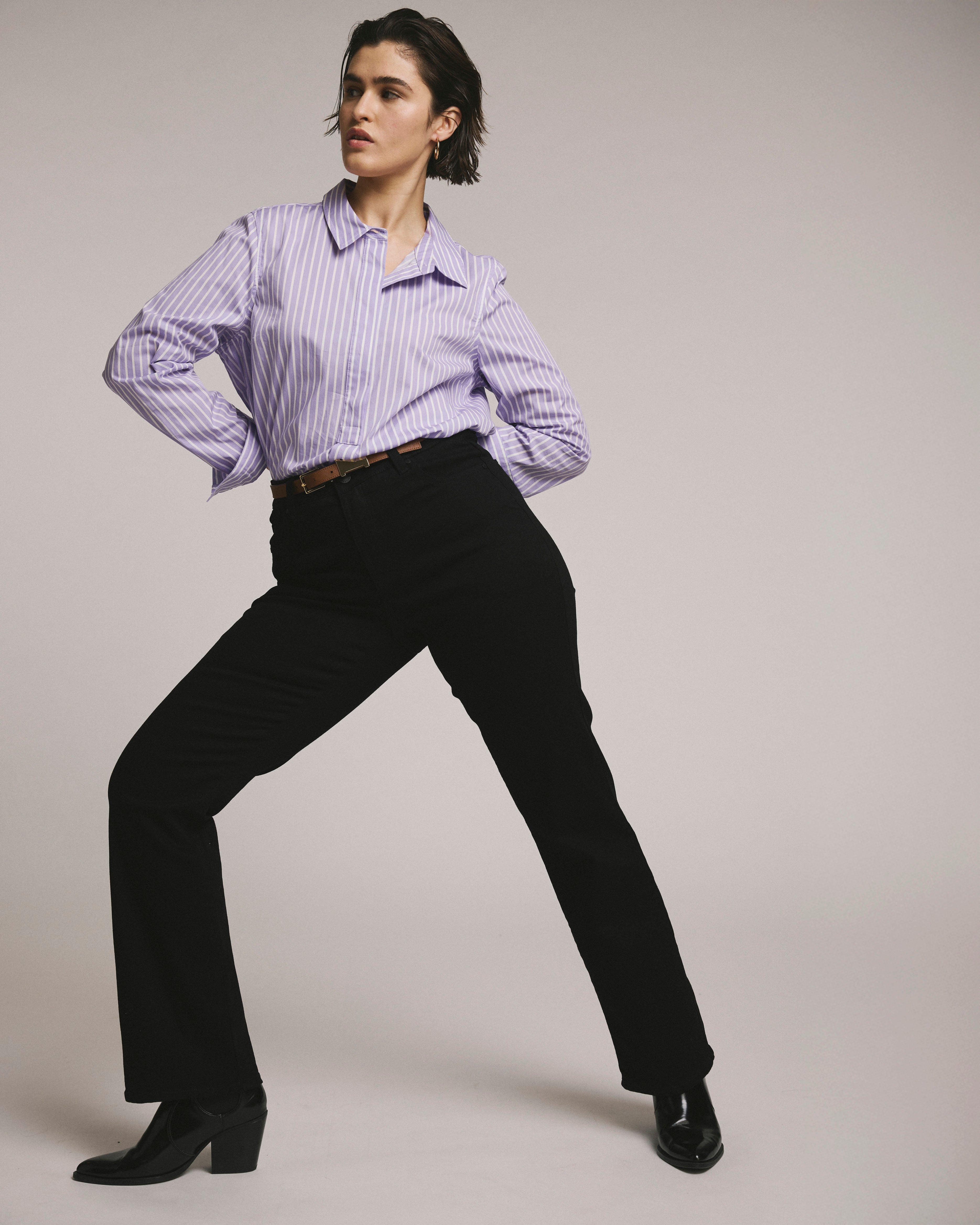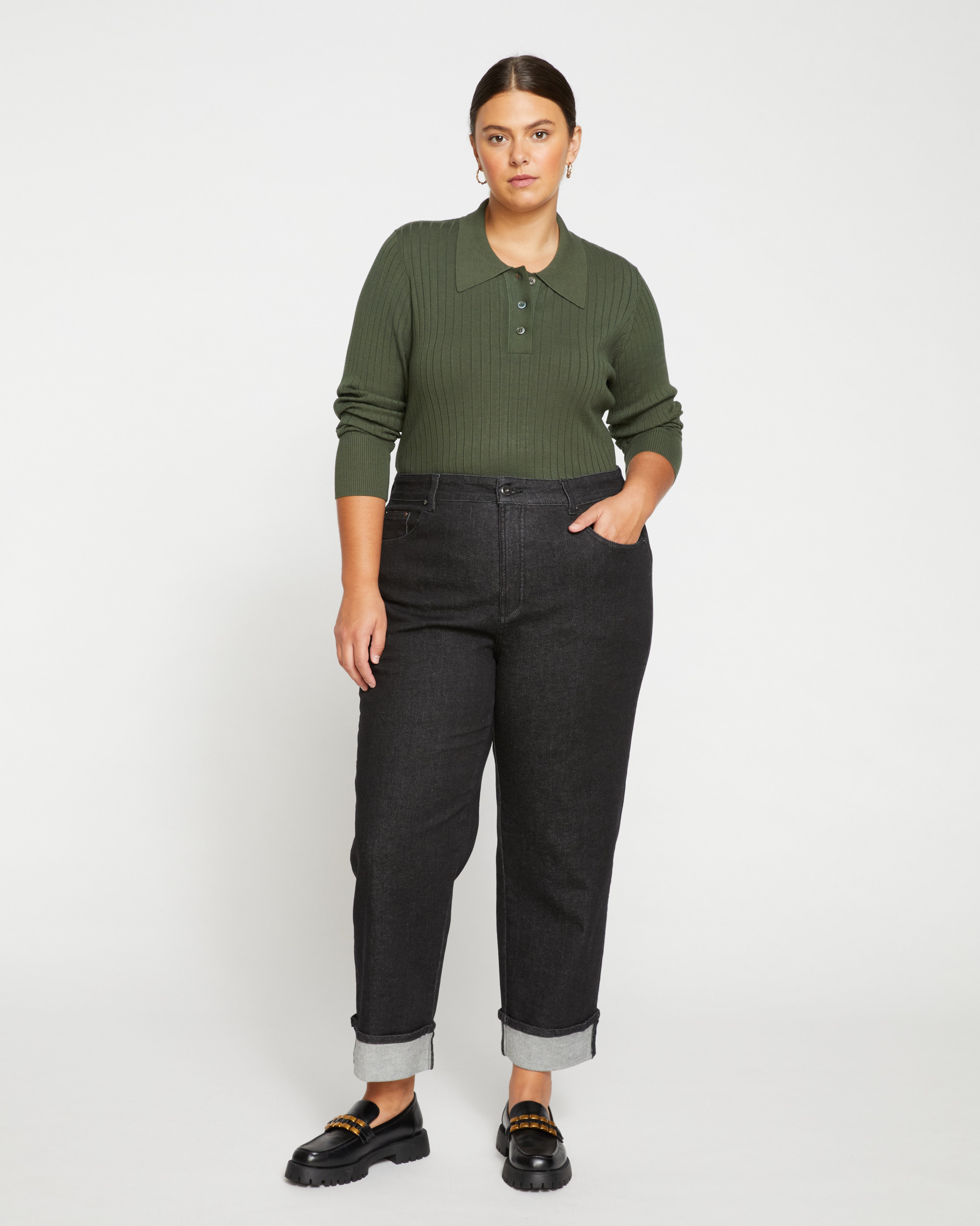 Stevie High Rise Cuffed Straight Leg Jeans - Black Selvedge