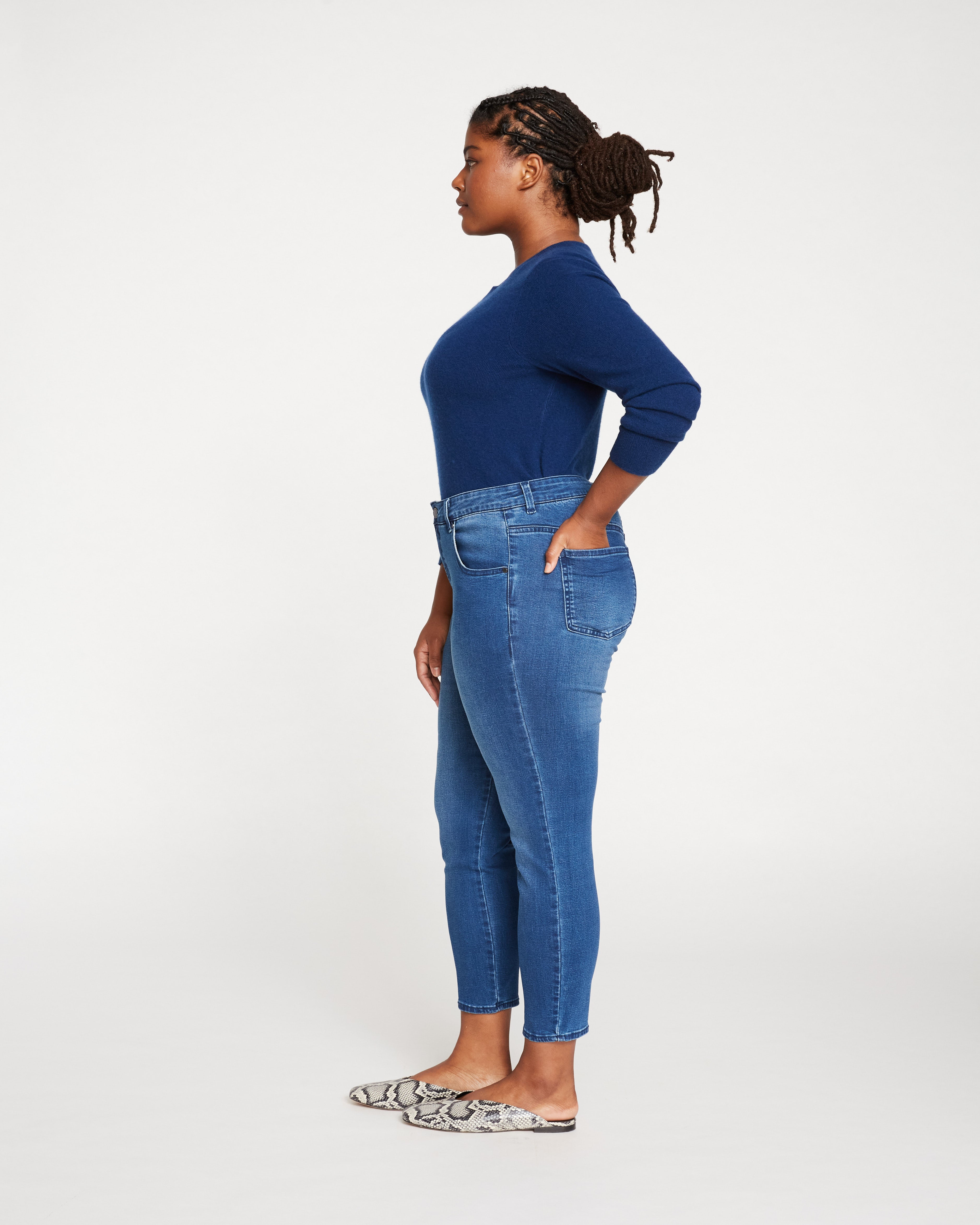 Stevie High Rise Cuffed Straight Leg Jeans - Washed Outback Blue Selvedge