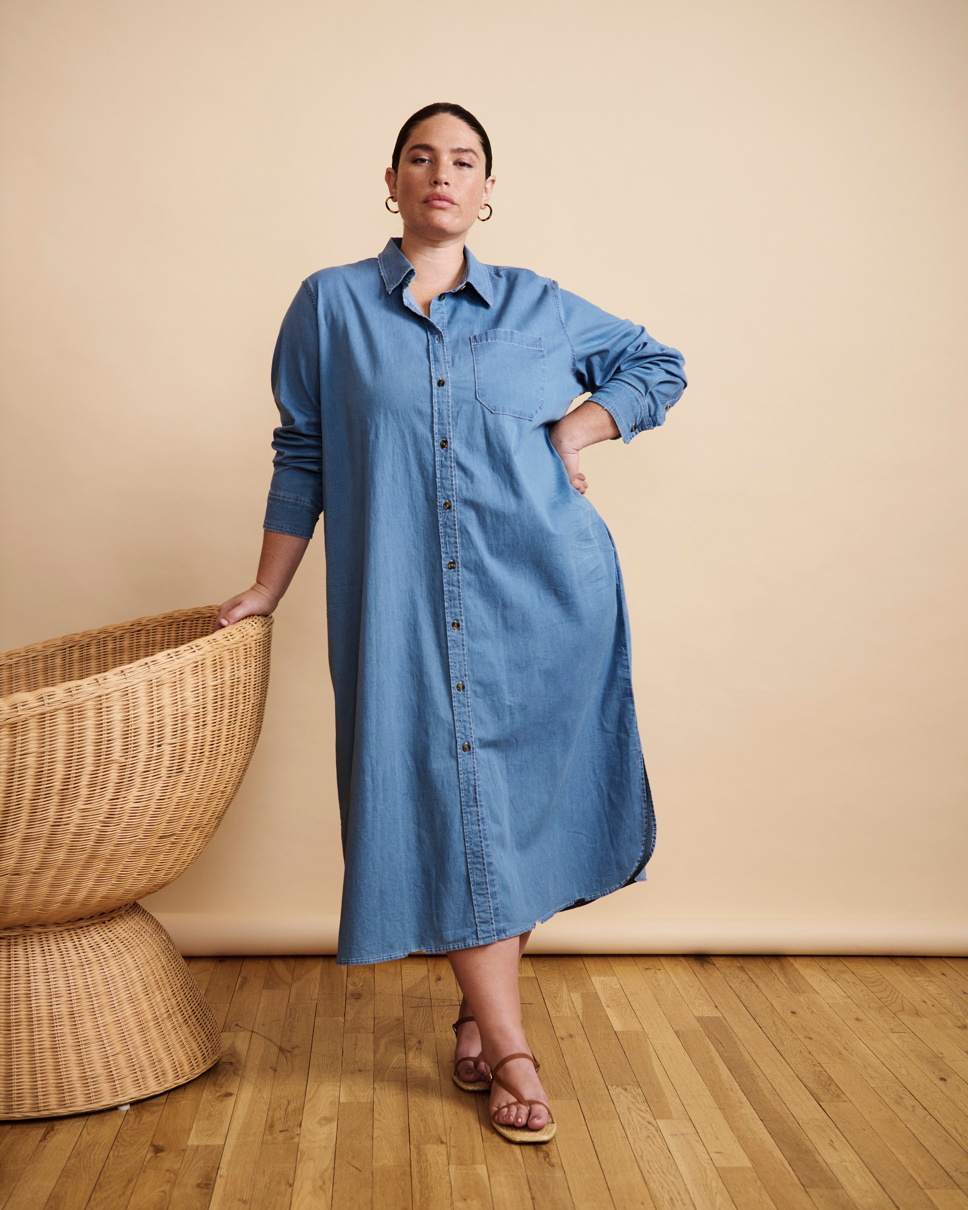 Odeon Stretch Cotton Chambray Shirtdress - Heritage Blue