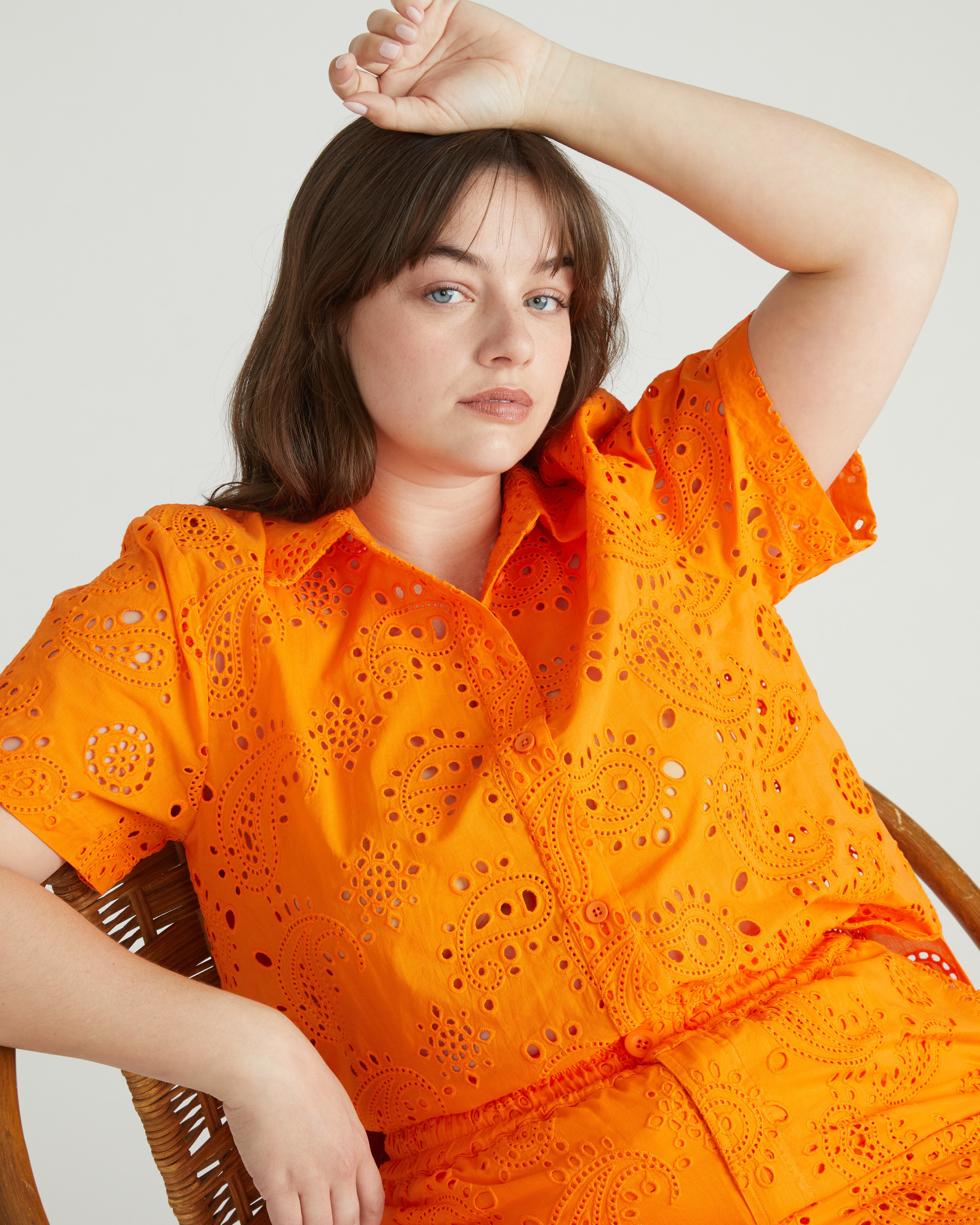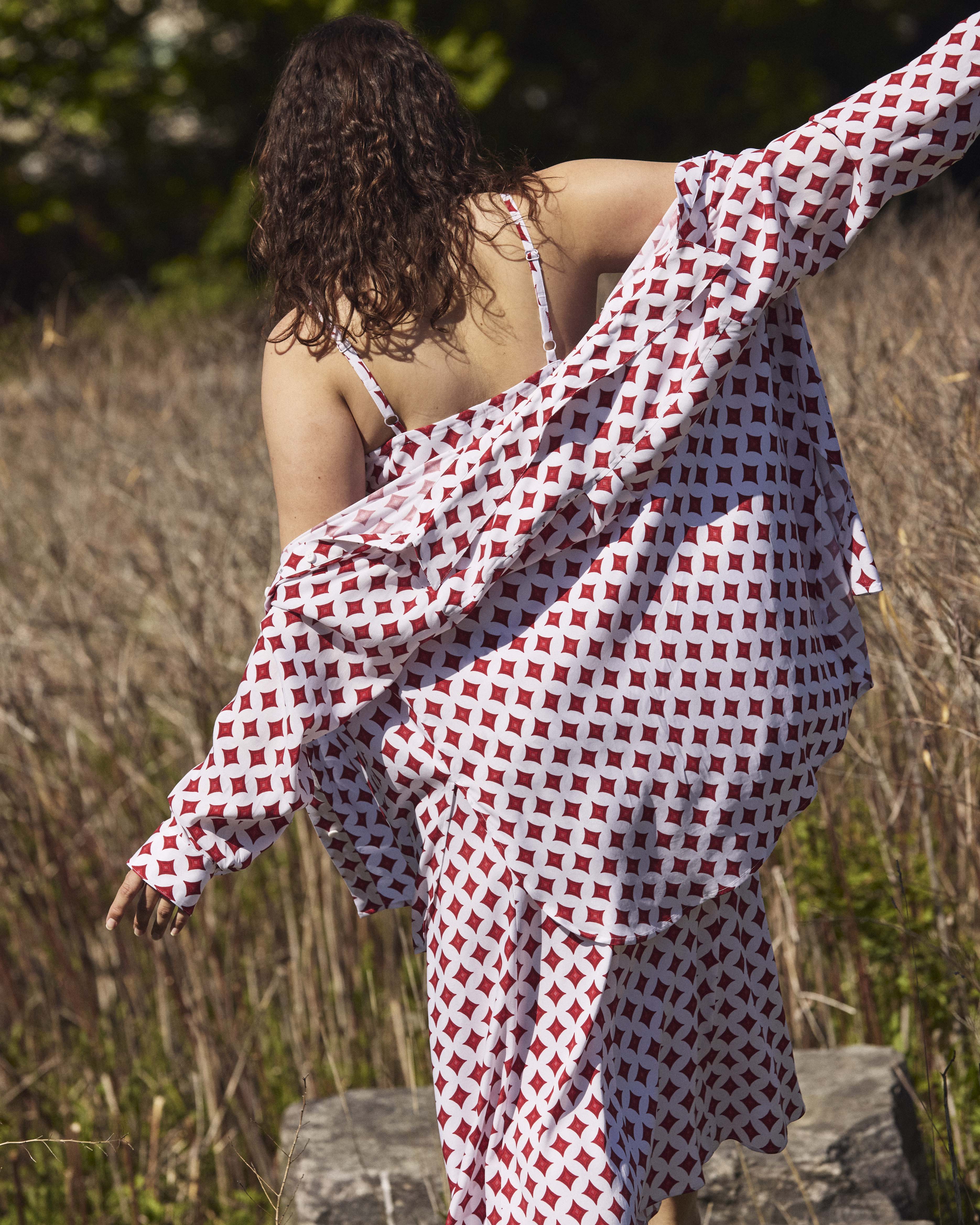 Cooling Stretch Cupro Button-Down Blouse - Morningstar Print in Red