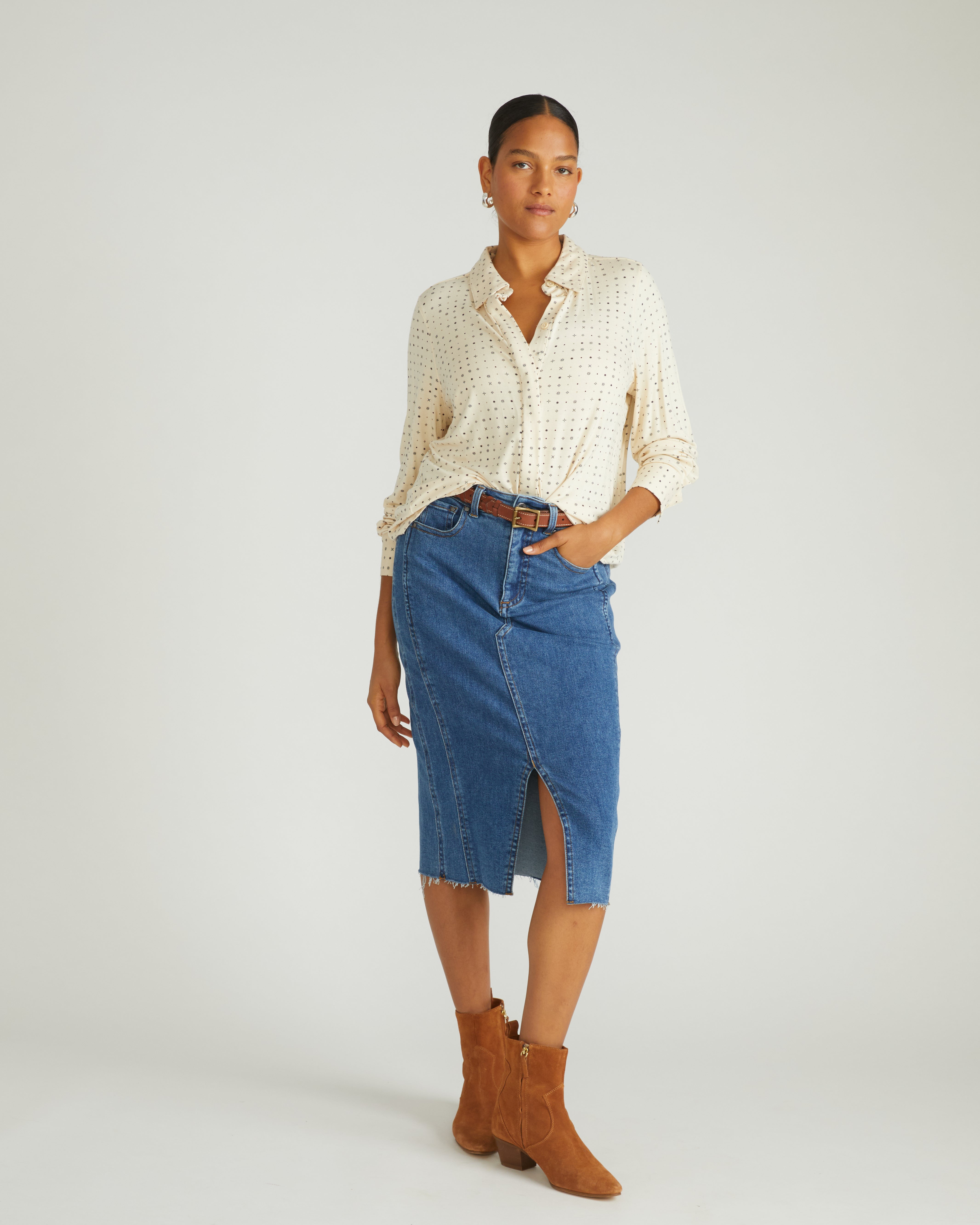 Cooling Stretch Cupro Button-Down Blouse - Cream
