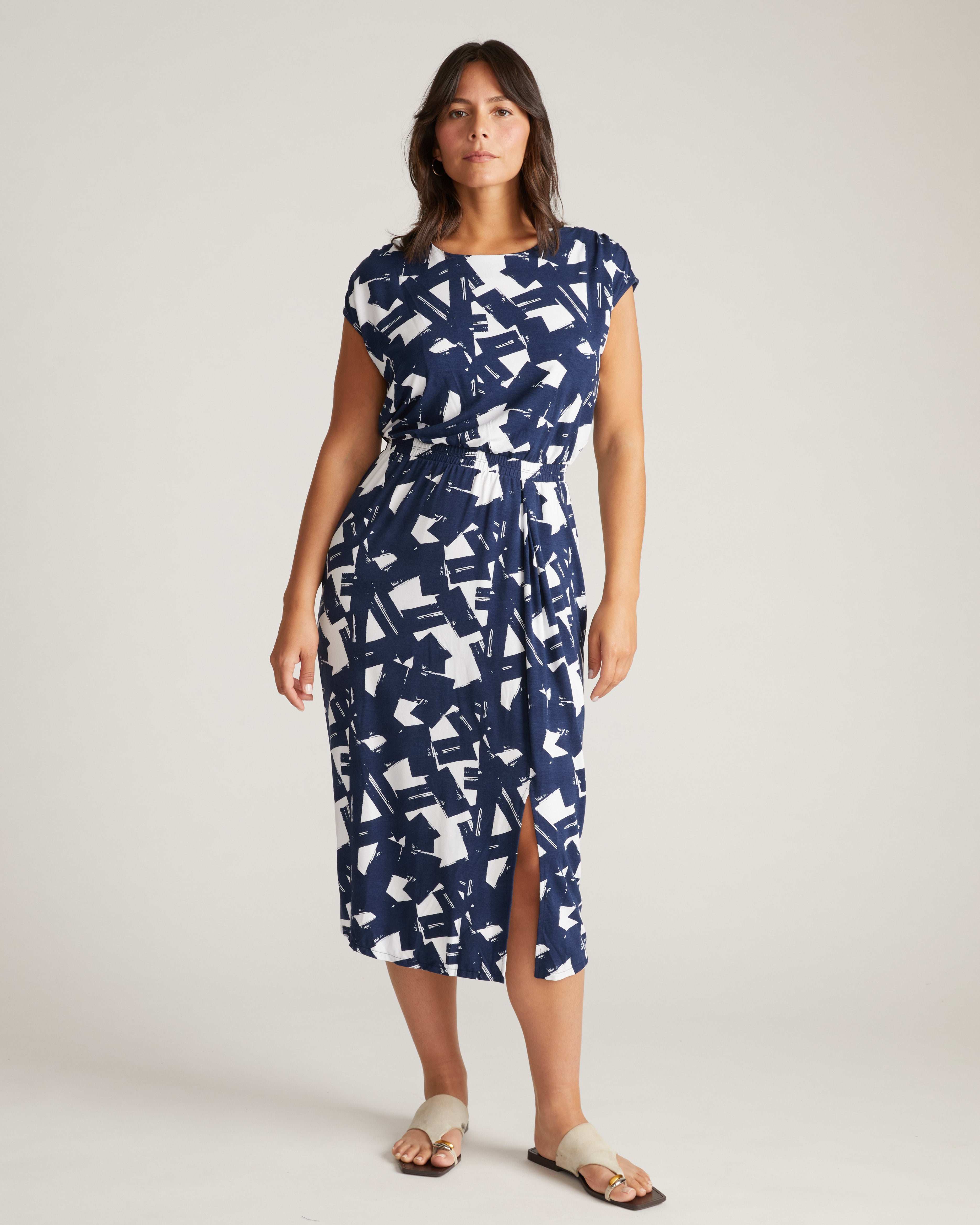 This is a dress for late, balmy nights. With a billowy blouson top, draping through the body, and a slit at the hem, this style was made for dancing. It��s made from our new jersey fabric that is so luxuriously soft and moves beautifully with you.