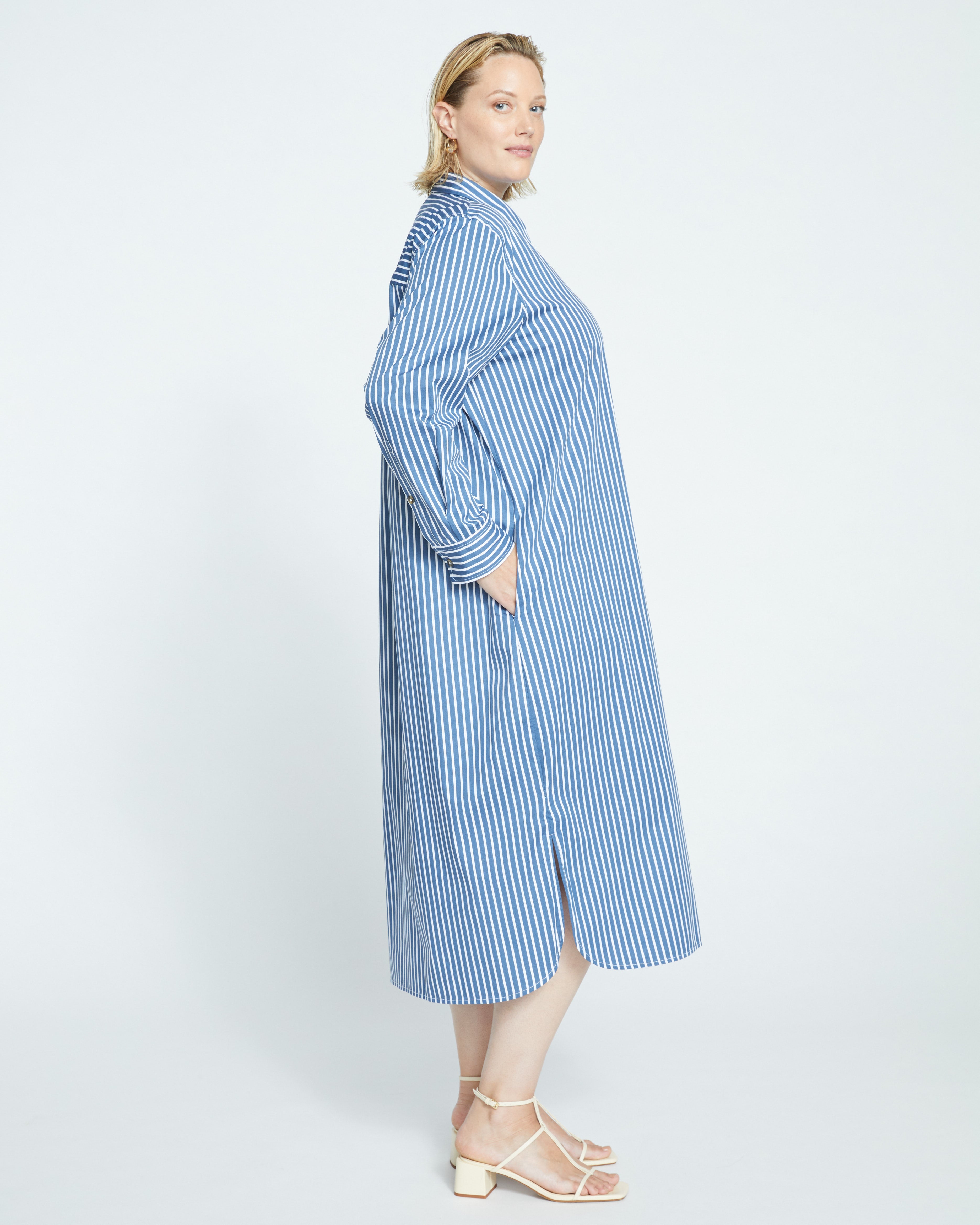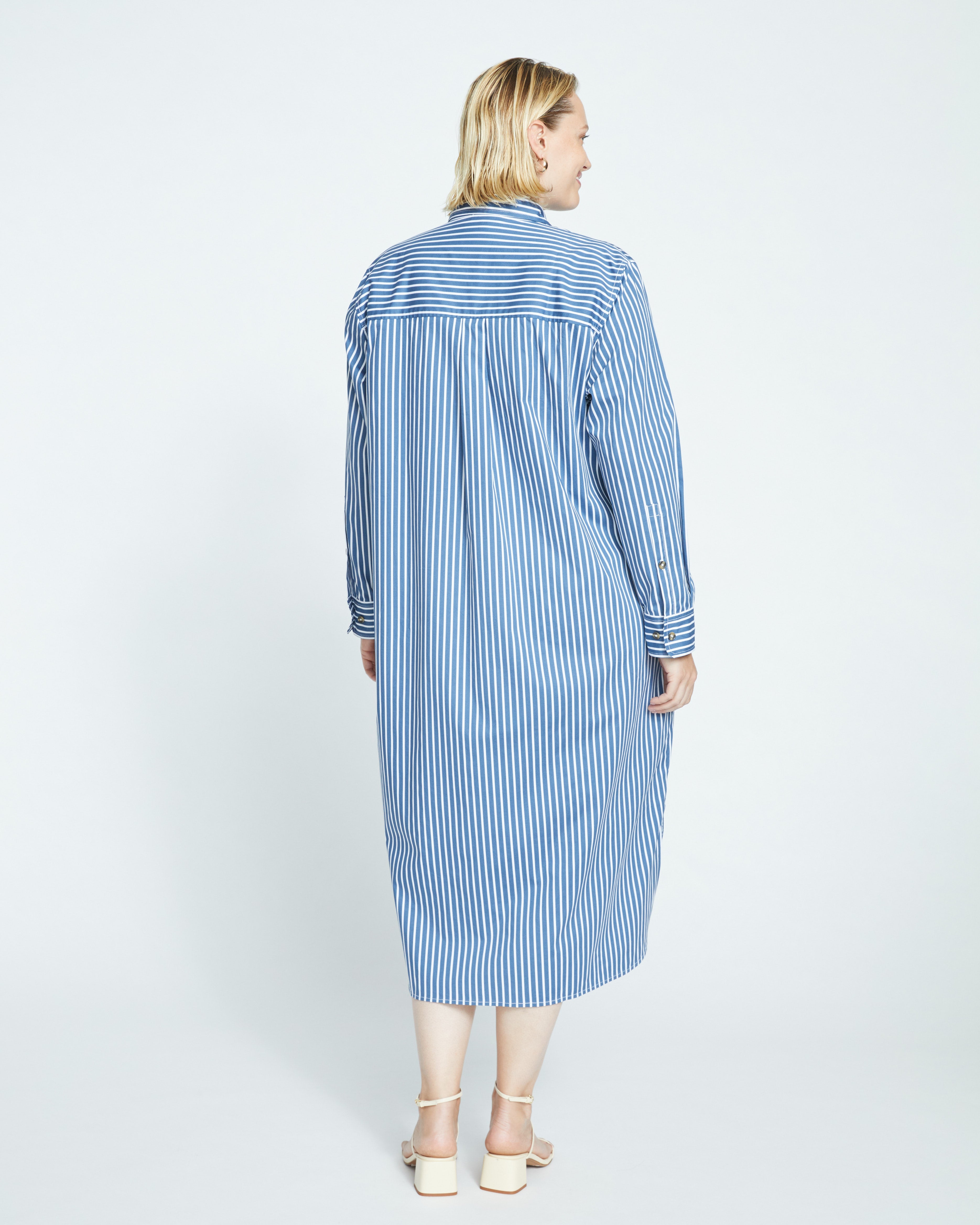 Odeon Stretch Poplin Shirtdress - Bleu Scolaire/White Stripe