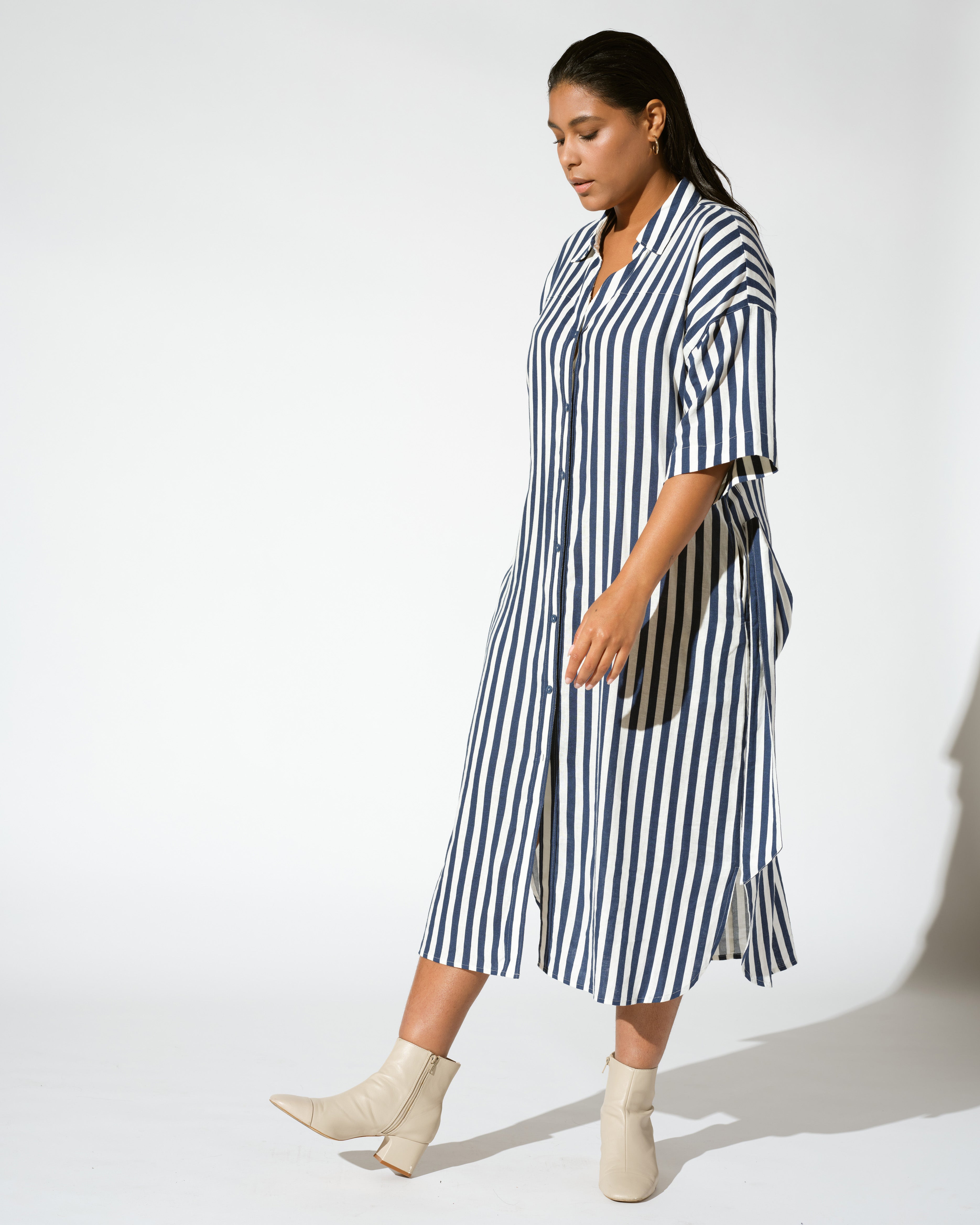 Plaza Linen Shirtdress - Deep Blue/White Stripe