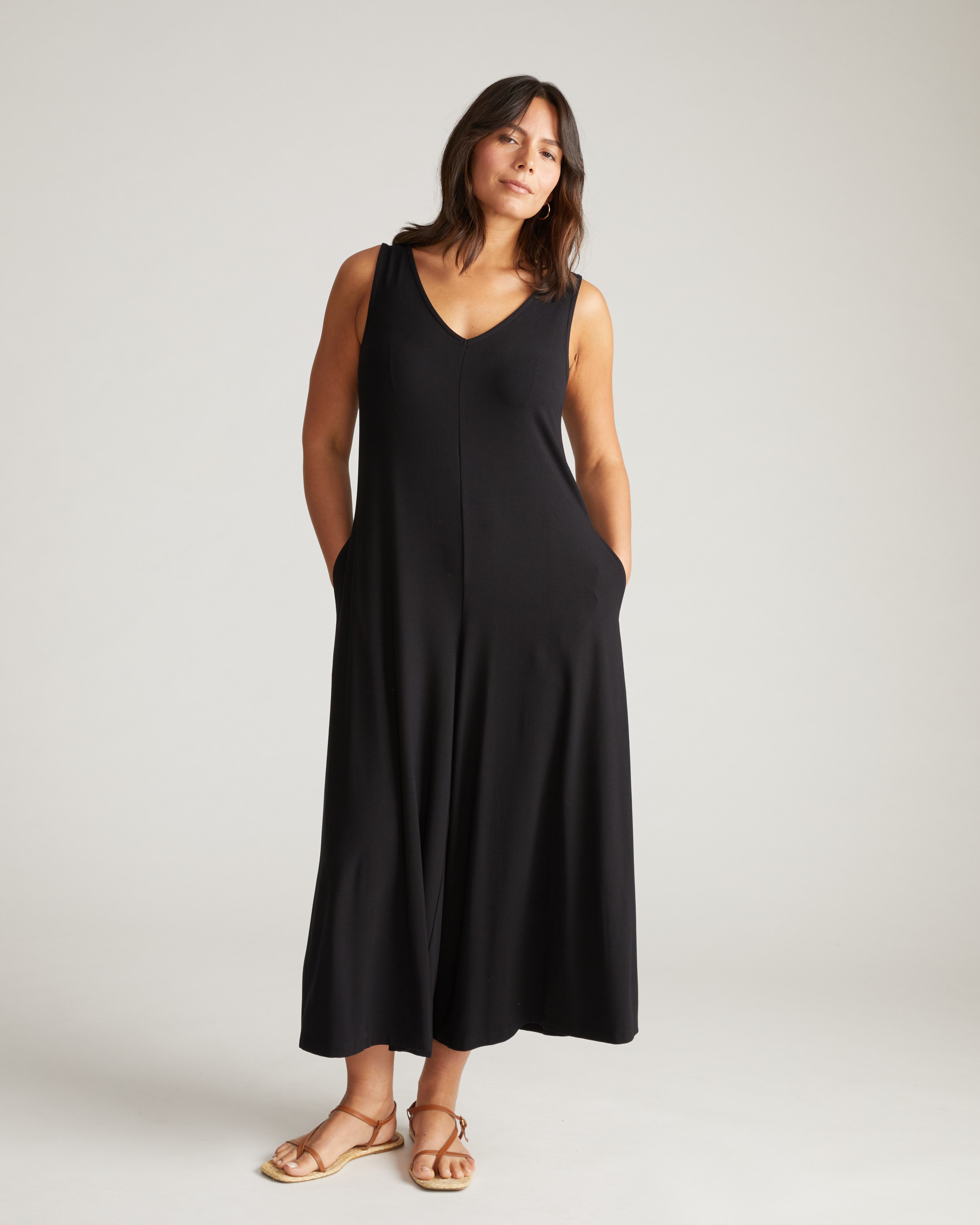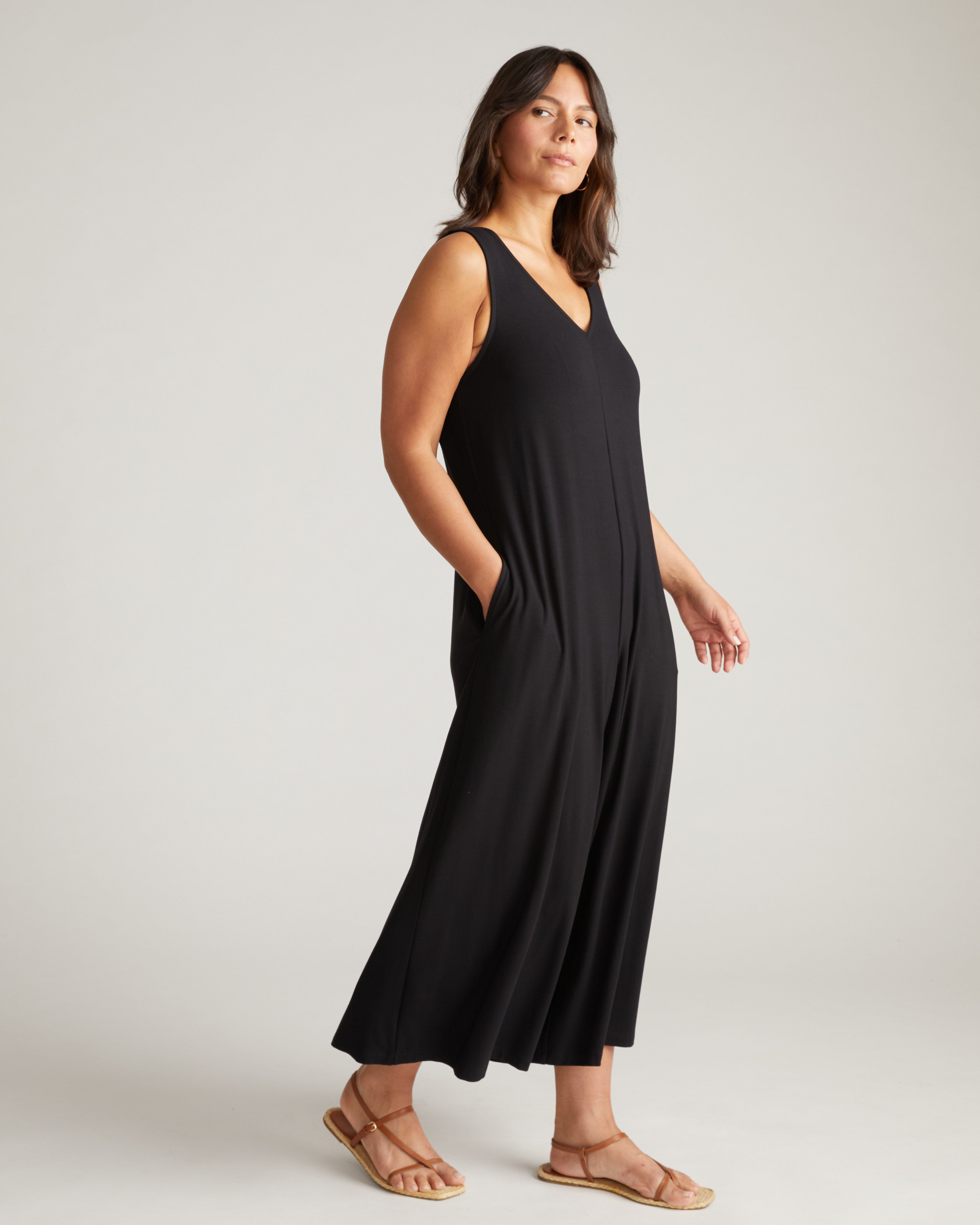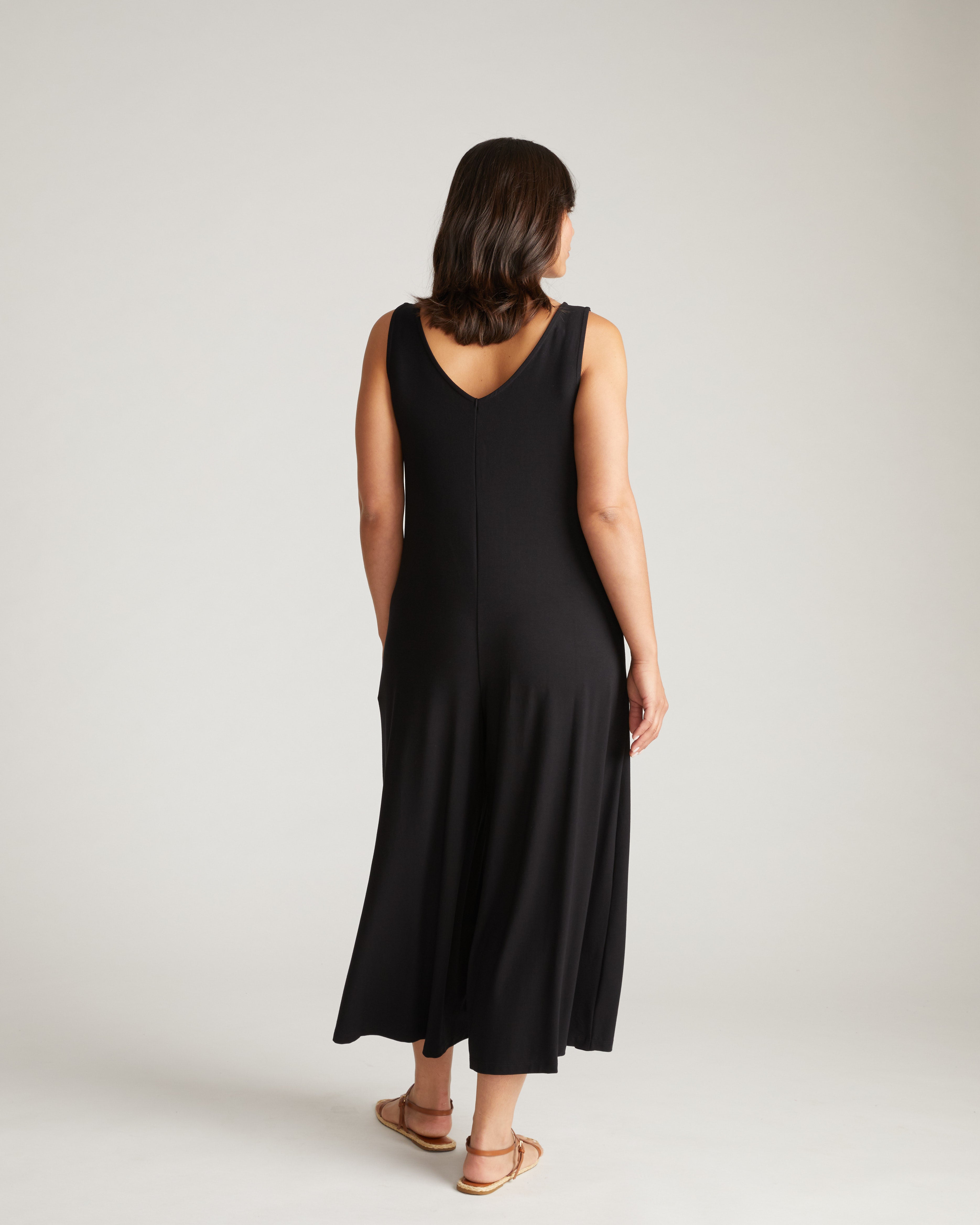 The Sunny Divine Jersey Jumpsuit is all about simplicity and freedom, marrying the easy movement of an A-line dress with the comfortable fit of a jumpsuit. This effortless style keeps its minimalist design with no need for zippers or buttons, and the stretch viscose jersey fabric is soft against the skin, making it a joy to wear.