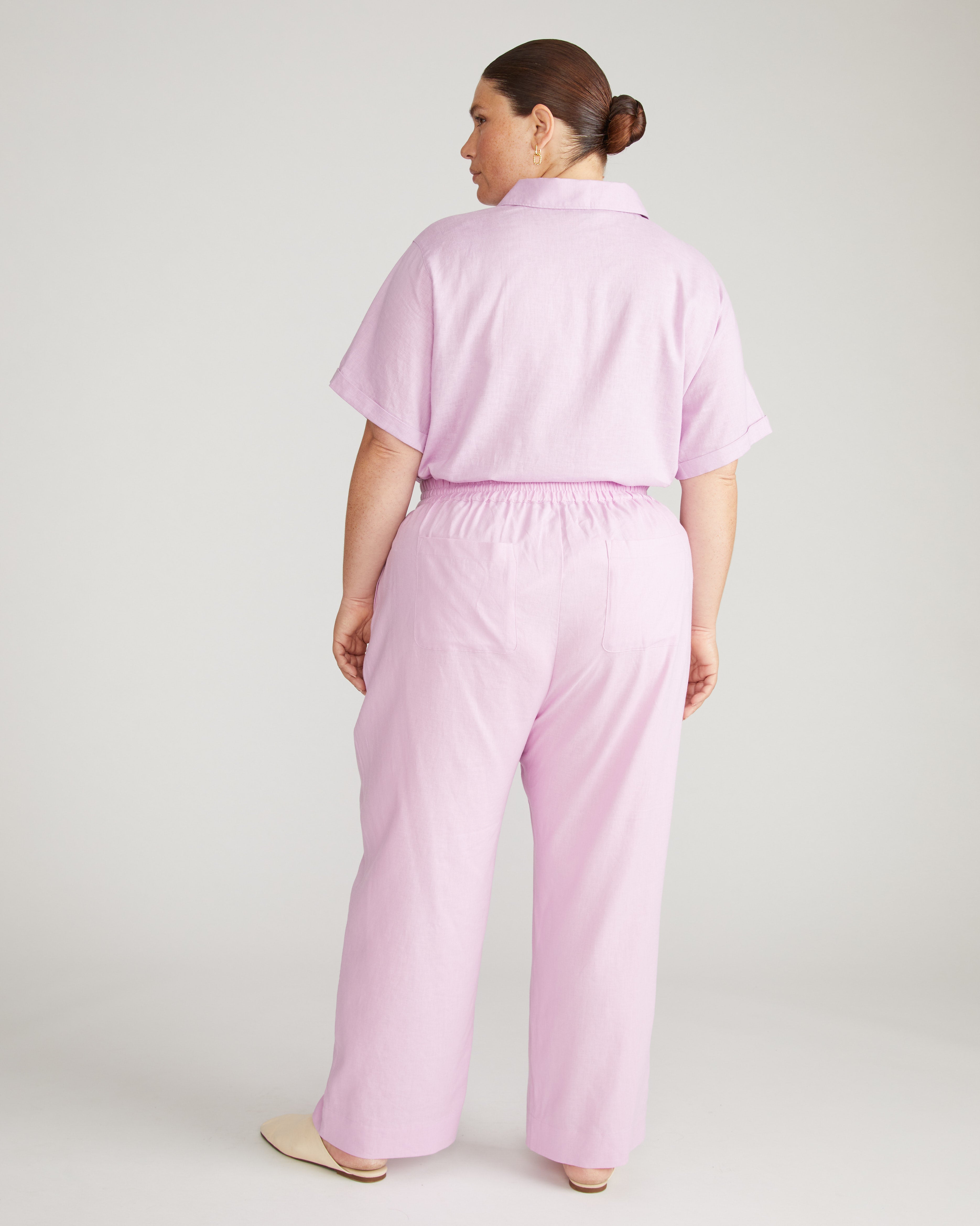 The cropped pants every summer wardrobe needs. With an elastic waist and a straight leg that hits right at the ankle, these airy pull-on bottoms were made from our signature stretch linen that moves with you and feels like it’s floating effortlessly over your body. The innovative fabric has linen’s beloved textural look and feel with more freedom of movement. As easy and flexible as your loose summer plans. Additional details include the hip and back pockets plus ruching for a luxurious touch. Get ready to wear these wherever, whenever the weather is warm.