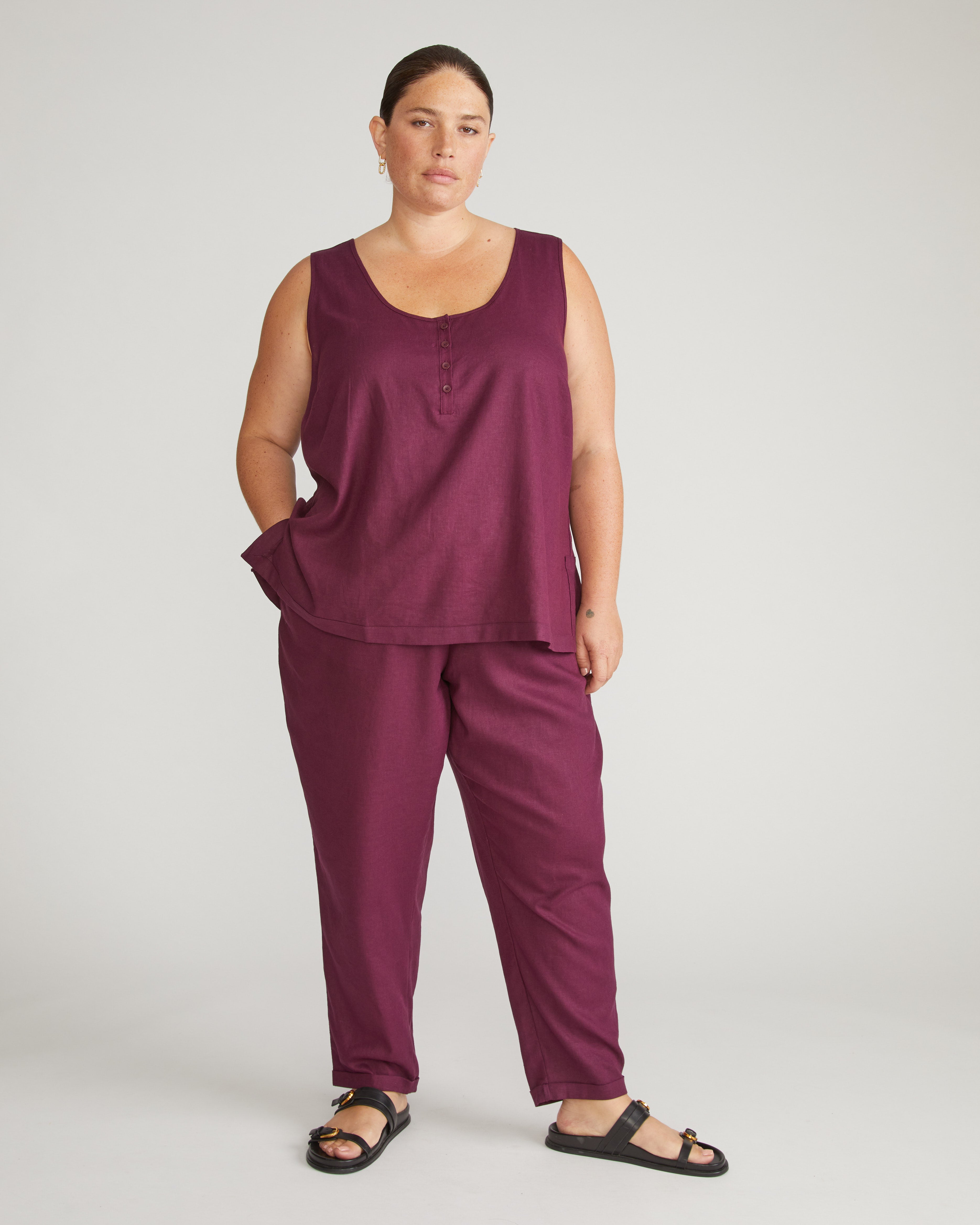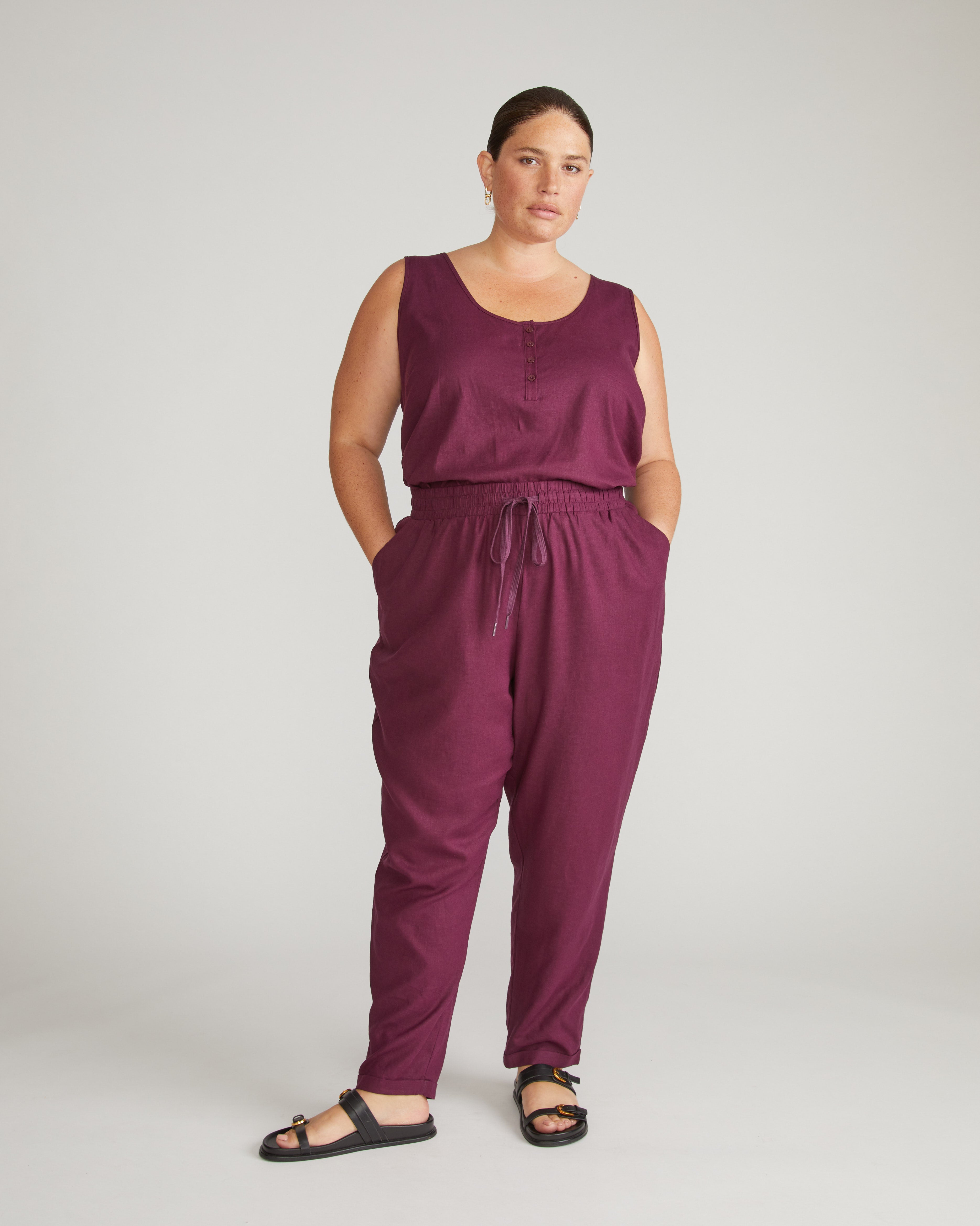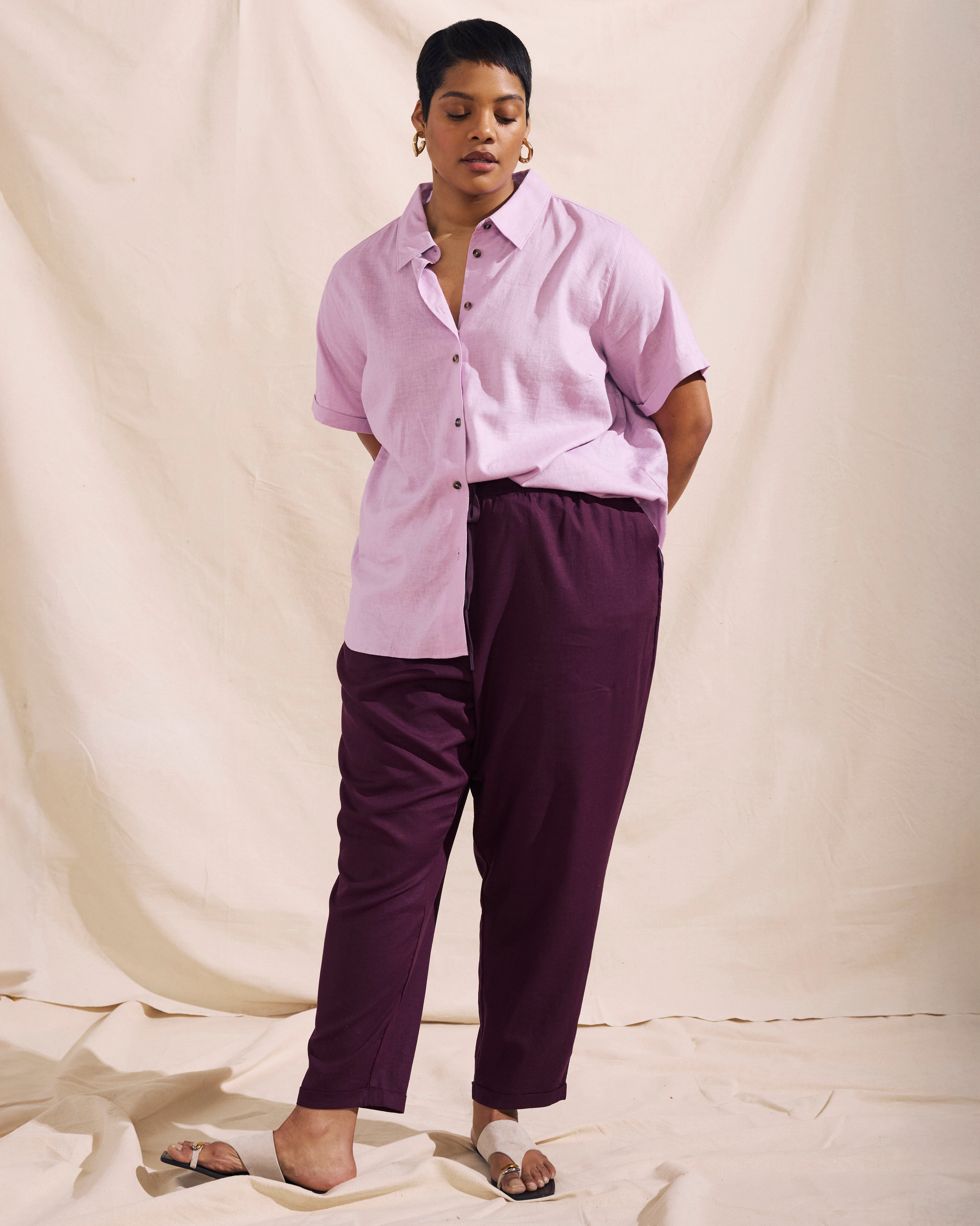 Our newest silhouette in our best-selling range of stretch linen pants, the Sayville Drawstring Pant features a softly tapered leg, a cuffed hem, and a subtle cropped length that nods to warmer days ahead. The waistband has an encased elastic as well as a drawstring detail—so no rolling or slipping at the waist—and is cut for an easier fit around the hip. Like holding a shell to your ear, you can't help but hear those ocean waves calling.