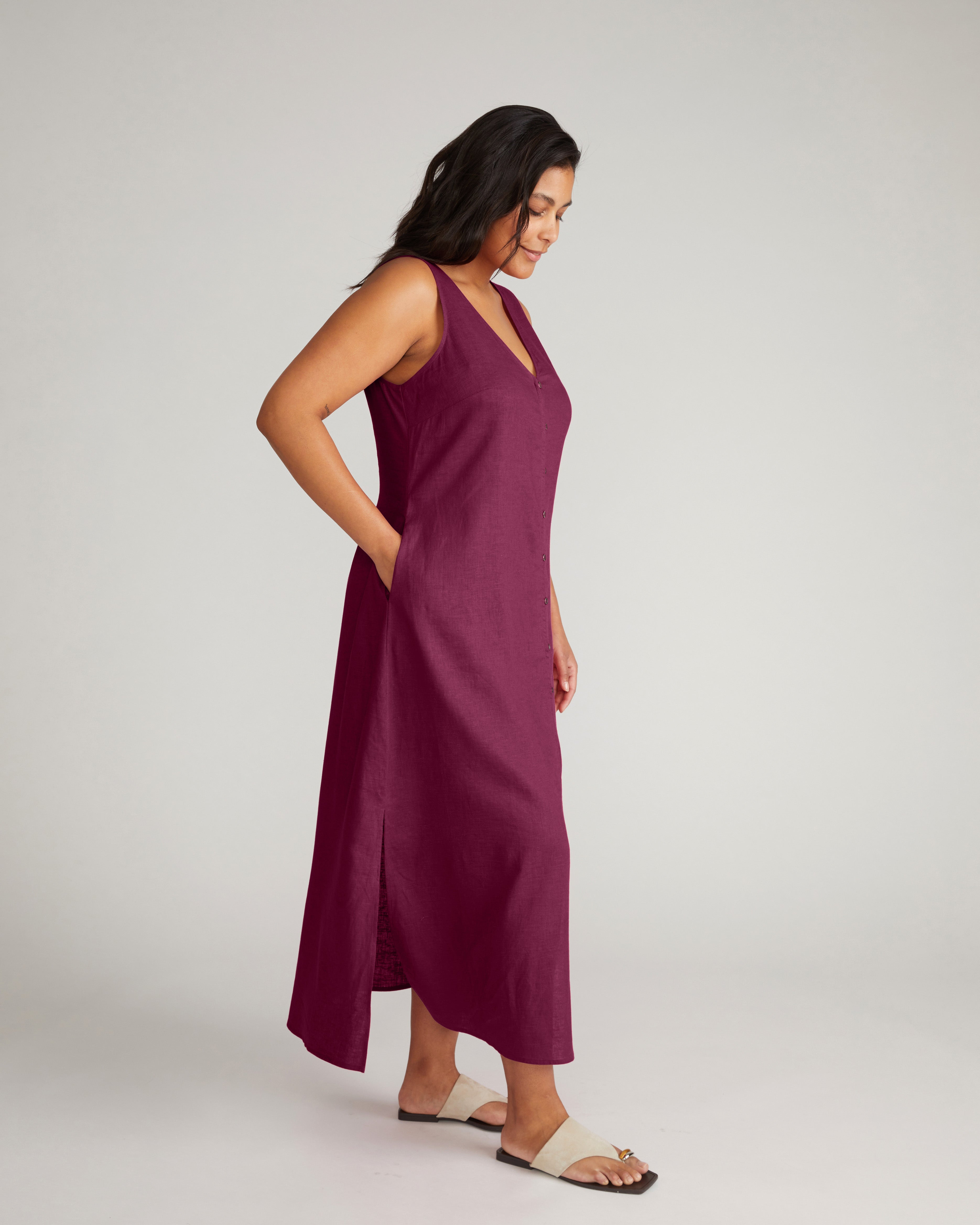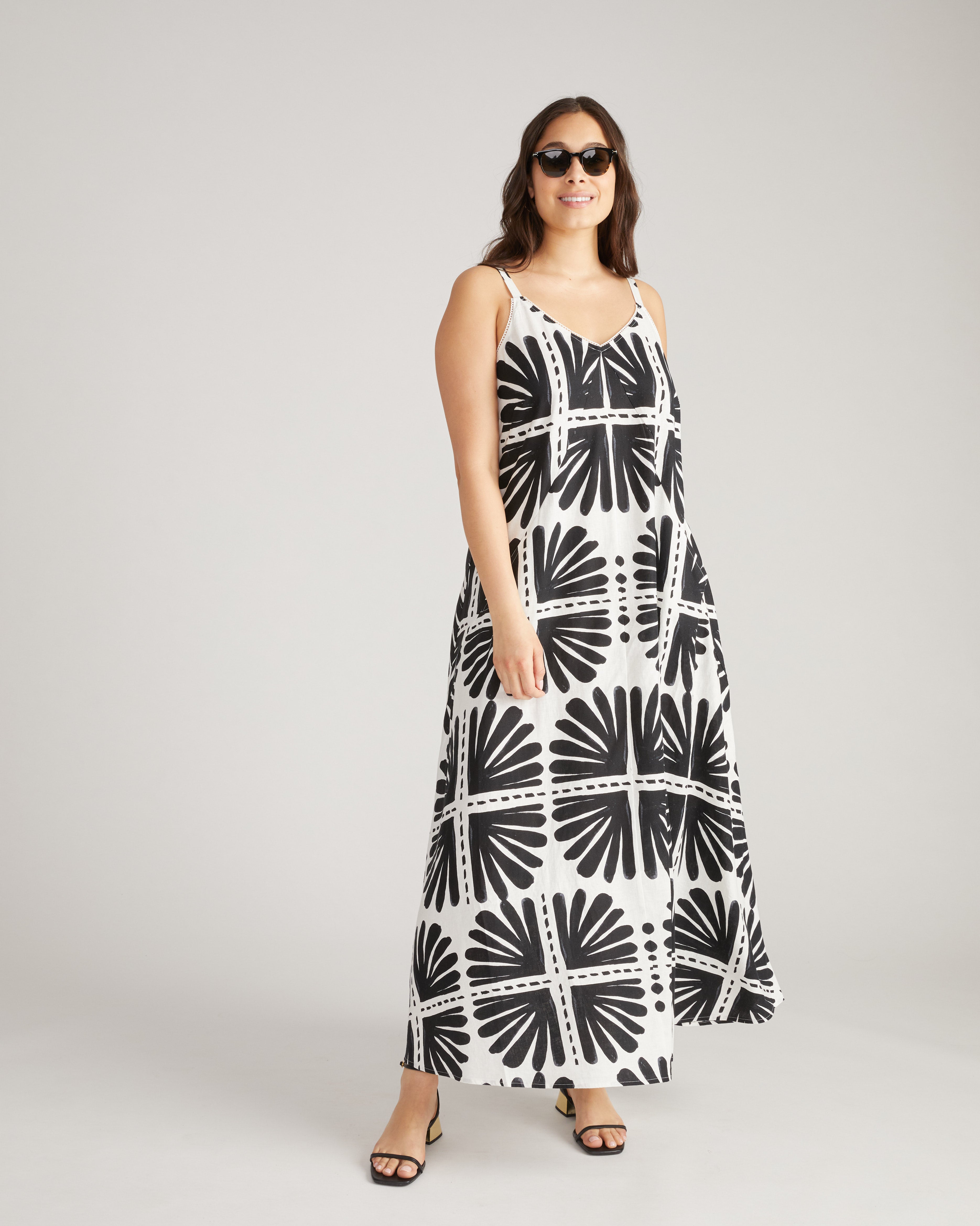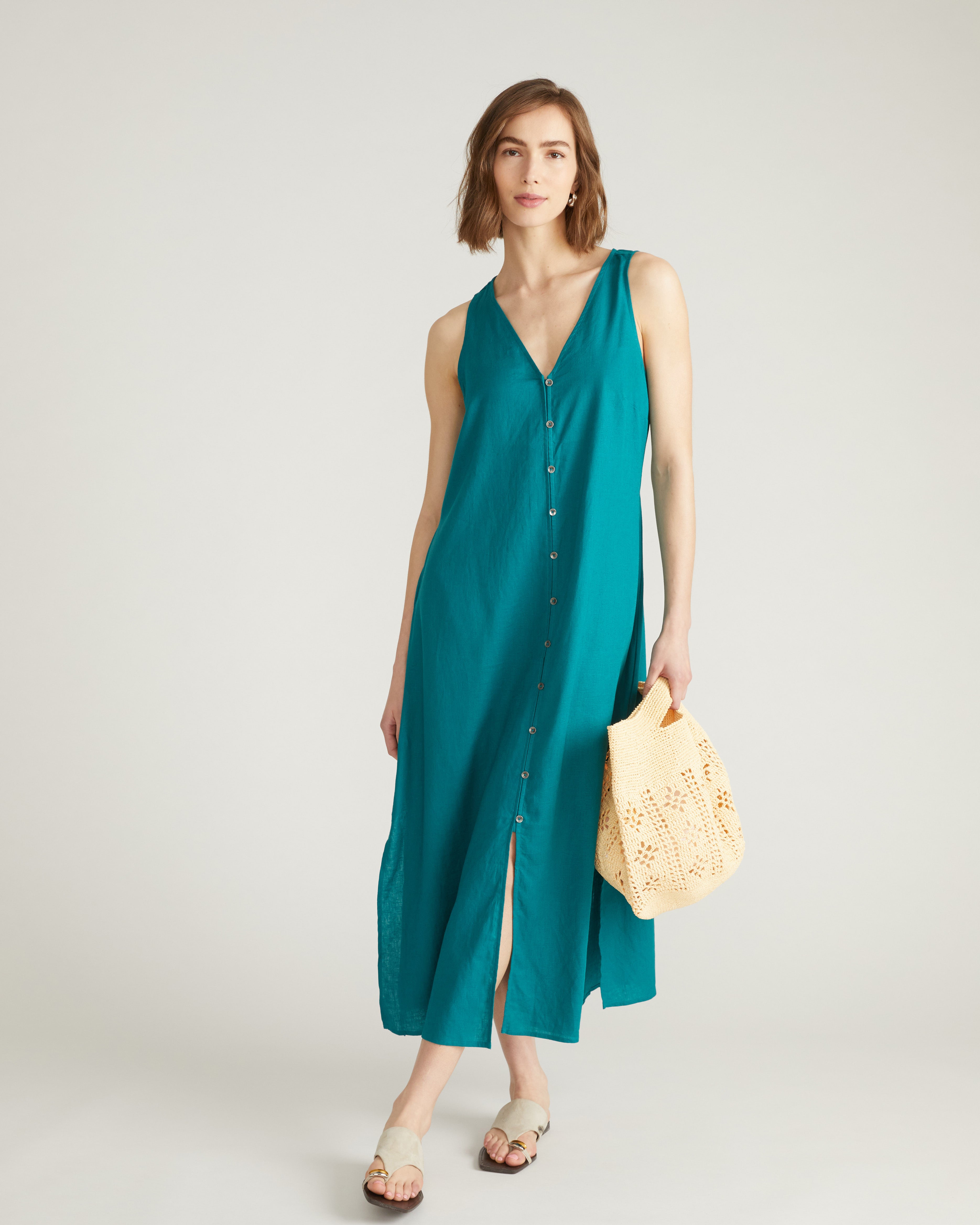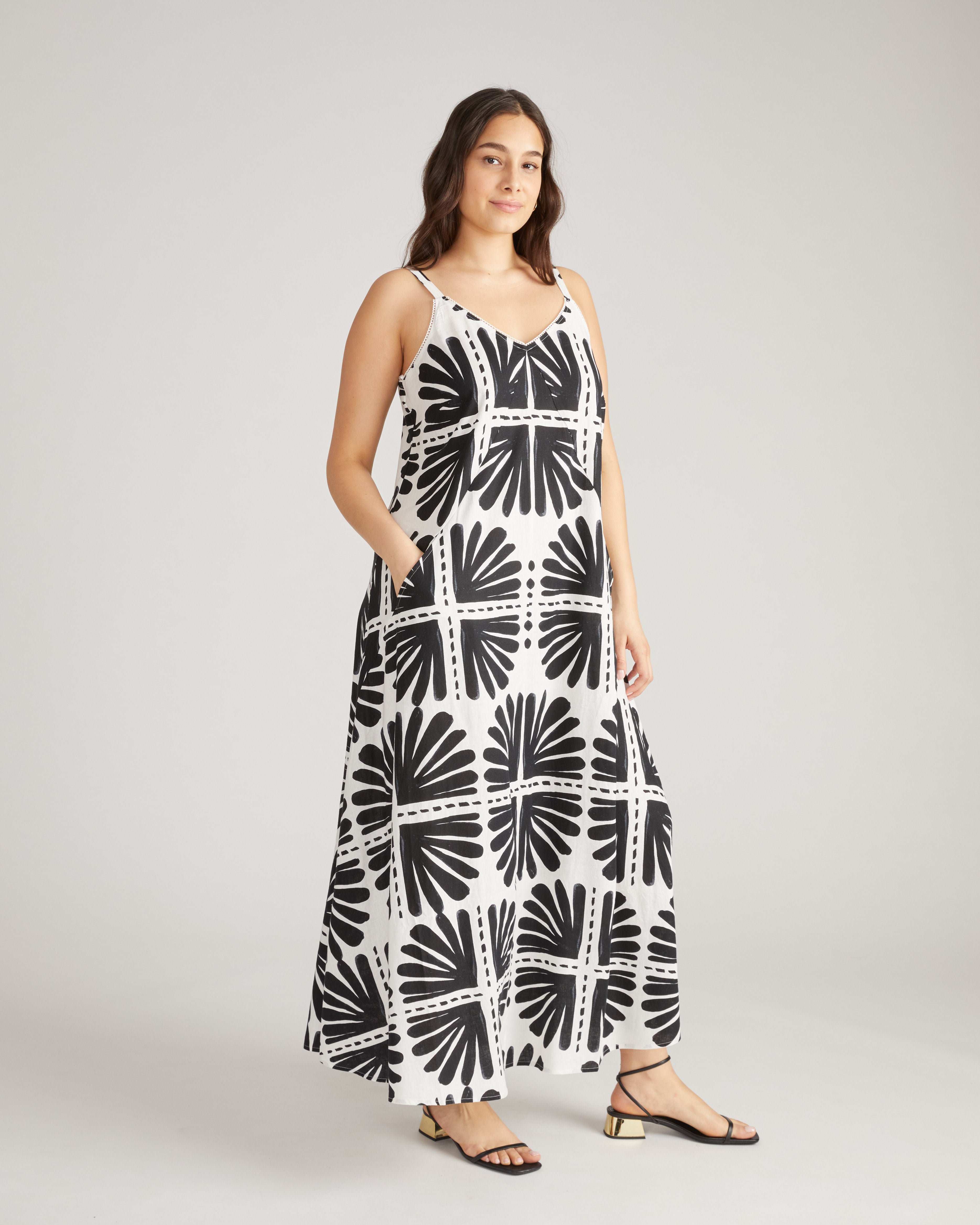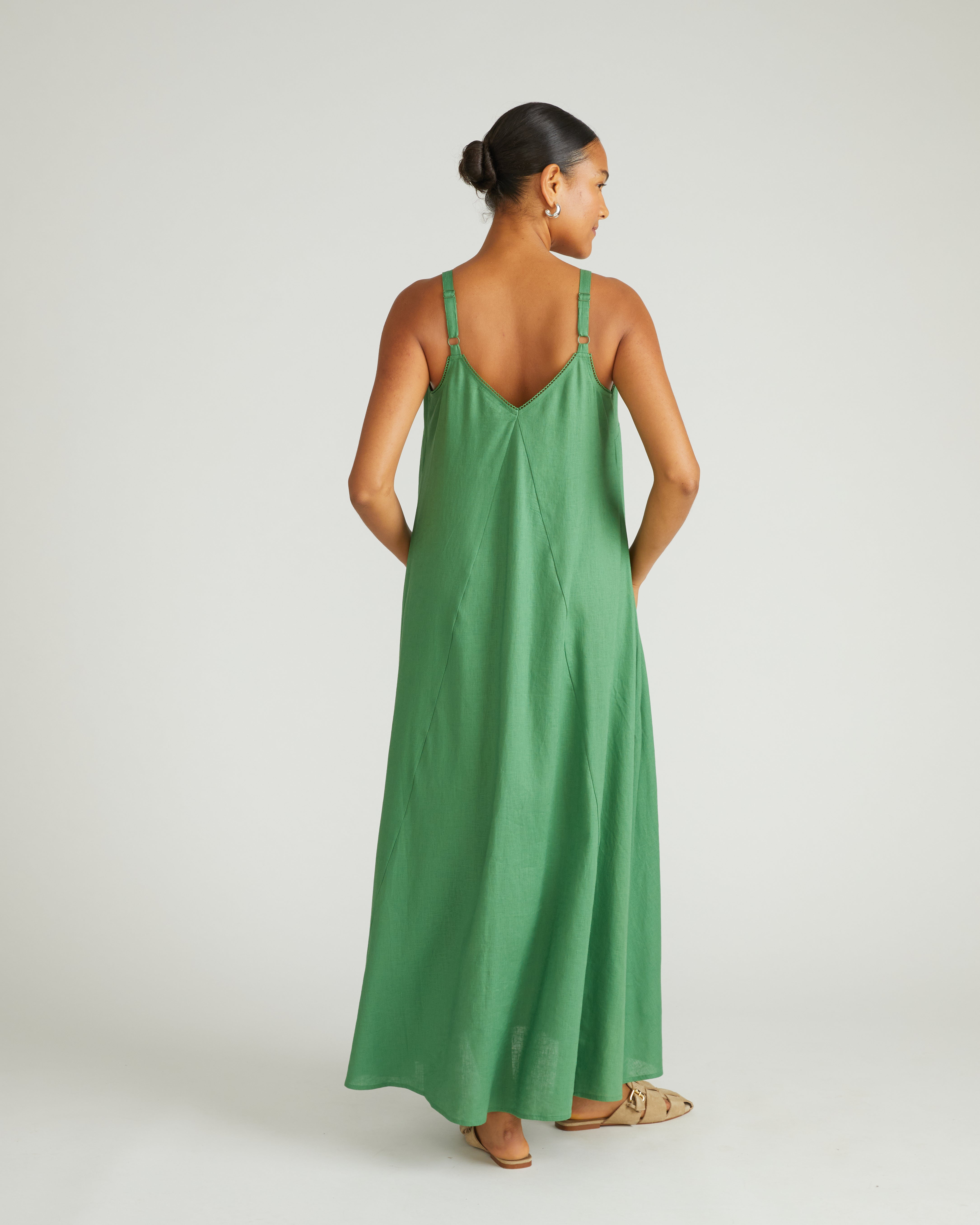 Islet Button-Down Linen Maxi Dress - Beachgrass Print in Green