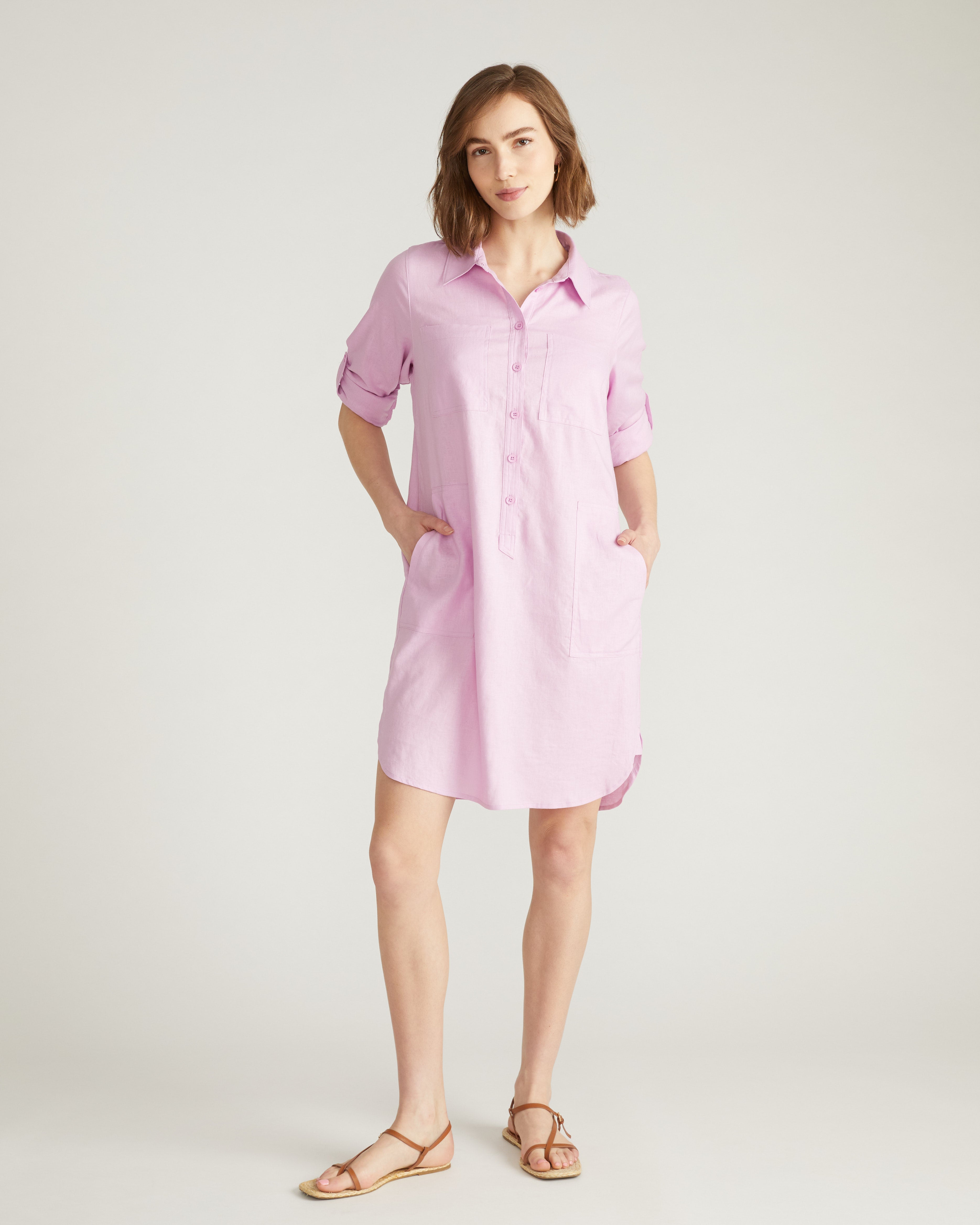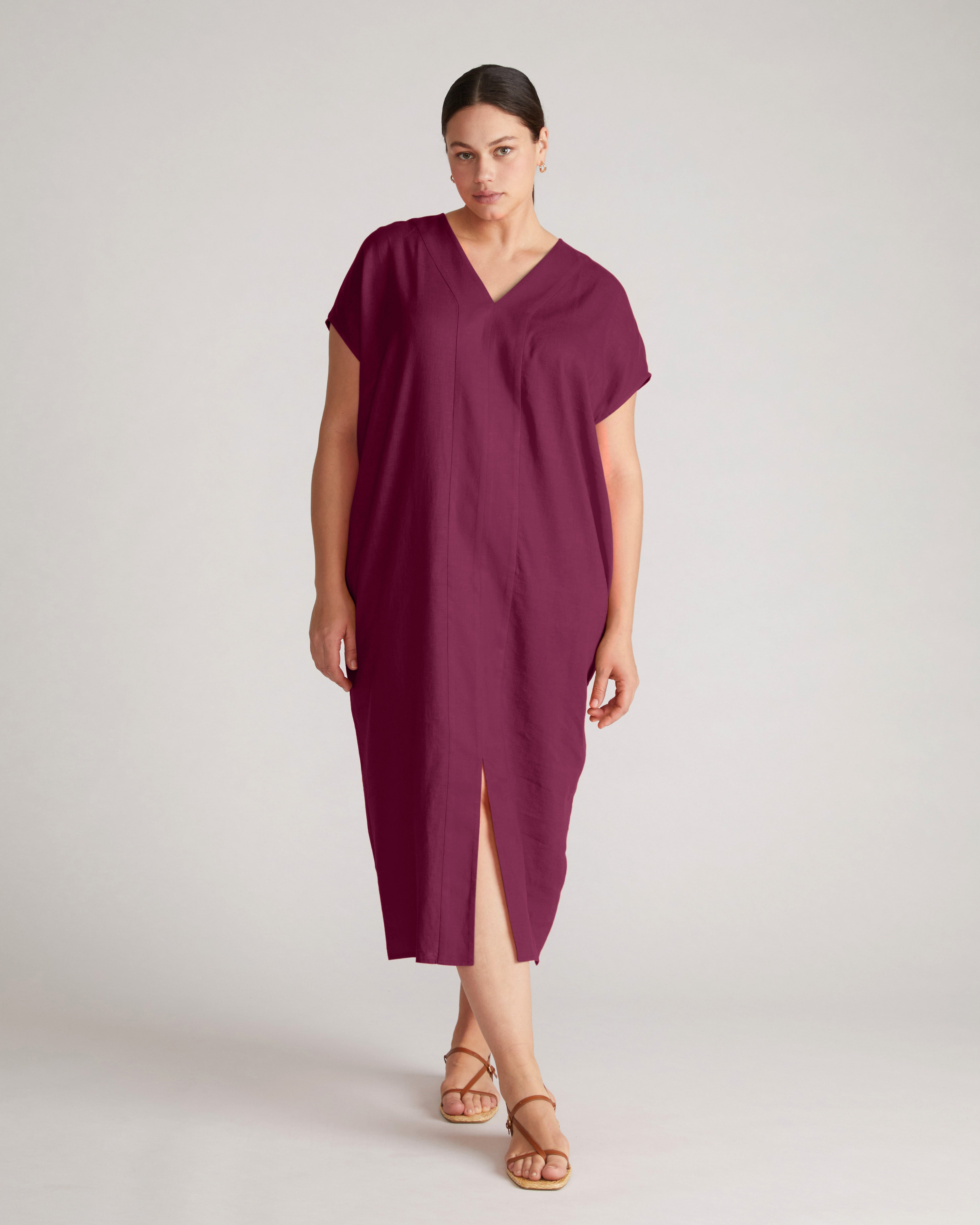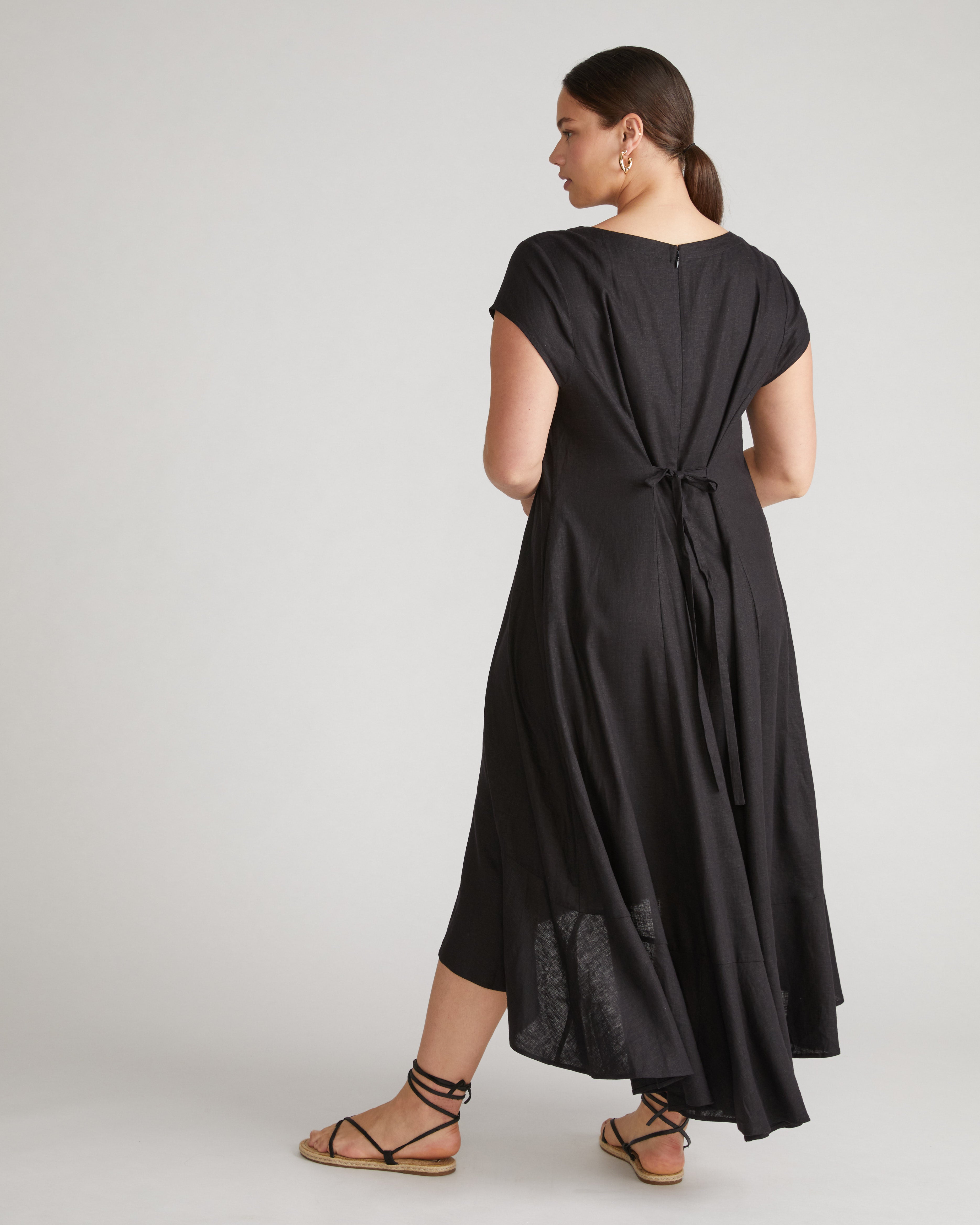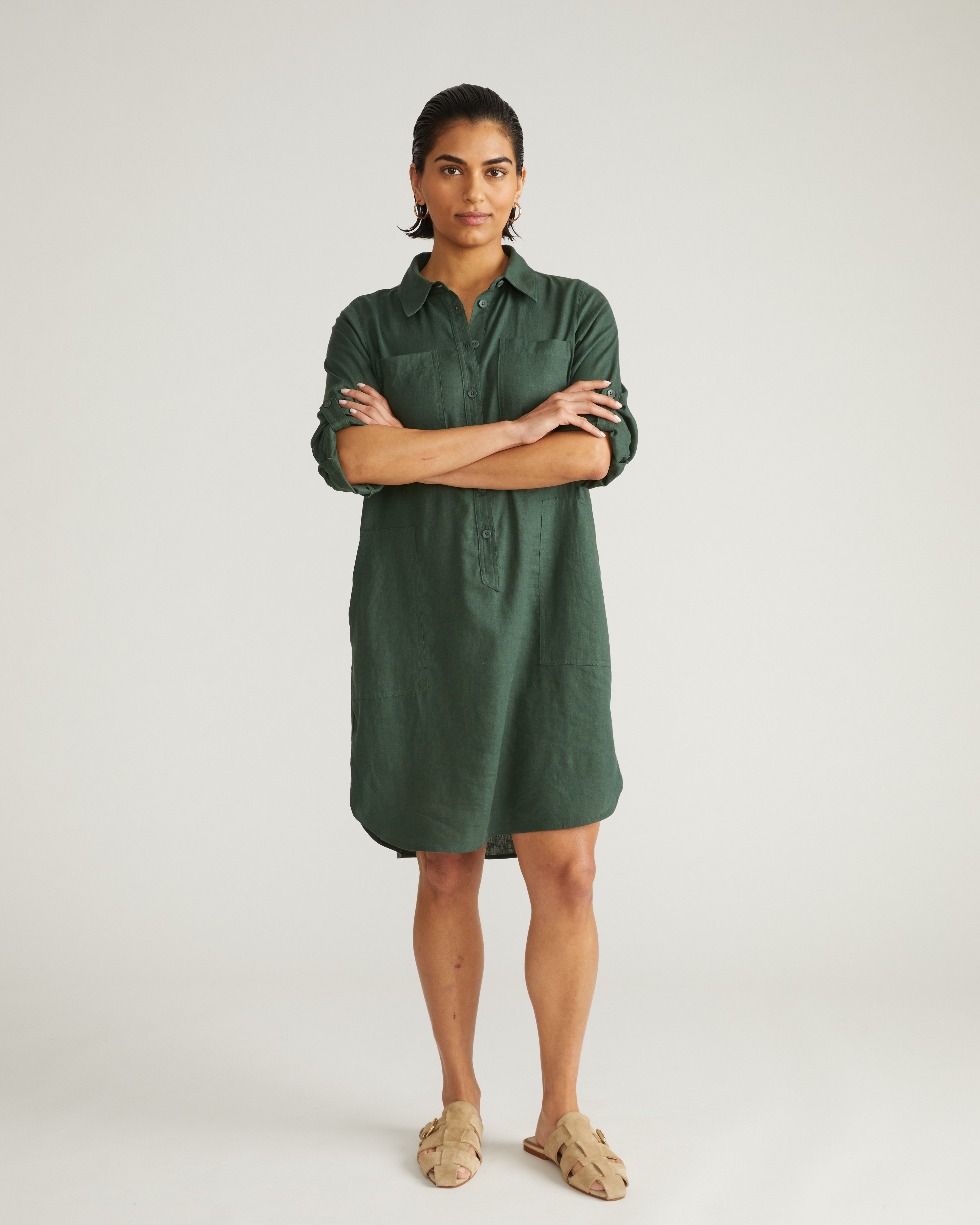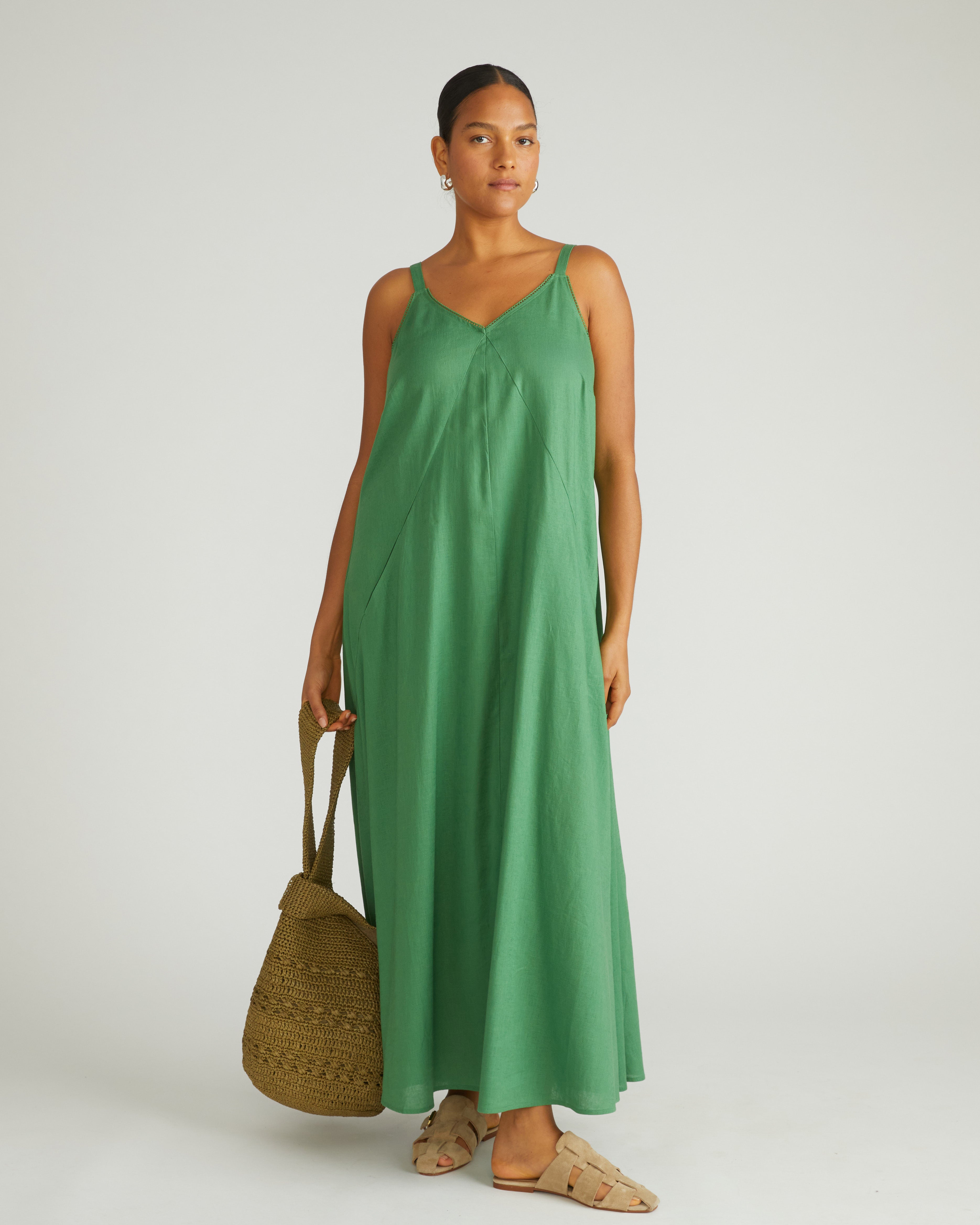 Sunshower Flowy Linen Dress - Clover/Beige Stripe