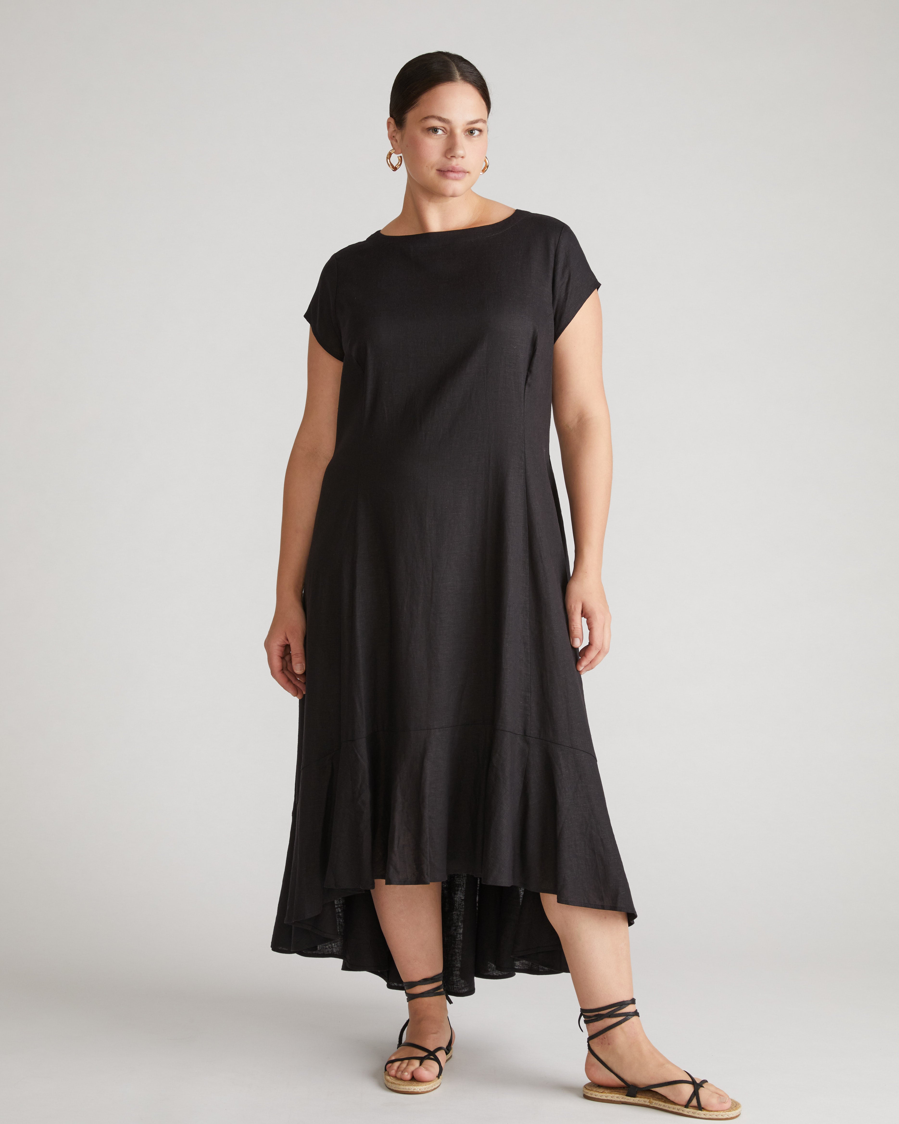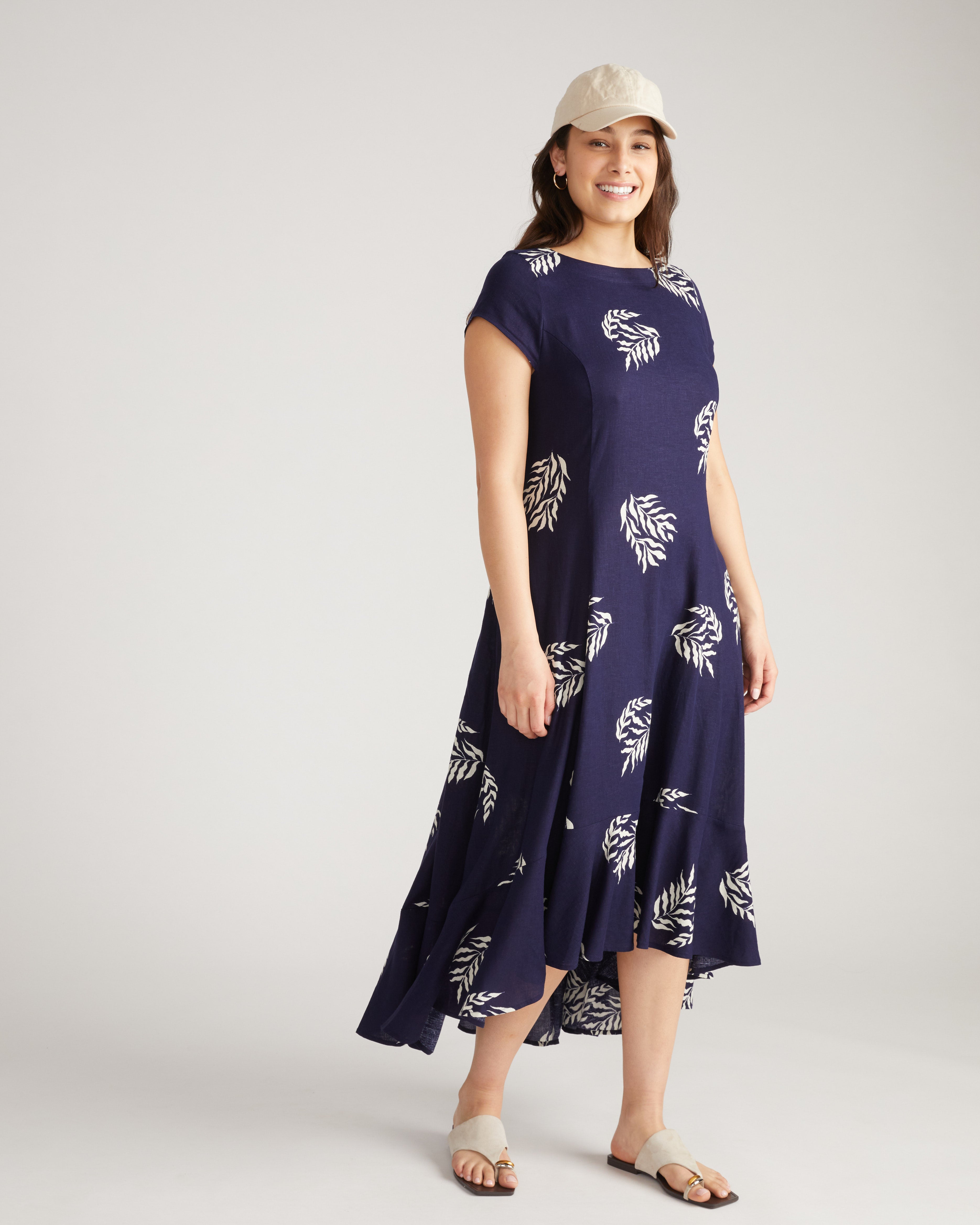 Sunset Linen Flounce Dress - Beachgrass Print in Navy