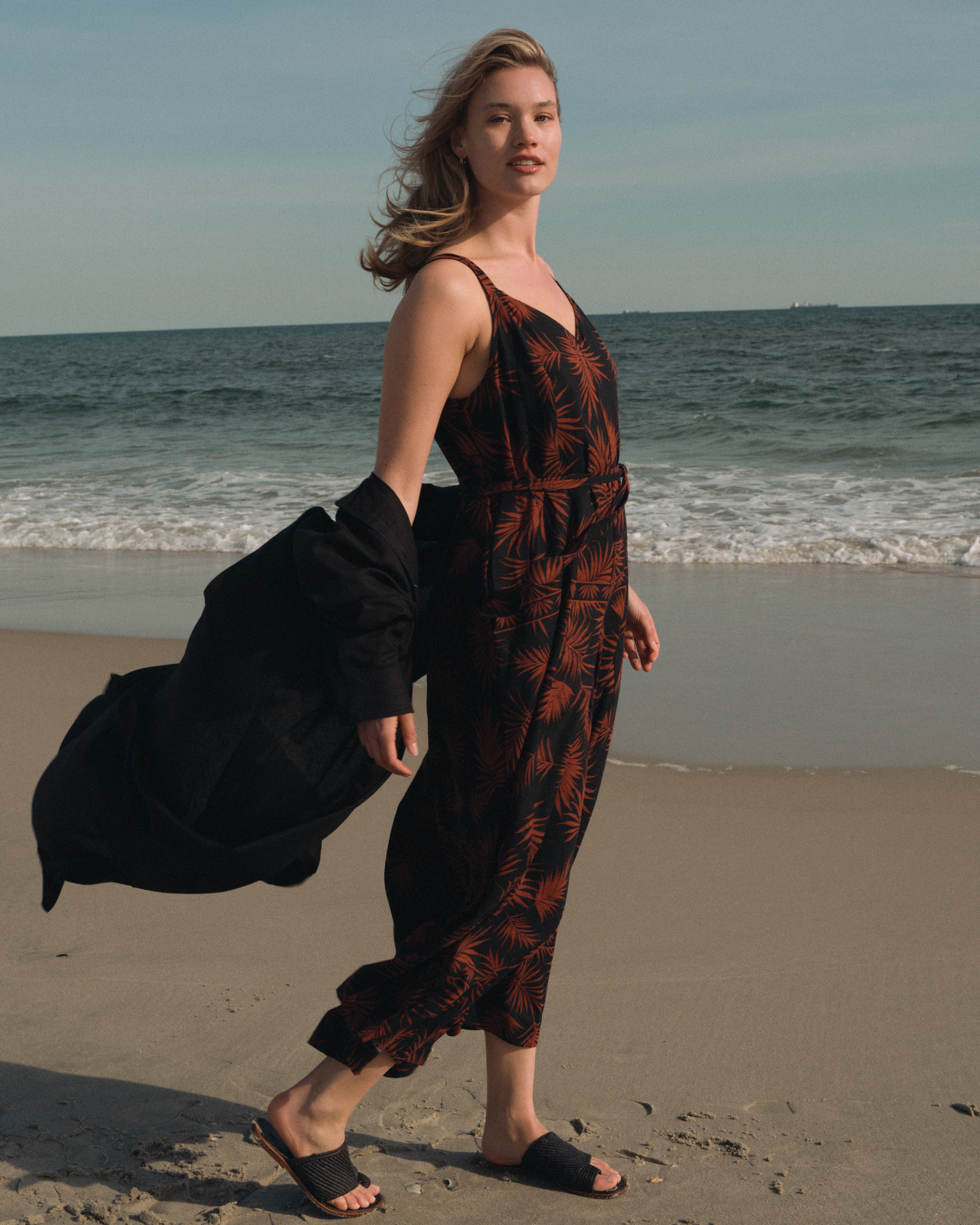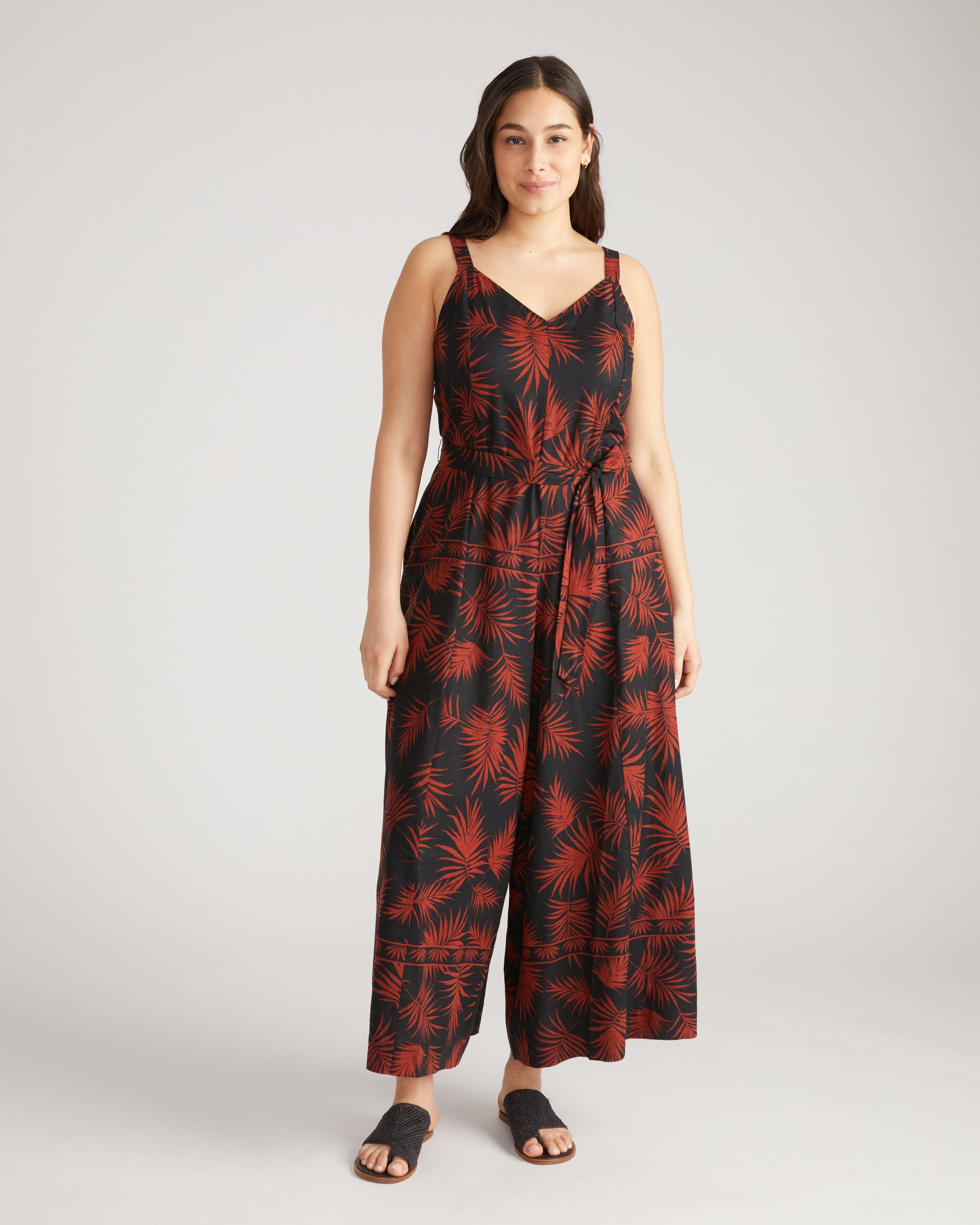 Promenade Linen Jumpsuit - Petal Palette Print in Arancia