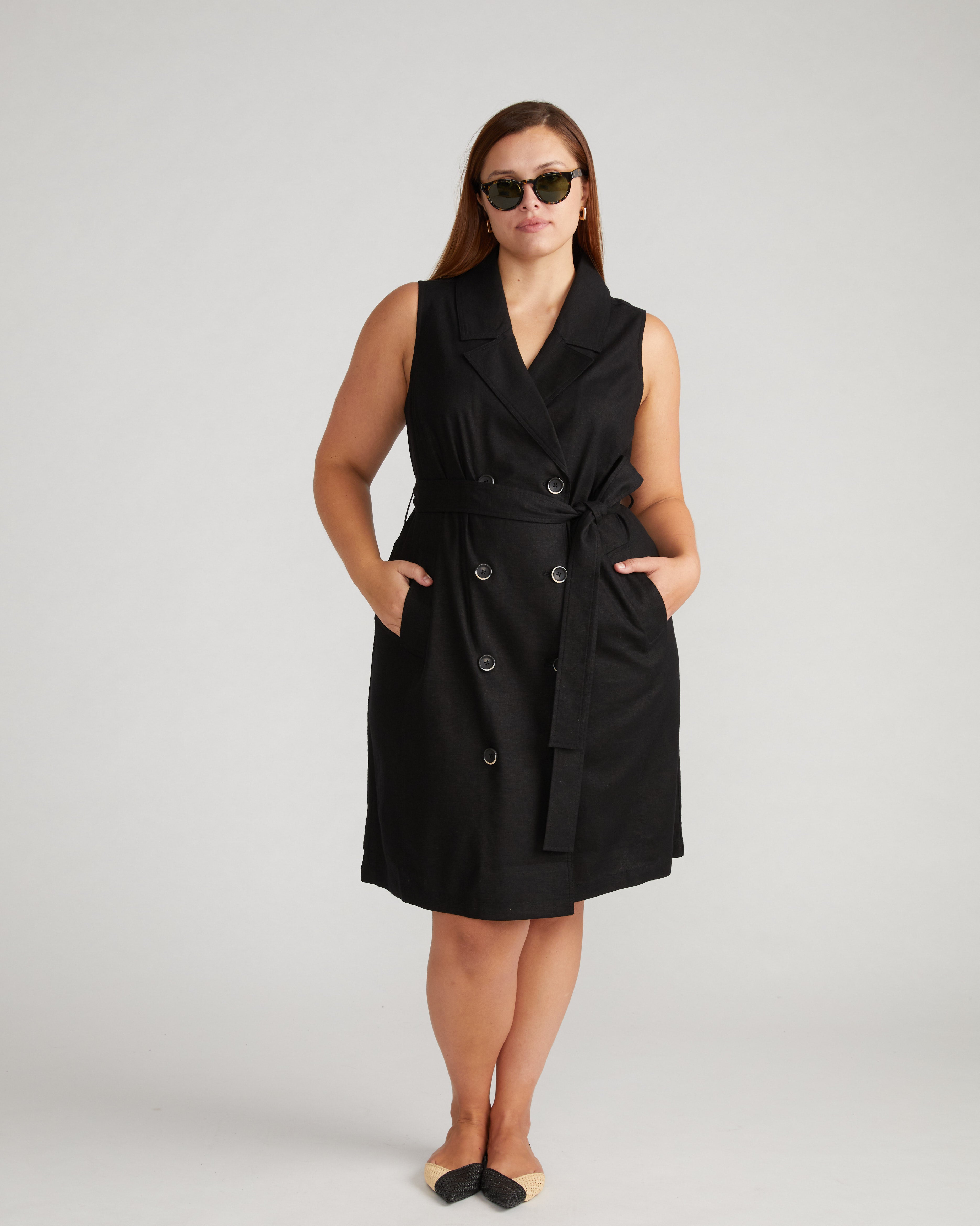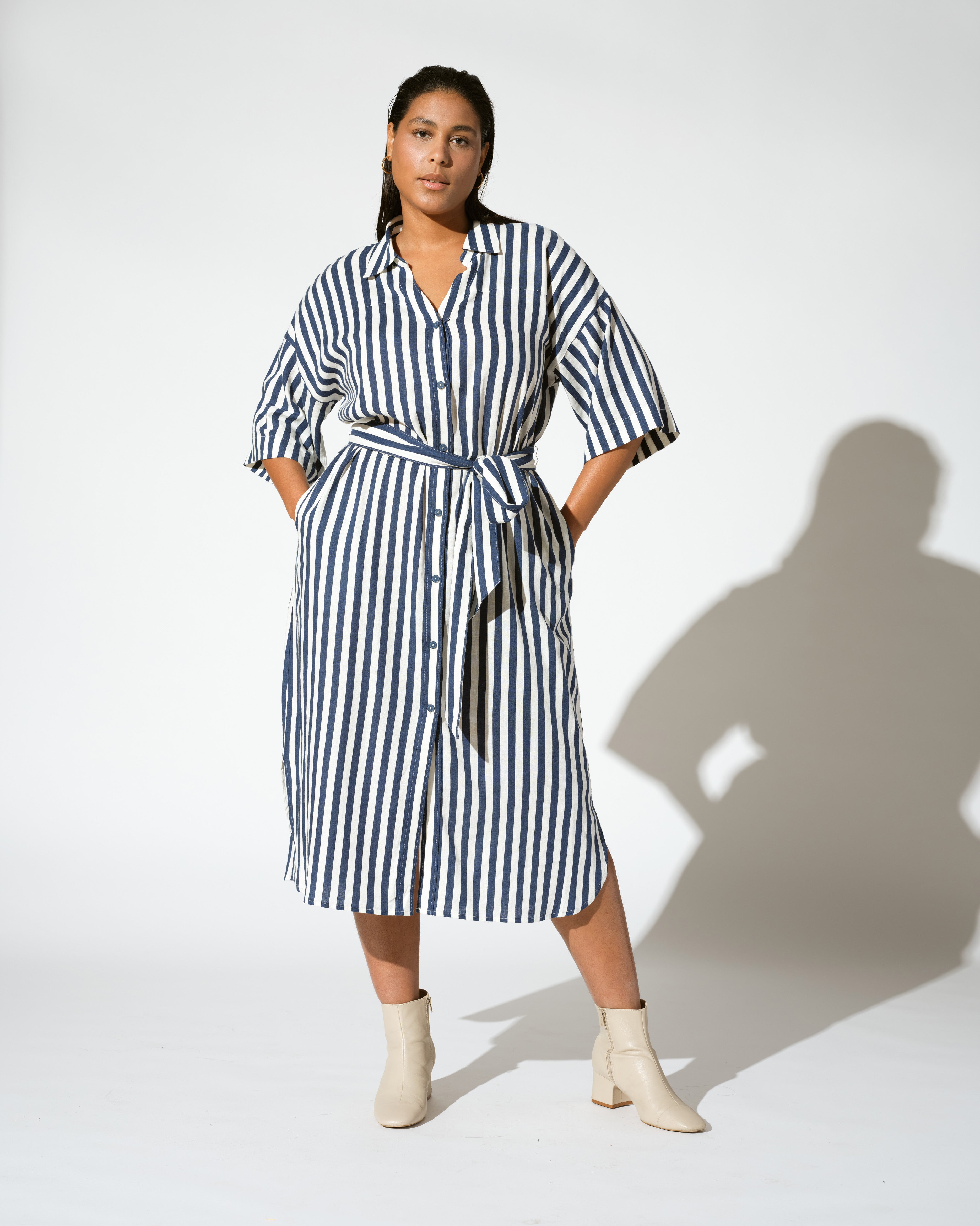 Plaza Linen Shirtdress - Deep Blue/White Stripe