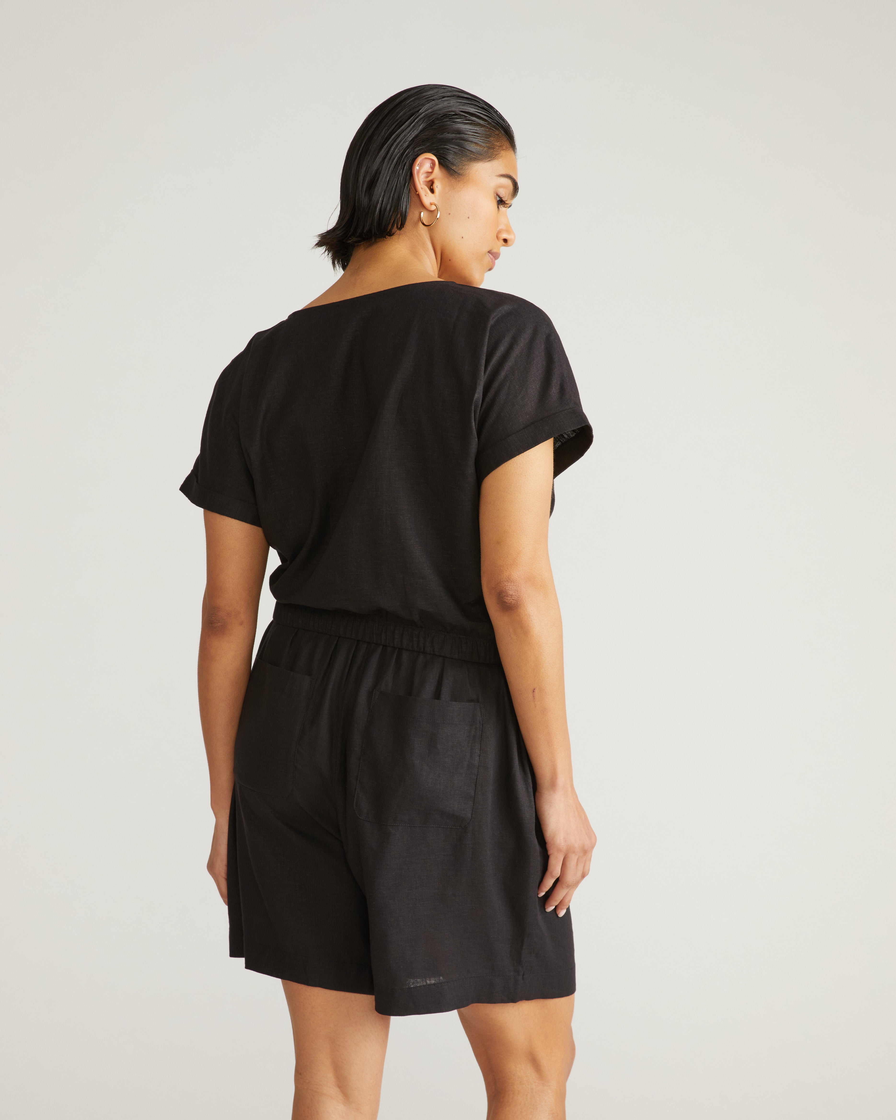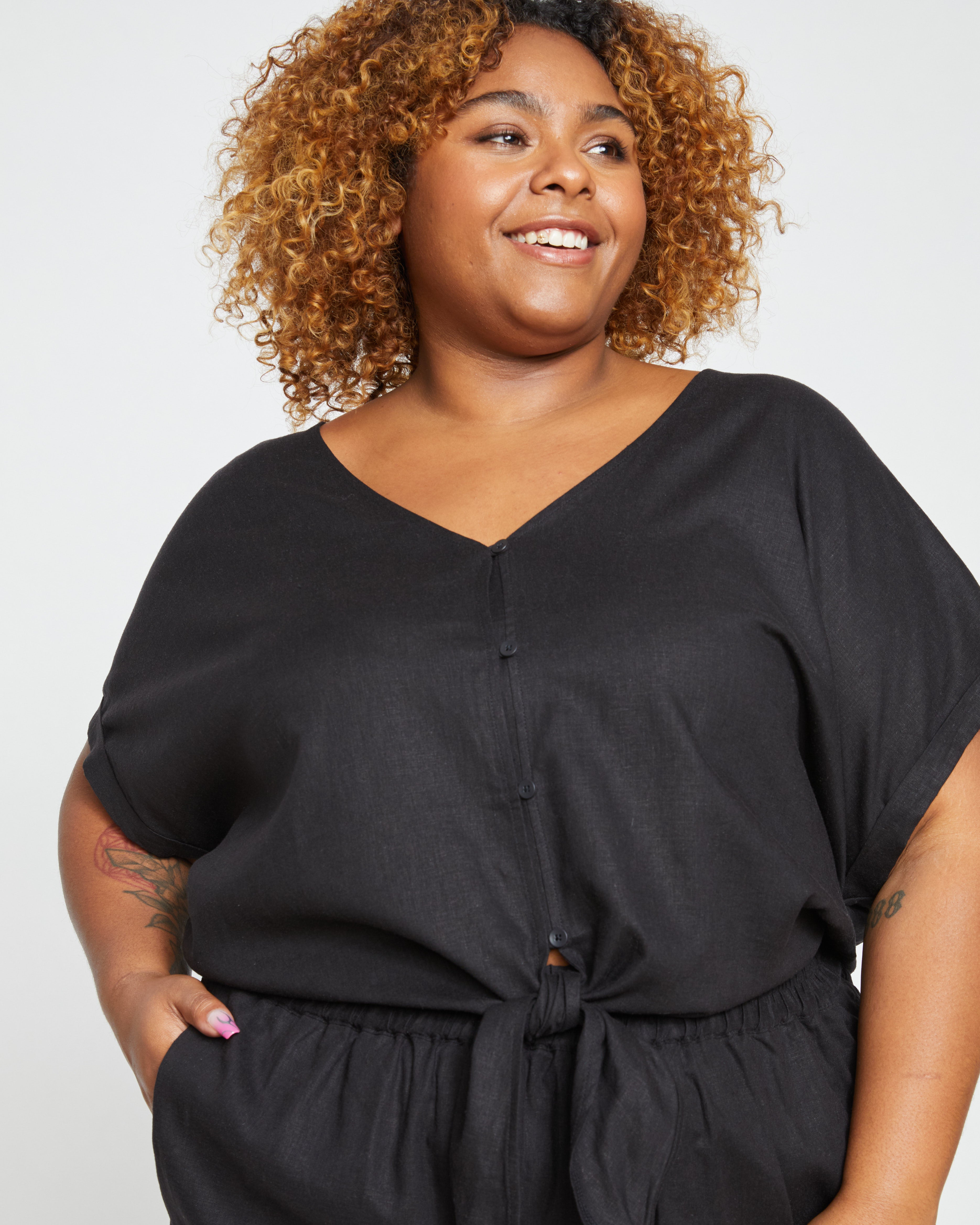 This is THE top of the season. Your spring-through-summer number. Your go-to for when you want to feel both casual and cute. Made from our signature stretch linen, it’s airy and light with a floaty silhouette. It features an elastic hem for comfort on all sizes, and it was designed to be tied in a knot above your favorite high-rise jeans. Easy and fun, it’s the embodiment of summer and springtime escapes. Can you smell the salt water and feel the sunshine on your skin?
