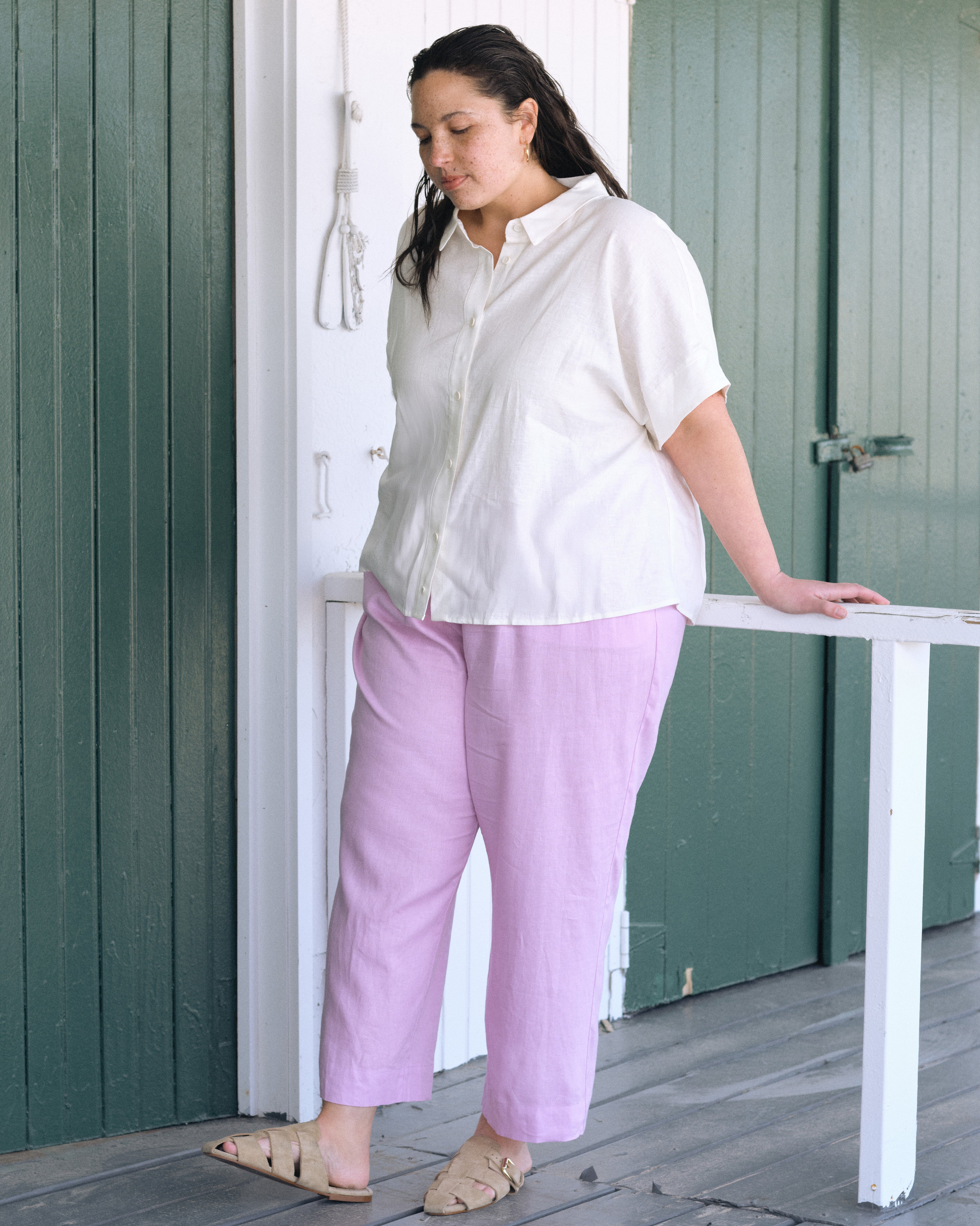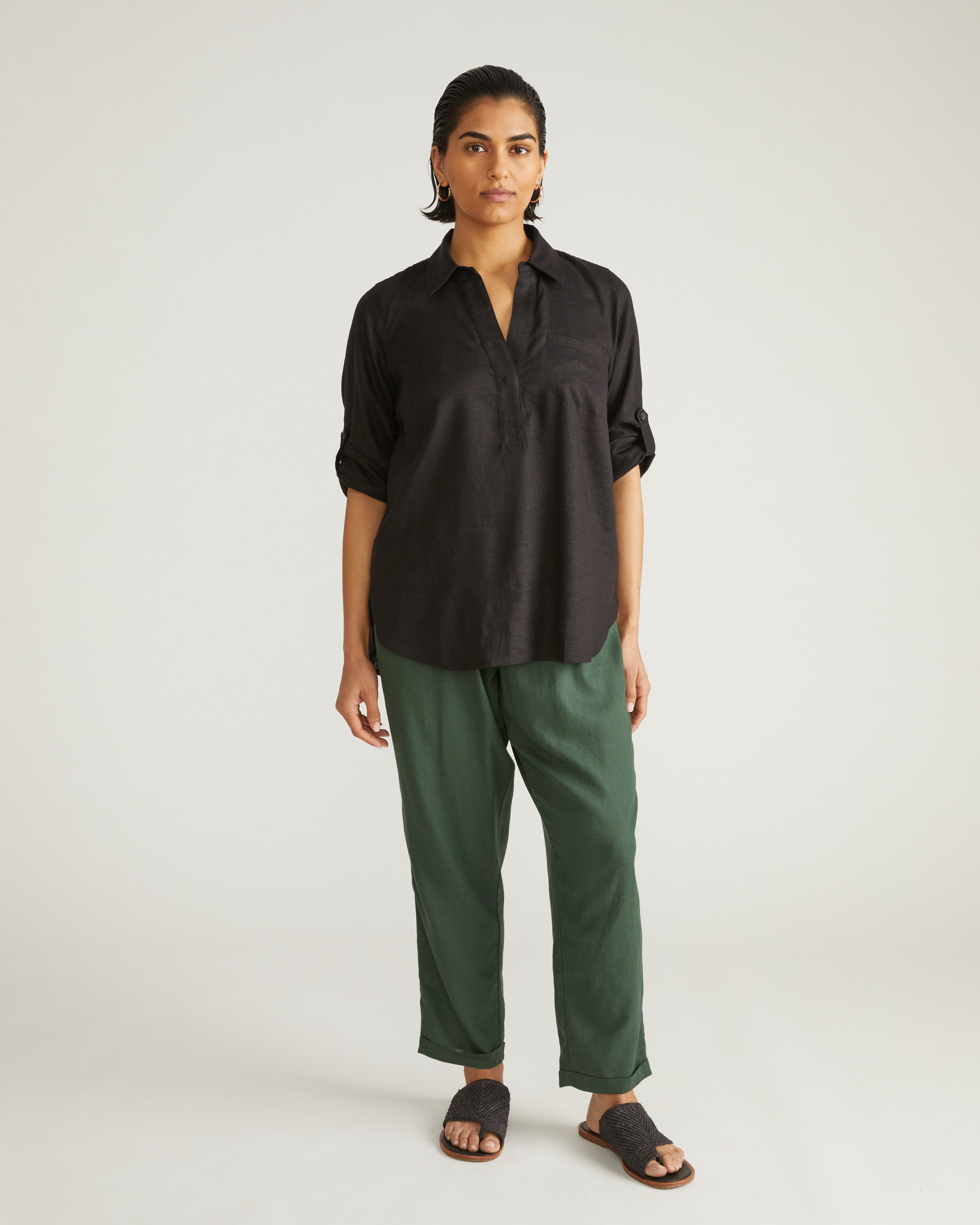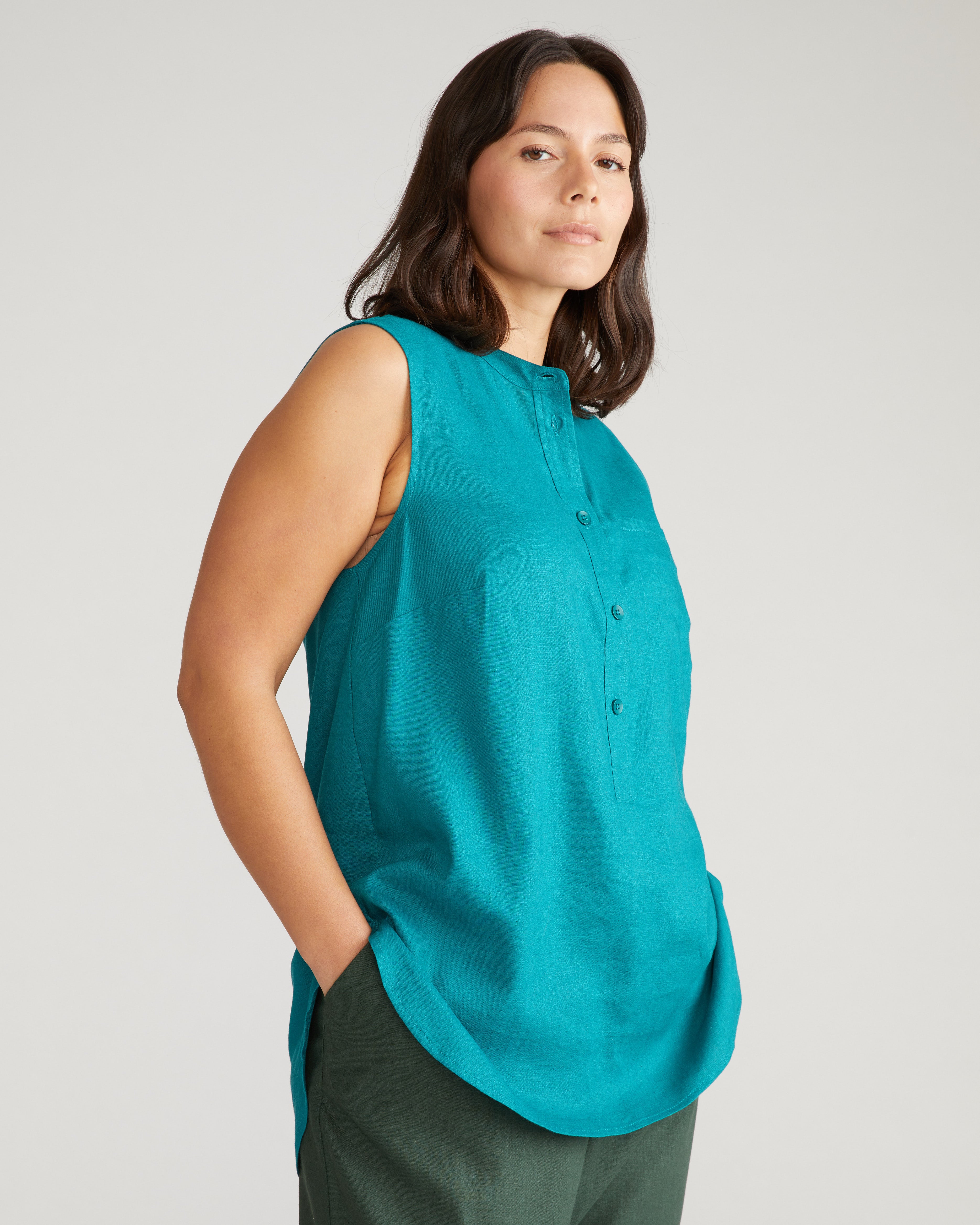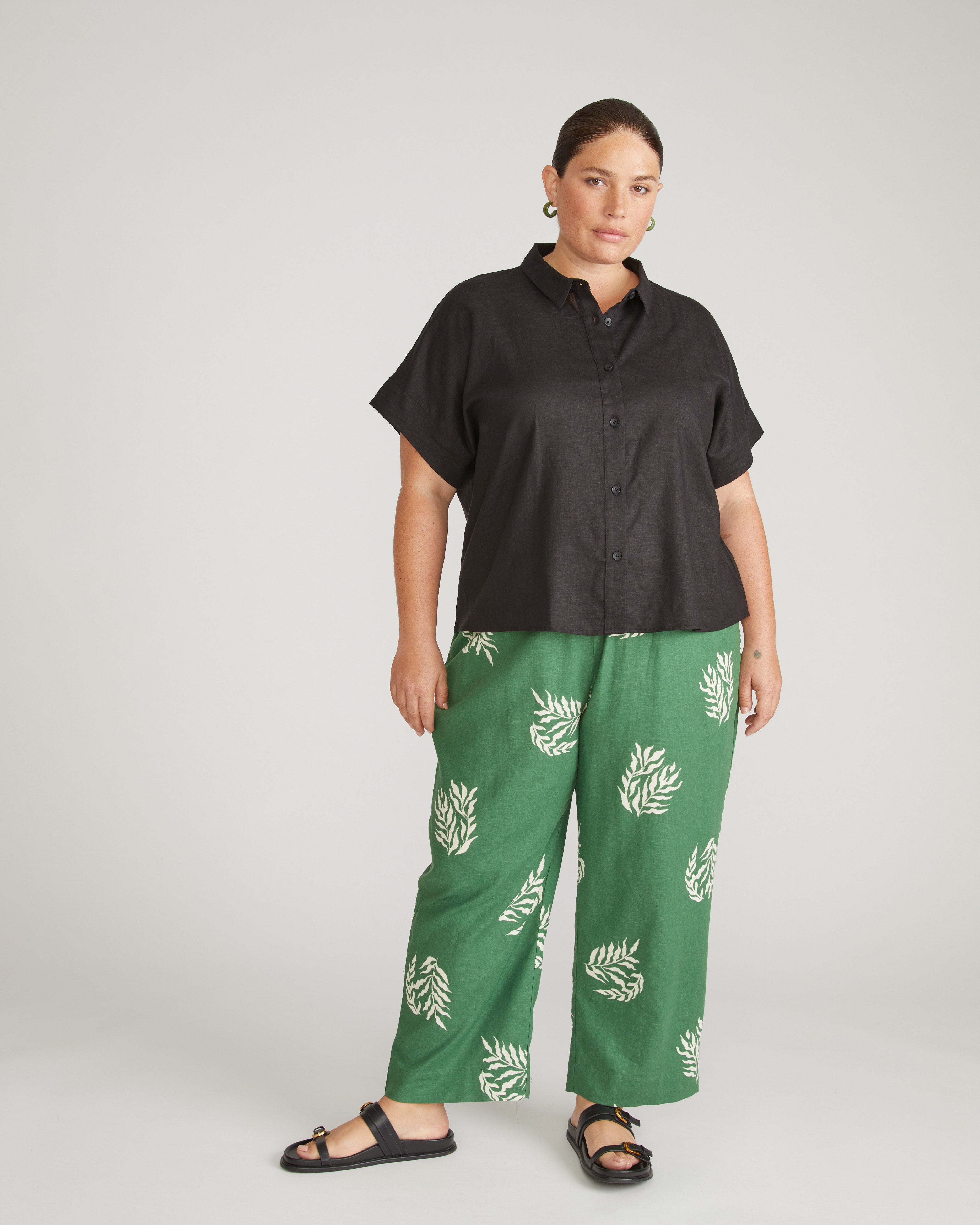 Dawn Linen Hi Low Tunic - Beachgrass Print in Green