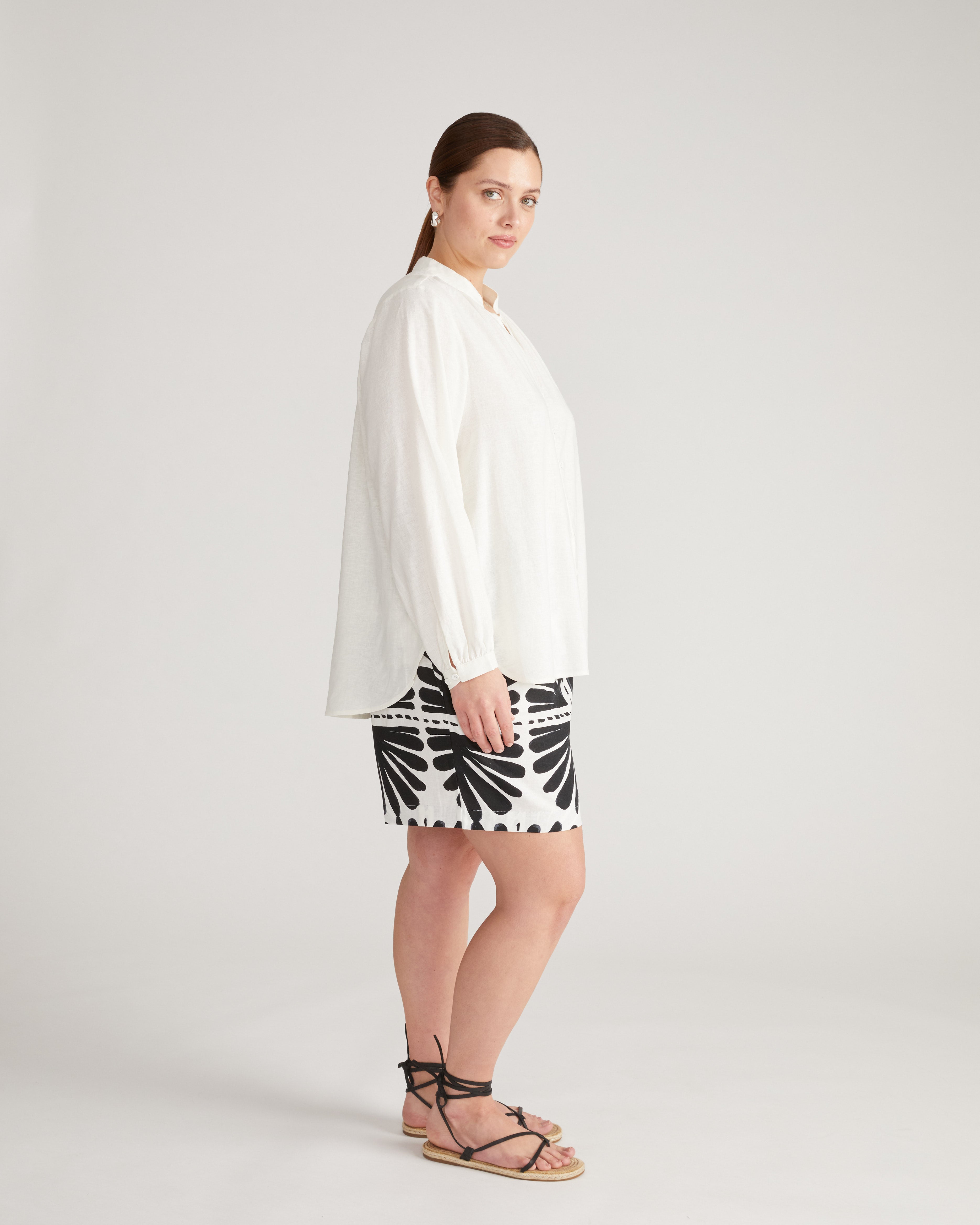 Dawn Linen Hi Low Tunic - Palm Print in Light Blue
