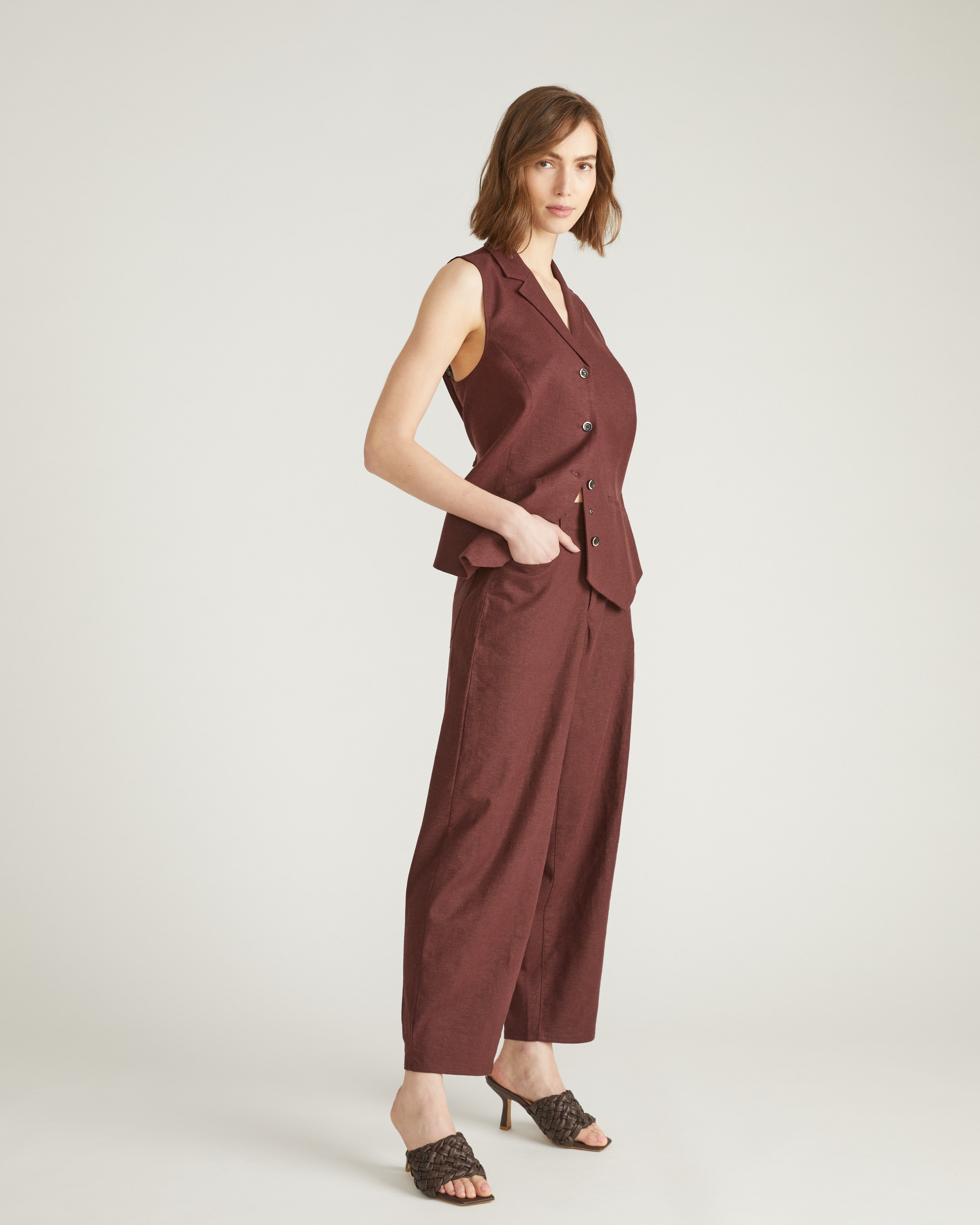 Inspired by our Lou Denim Jeans, this expertly cut barrel-leg style is reimagined in breathable stretch linen. Fitted on both plus and straight sizes to deliver a true barrel-leg look, it is designed with an easy fit around the hips and an encased elastic at the back waistband for extra comfort and movement.