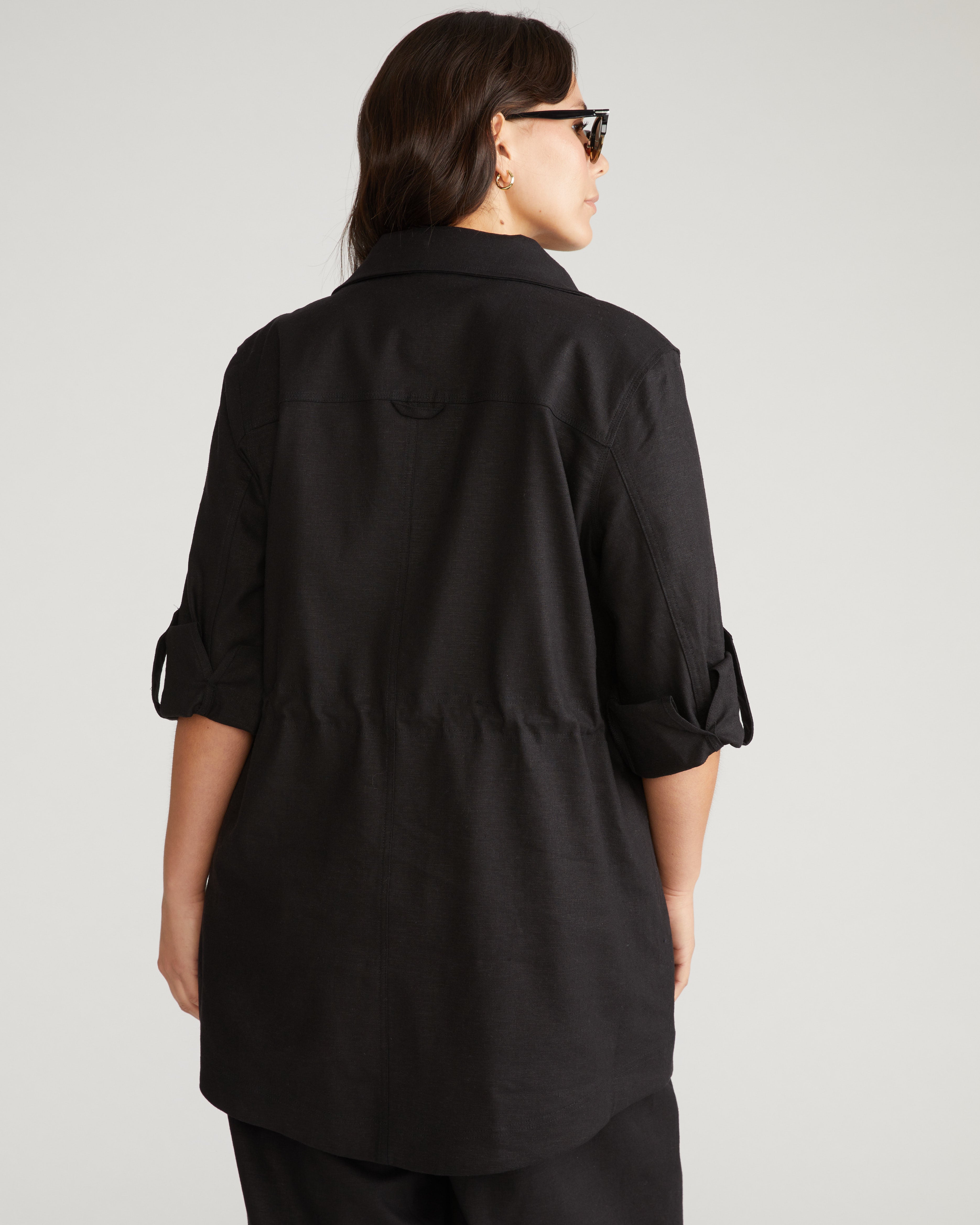 Our Vineyard Jacket in stretch linen transforms this signature piece into a summer staple. Breathable, lightweight, and perfect for layering, this unlined jacket shares key features with our cotton version, including hidden snaps and a cord to cinch the waist. Pair it with other linen pieces from the collection or mix it with denim and a tee for a casual blend of textures.