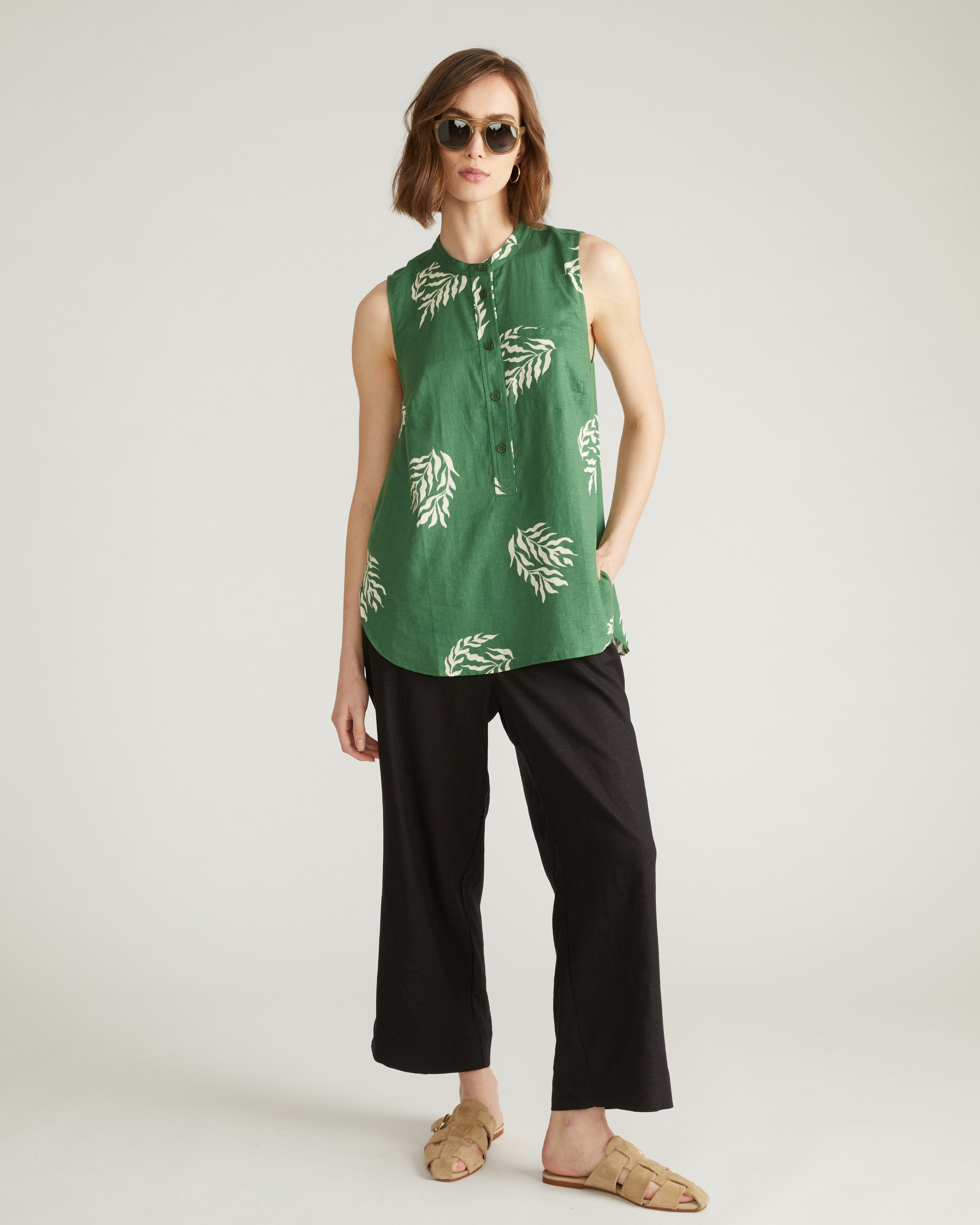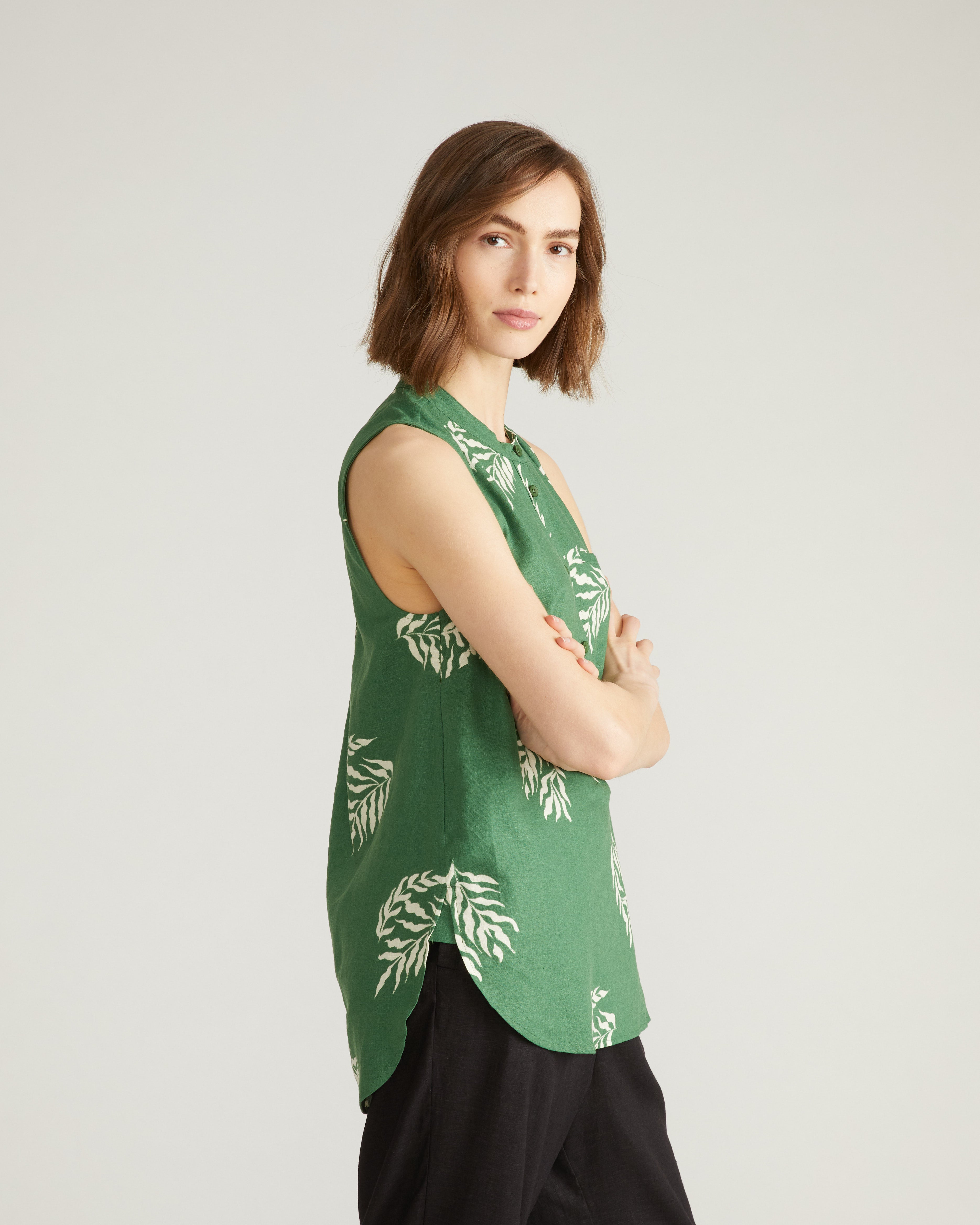 Cameo Linen Tunic - Beachgrass Print in Green