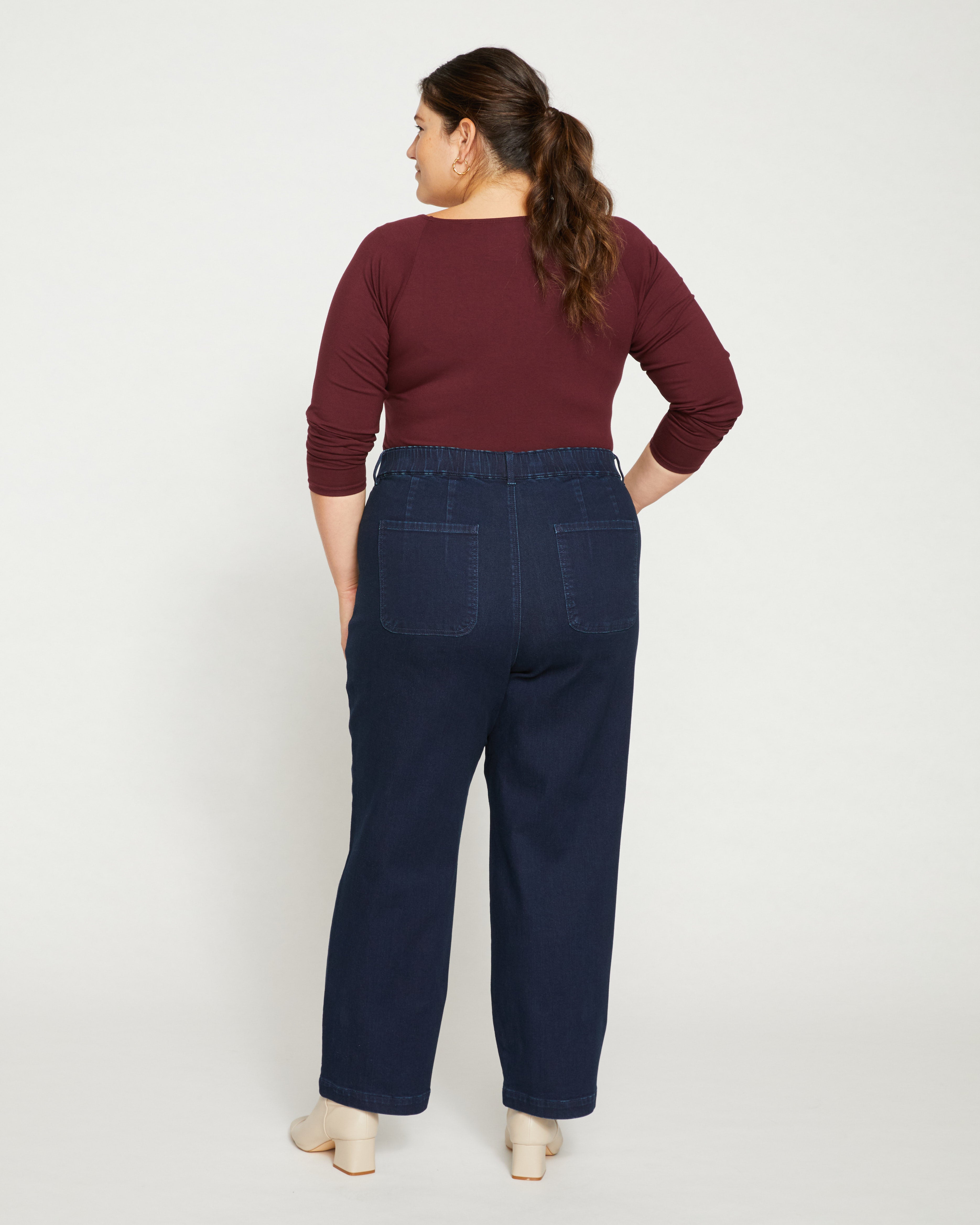 Meet your new favorite off-duty denim. Super stretchy and supremely soft, they've got a mid-rise with an ultra-comfortable elastic back waist and fall to a drapey, slightly tapered leg. We’ve also removed the traditional back yoke and added shaping darts for the perfect fit. Finishing touches include four-pocket styling and a zip fly with button fastening.