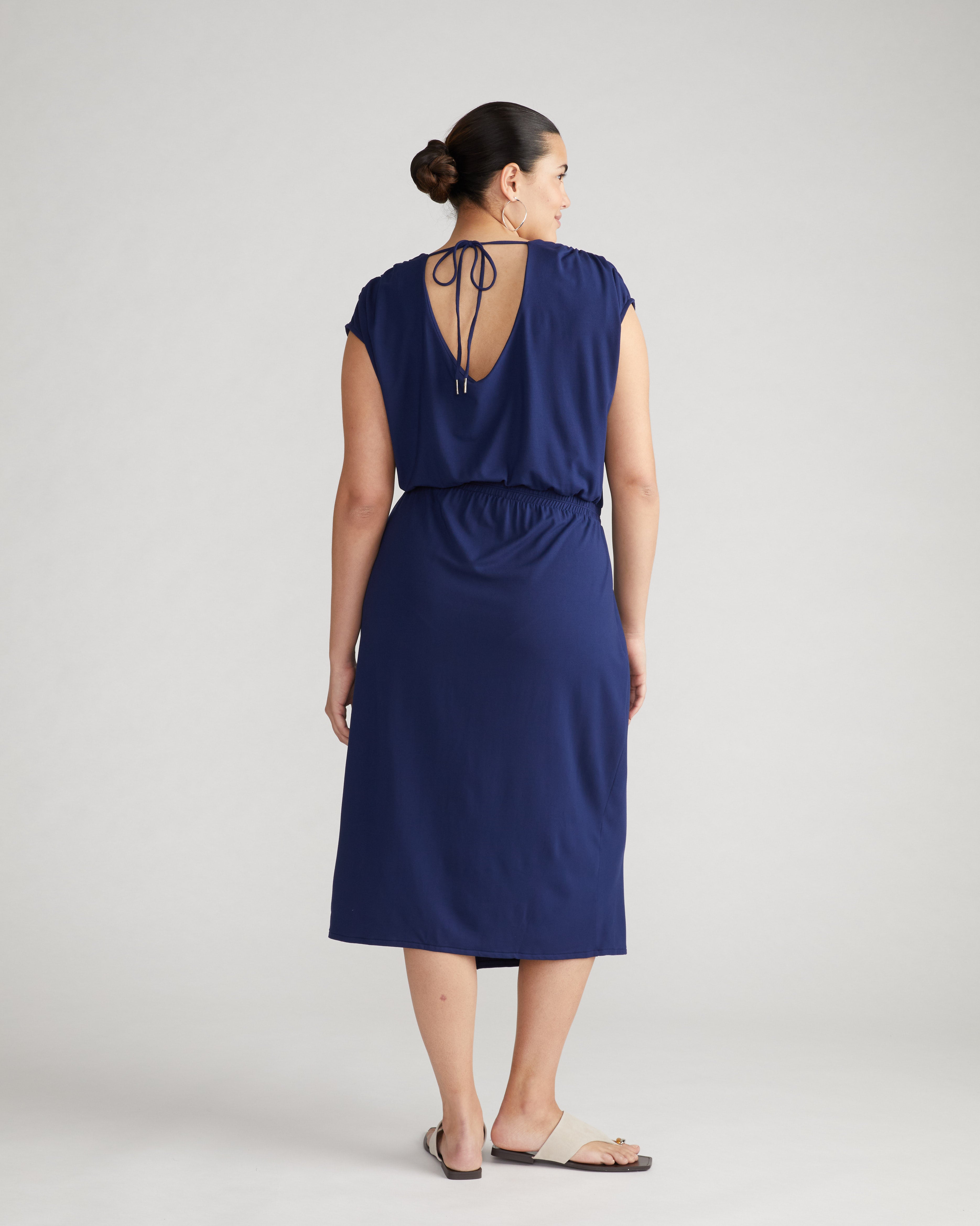 This is a dress for late, balmy nights. With a billowy blouson top, draping through the body, and a slit at the hem, this style was made for dancing. It��s made from our new jersey fabric that is so luxuriously soft and moves beautifully with you.