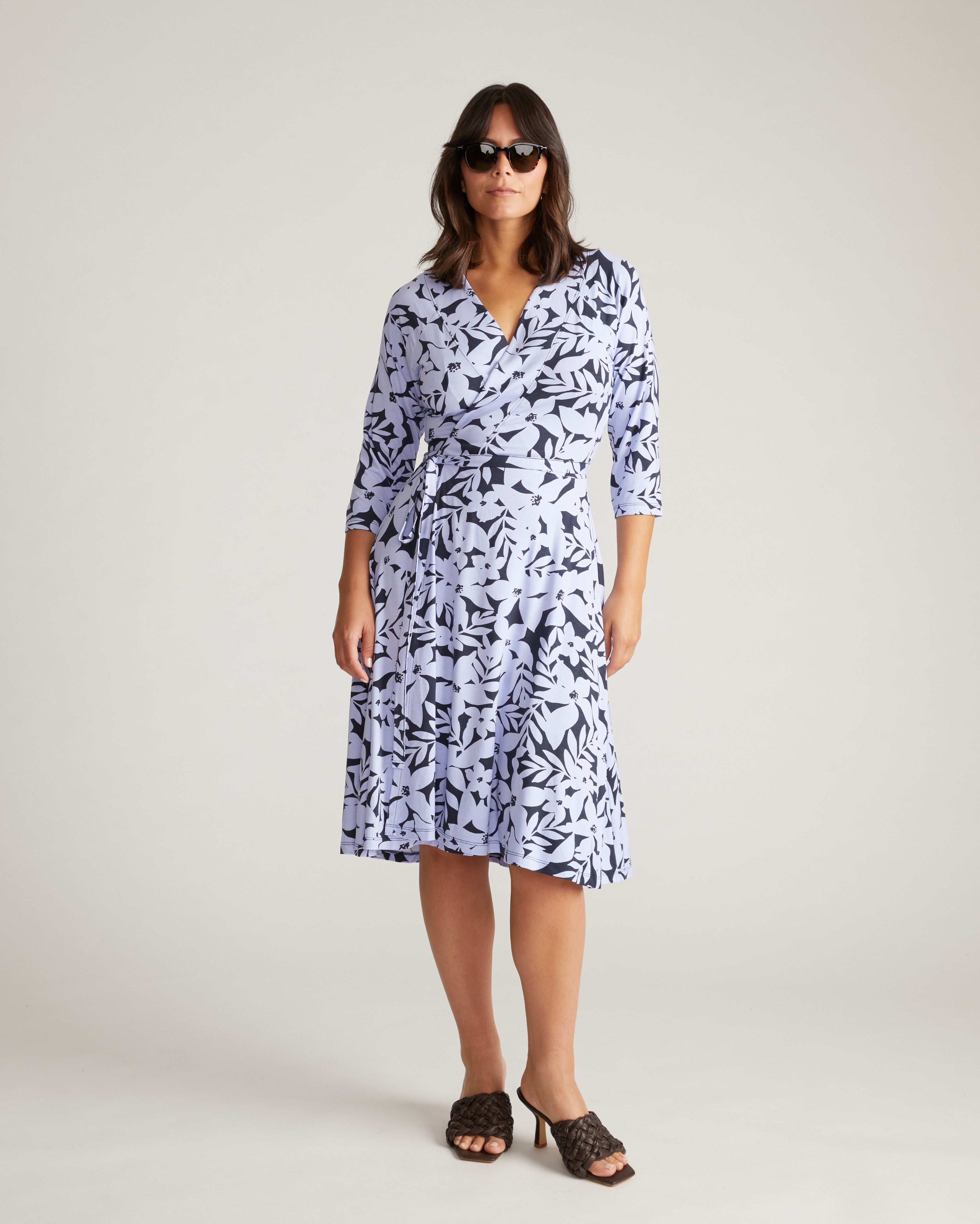 The Divine Jersey Wrap Dress - Petal Palette Print in Jacaranda