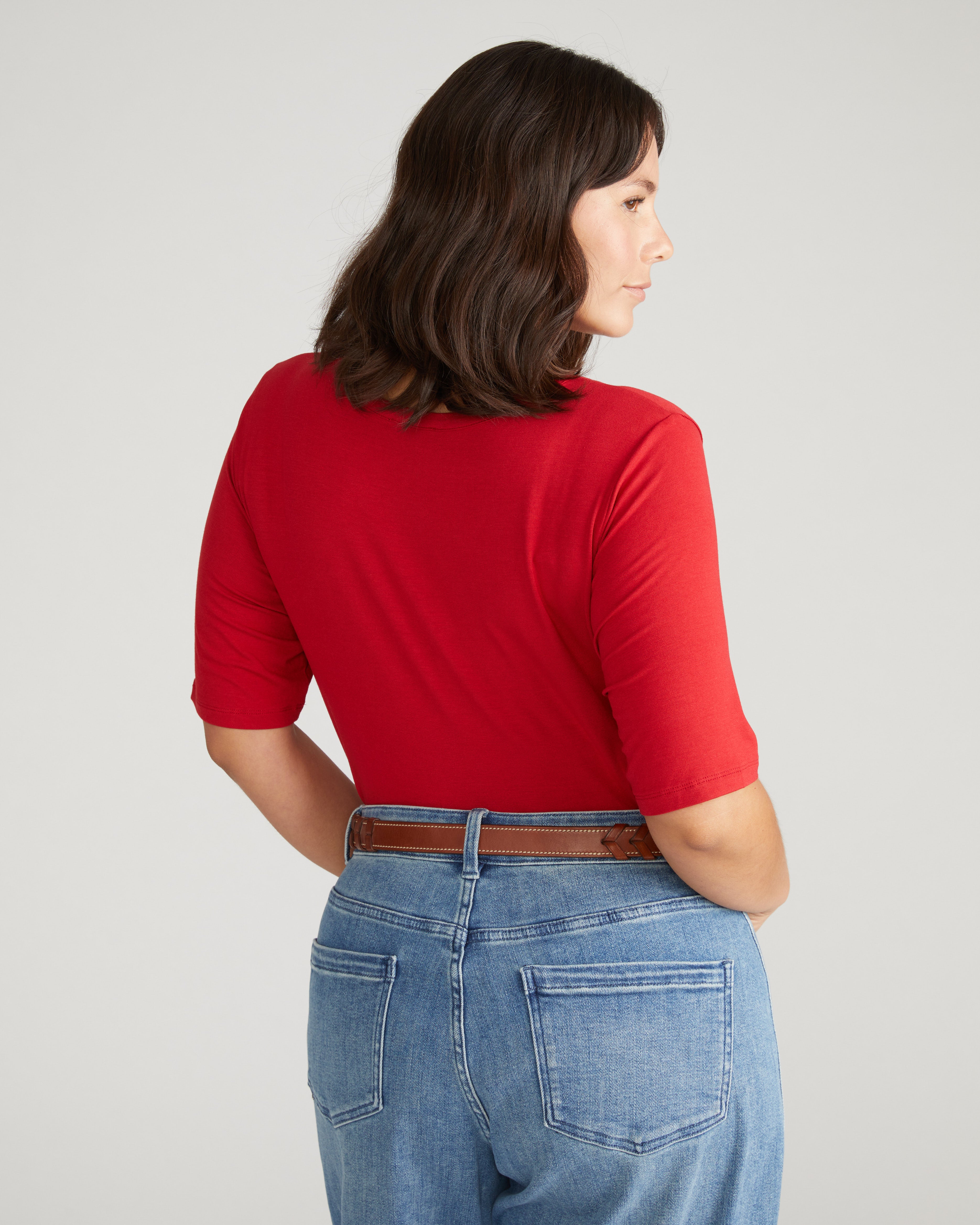 The Lily Liquid Jersey V-Neck Stovepipe Tee is easy and elevated. This stovepipe sleeve tee is an essential in your day-to-day wardrobe. Carefully crafted for an impeccable fit and made from our premium liquid jersey that feels buttery-smooth. This tee features a fitted stovepipe sleeve that meets your elbow and a narrow v-neck.