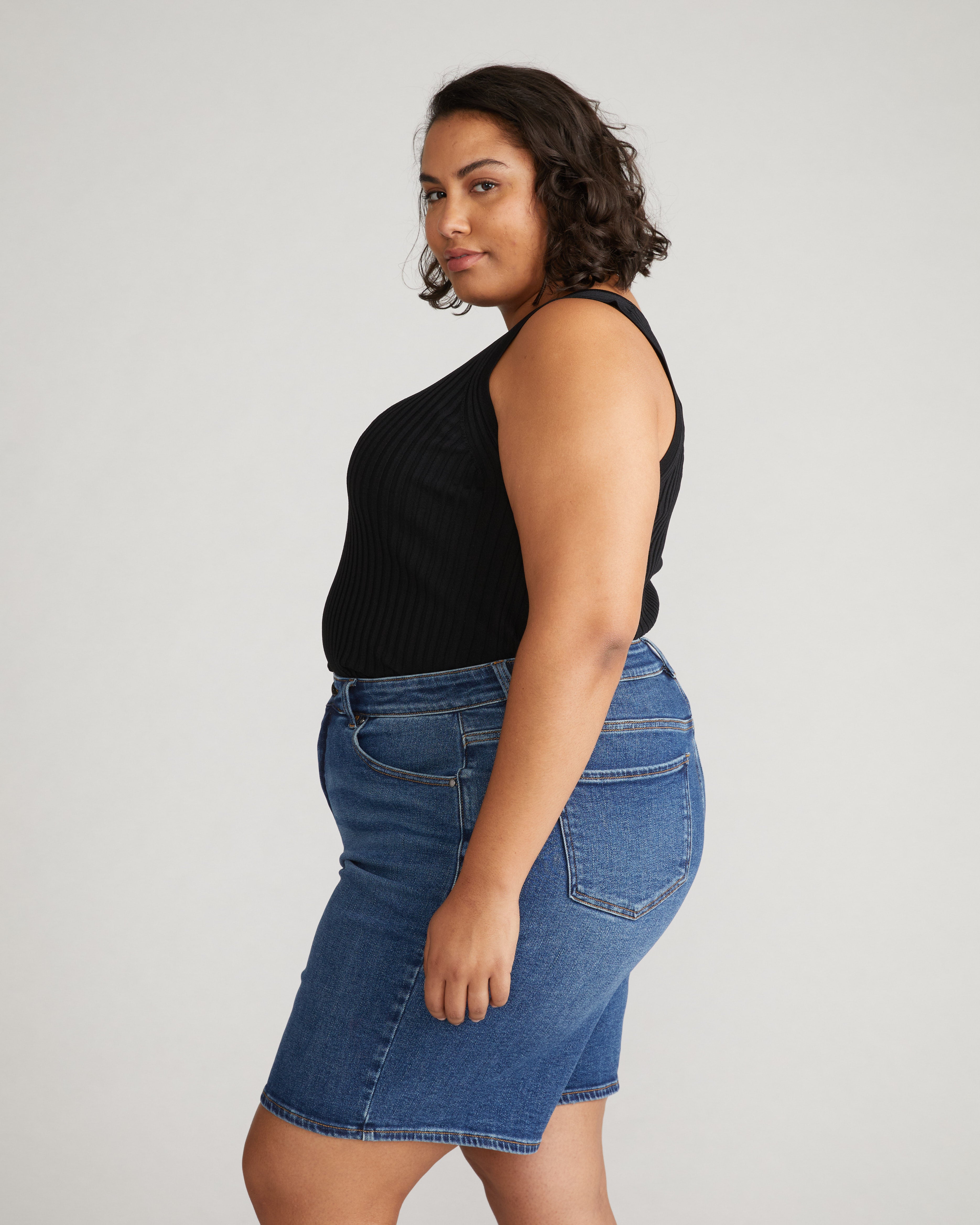 This pair of shorts is the sister of our Lou jean. You’ll love the easy fit and wide leg. They're made from a structured (but still stretchy) denim that holds its shape. You’ll see this silhouette everywhere come summer, so we suggest snatching a pair early and practicing your styling.
