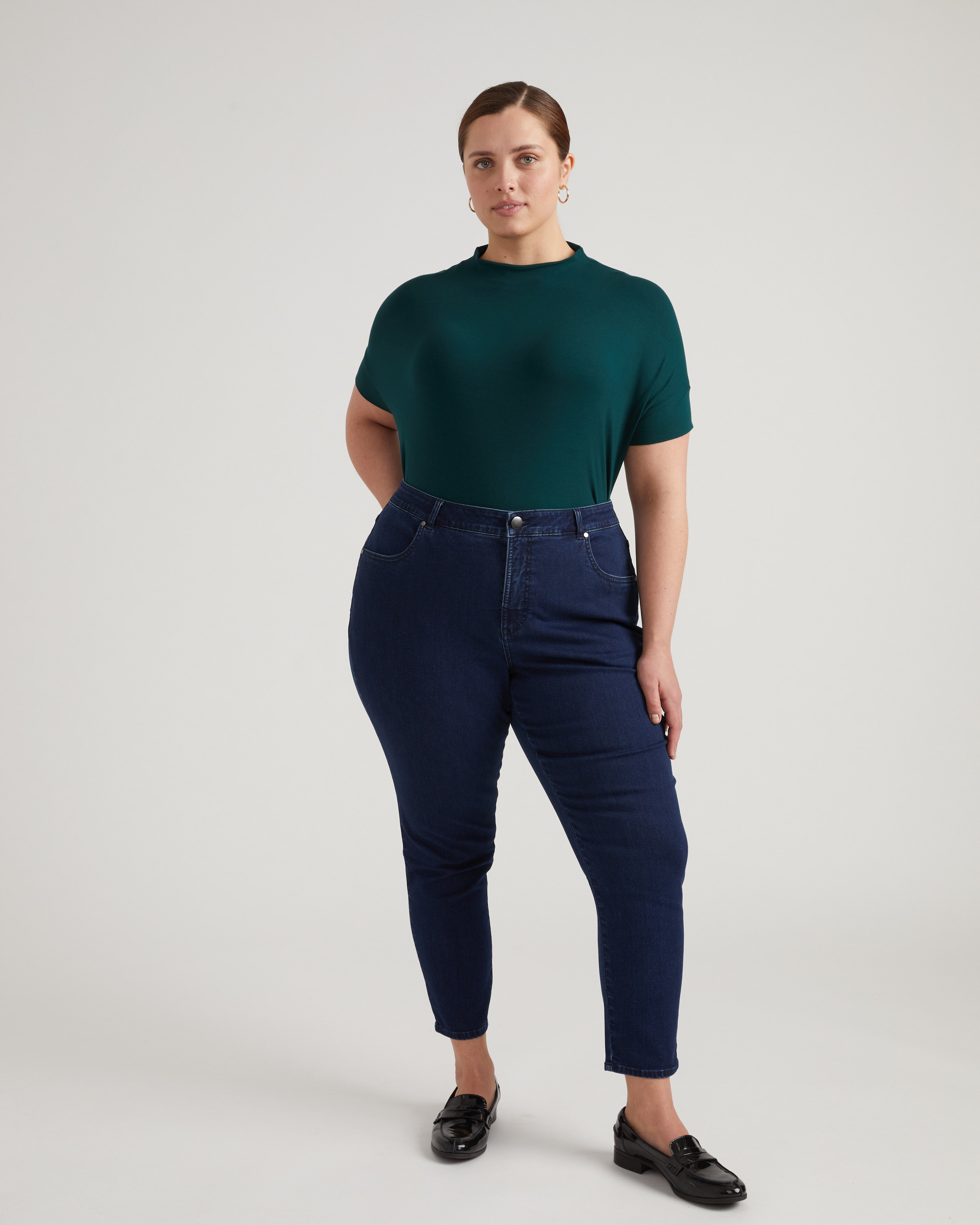 The jeans our co-founder and CEO has been dreaming of for years. Since Universal Standard became a denim destination, Polina hoped to introduce jeans as beloved as our best-selling pairs at a more accessible price. The Polina Jeans are her brainchild. Our signature fit at an unbeatable new price. They feature a high rise, skinny 27�� leg, and our classic fit through the waist and hips. Think of these as your sampler, your entry point, your test run. Try US and collect every other pair from the first moment on.