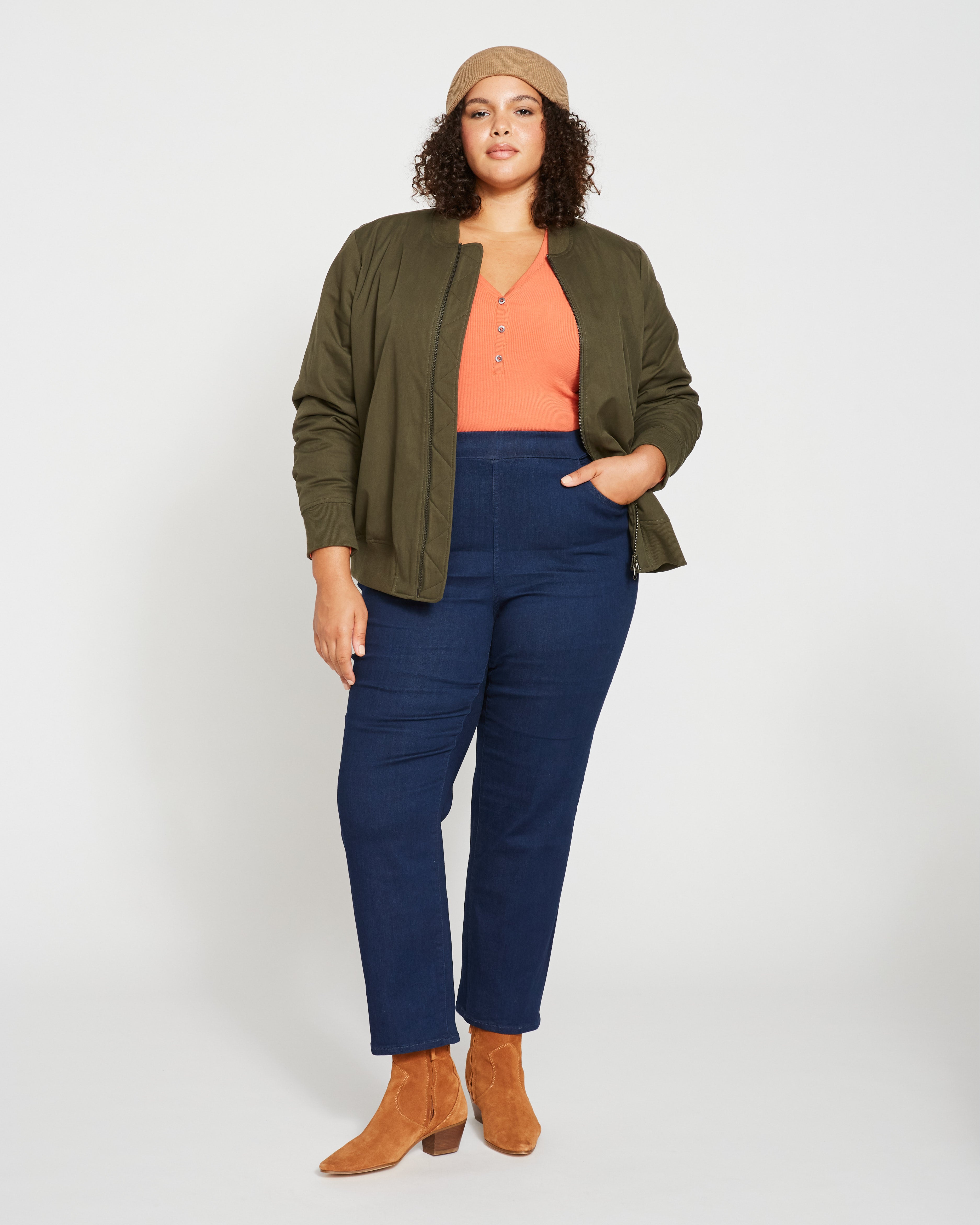 Hello, legs. These elongating stovepipe jeans are made from our indigo-dyed ComfortDenim that feels as soft and stretchy as a pair of lived-in leggings. We've been waiting for a pull-on jegging with this straight, trouser-style leg, and we're wearing them with everything from button-downs to knits. Designed with business-casual days in mind, you can dress them up with a cute top or wear them on the weekends for a polished laid-back look.