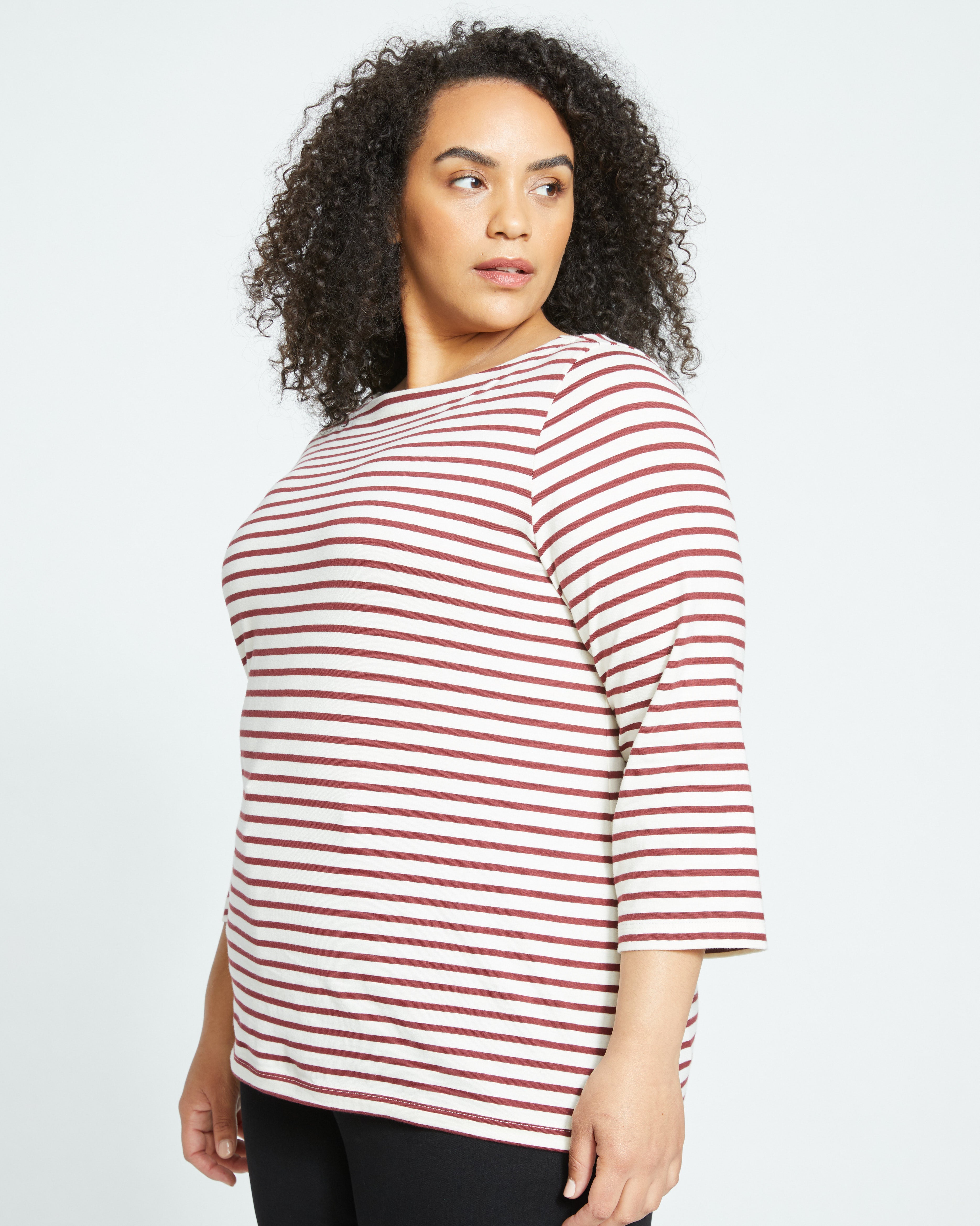 • Belle Breton Stripe Jersey Tee - Ecru/Burgundy Stripe