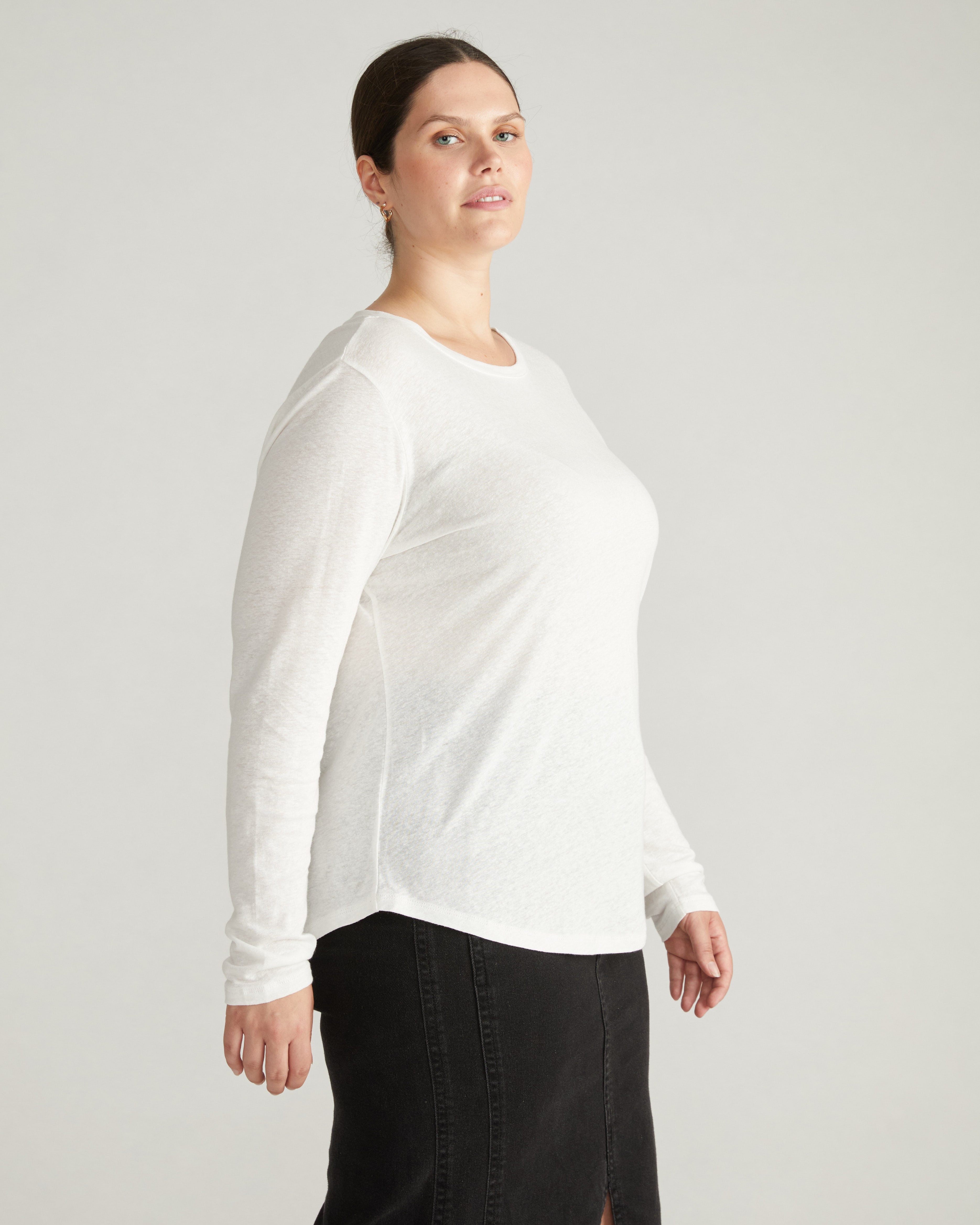 • Breeze Stretch Linen Long Sleeve Tee - White