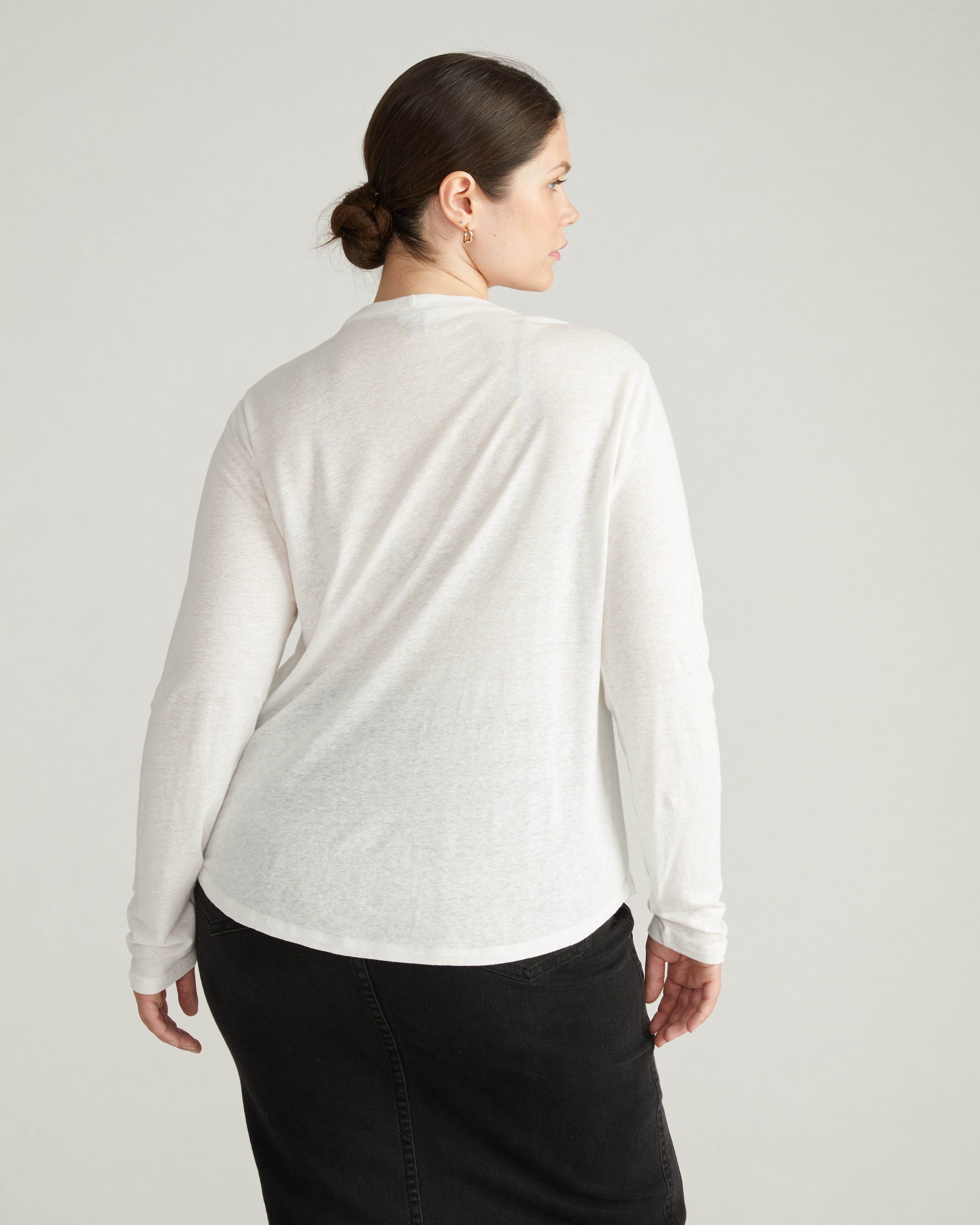 Finally! A simple linen tee. This is the perfect cover-up for beach days, but it also looks great with linen bottoms or tucked into jeans. It features our signature stretch and that airy feeling we know you love. Consider this an elevated version of your lightest tee.