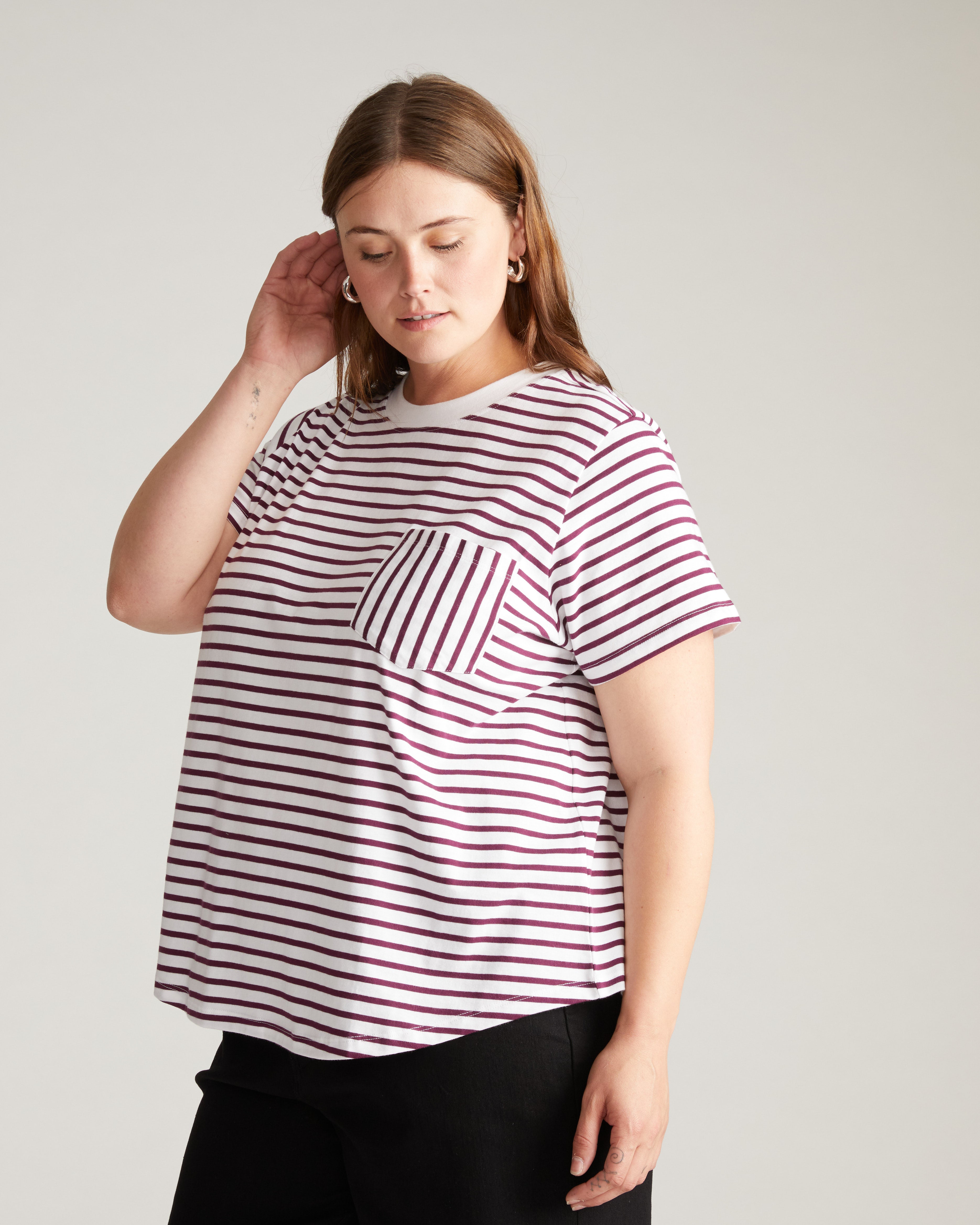 Ahh! It’s the Breton-striped version of our best-selling boyish pocket tee. Made from our premium Peruvian cotton that only gets softer with every wash, additional details include the high crew neck, short sleeves, chest pocket, and subtly curved hem.
