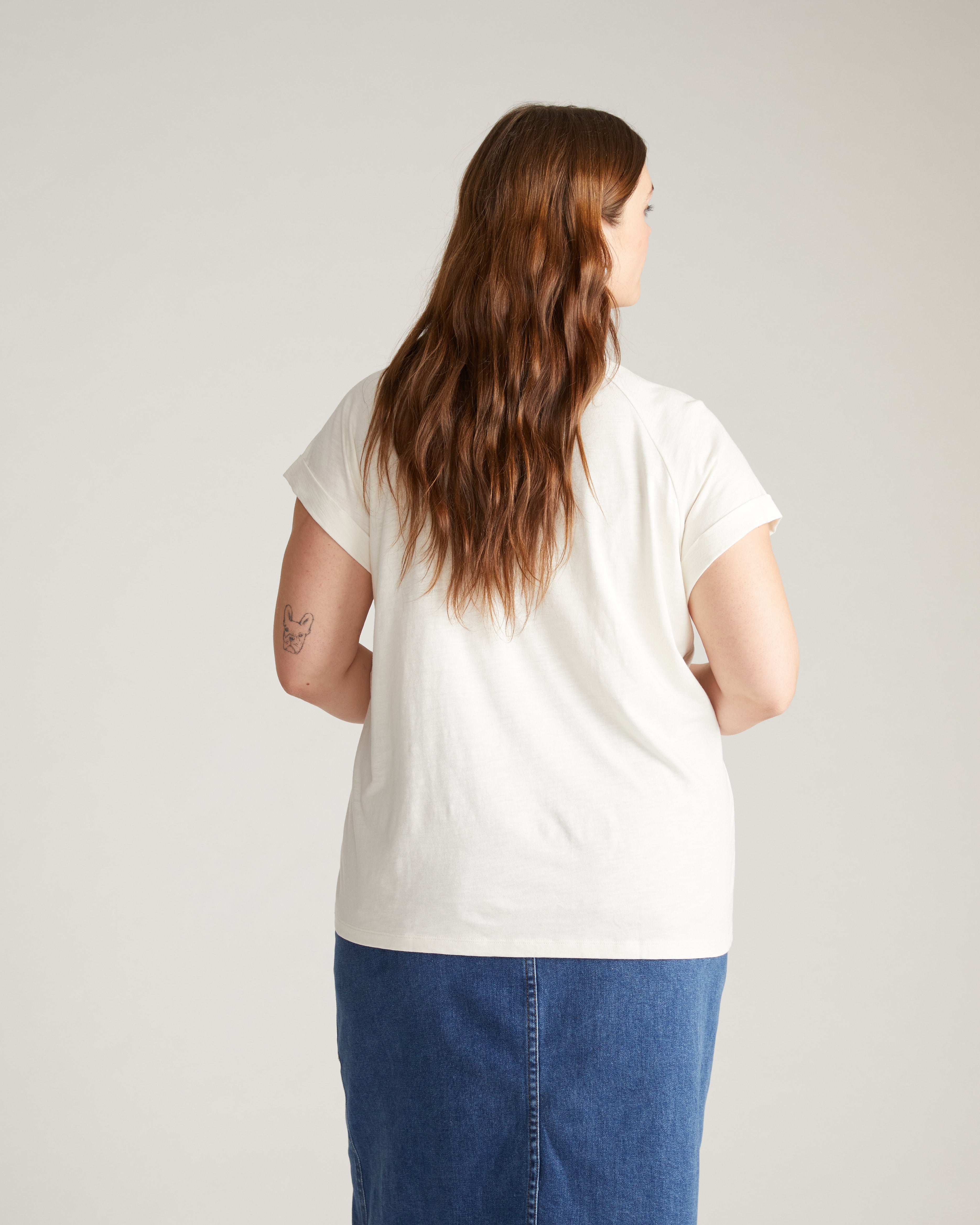 This raglan-style tee is full of boyish charm. Made from our light-as-air jersey, this fabric is a fan favorite thanks to its super-soft feel and breathable cotton/modal blend. Its lightweight nature creates an easy-fitting silhouette, complete with a chest pocket and rolled-up sleeve details.