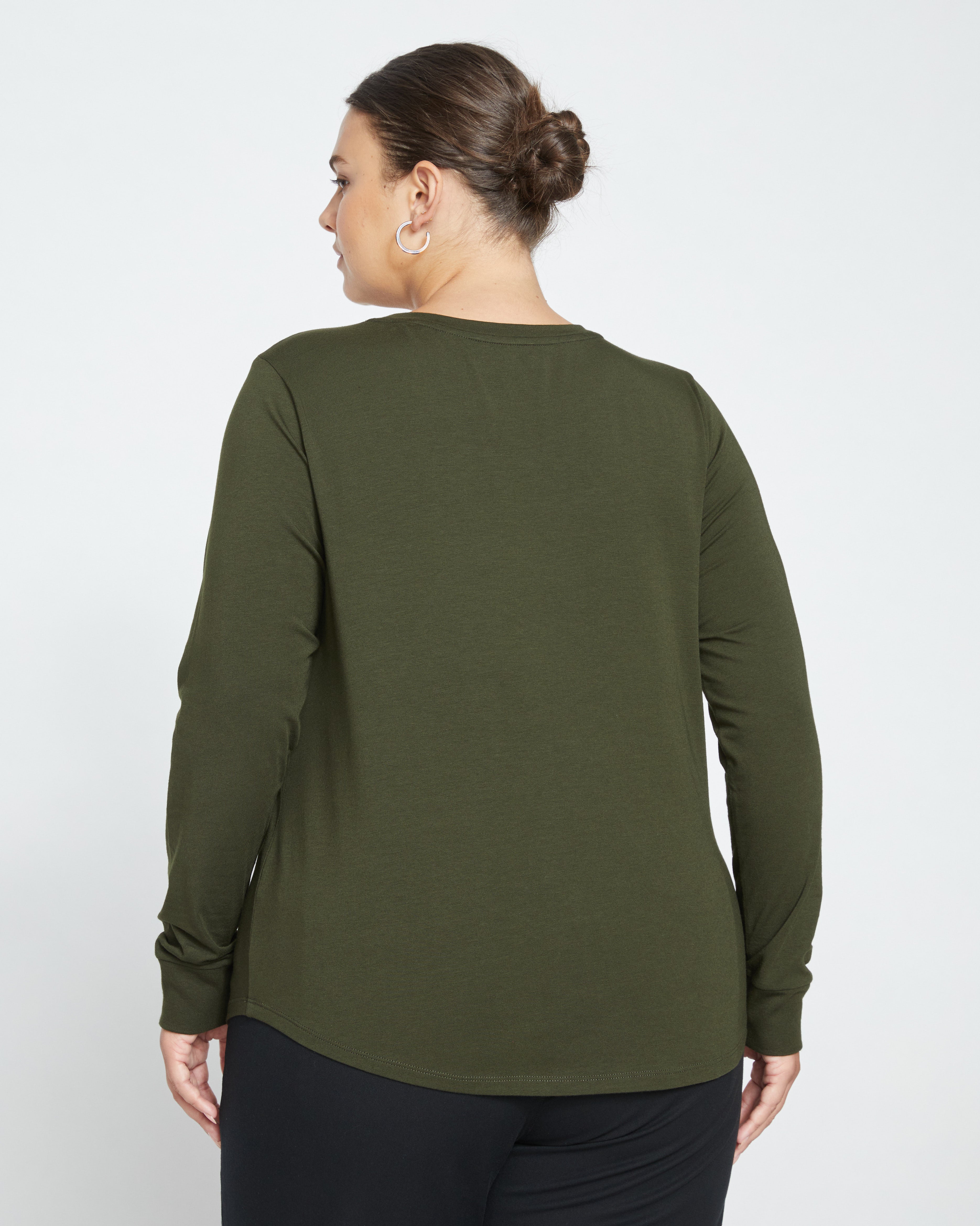Our signature tee with long sleeves. Made from an ultra soft Peruvian cotton blend that's soft, durable, and breathable, this long sleeve tee is a must-have basic (that's anything but). Designed specifically for you, we included a casual crew, curved hem, and sleeves that provide comfortable coverage. It's the perfect piece to incorporate into your collection.