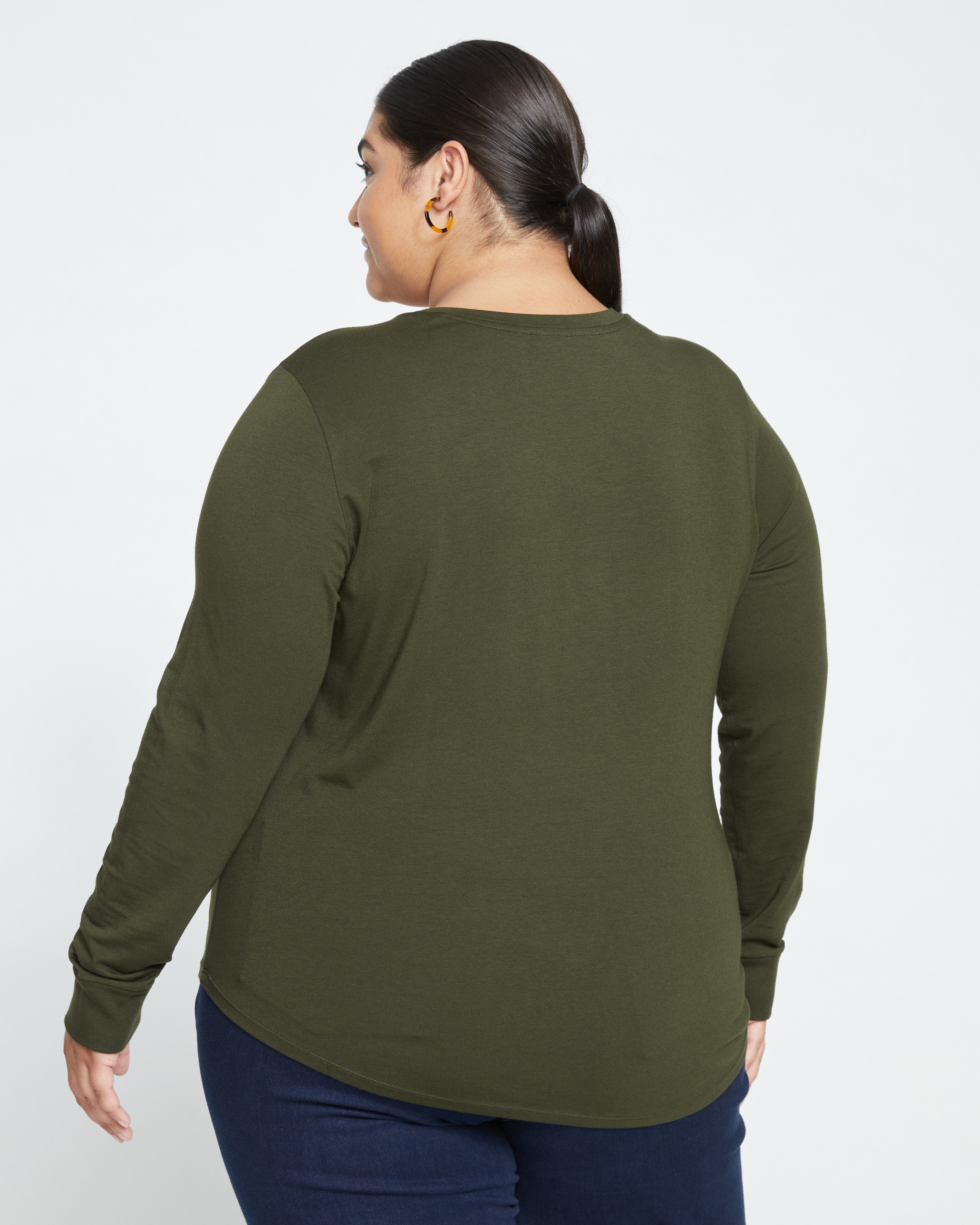 Made from an ultra soft Peruvian cotton blend that's soft, durable, and breathable, this long sleeve tee is a must-have basic (that's anything but). Designed for you, we included a perfect down-to-there v-neck, curved hem, and sleeves that provide comfortable coverage.