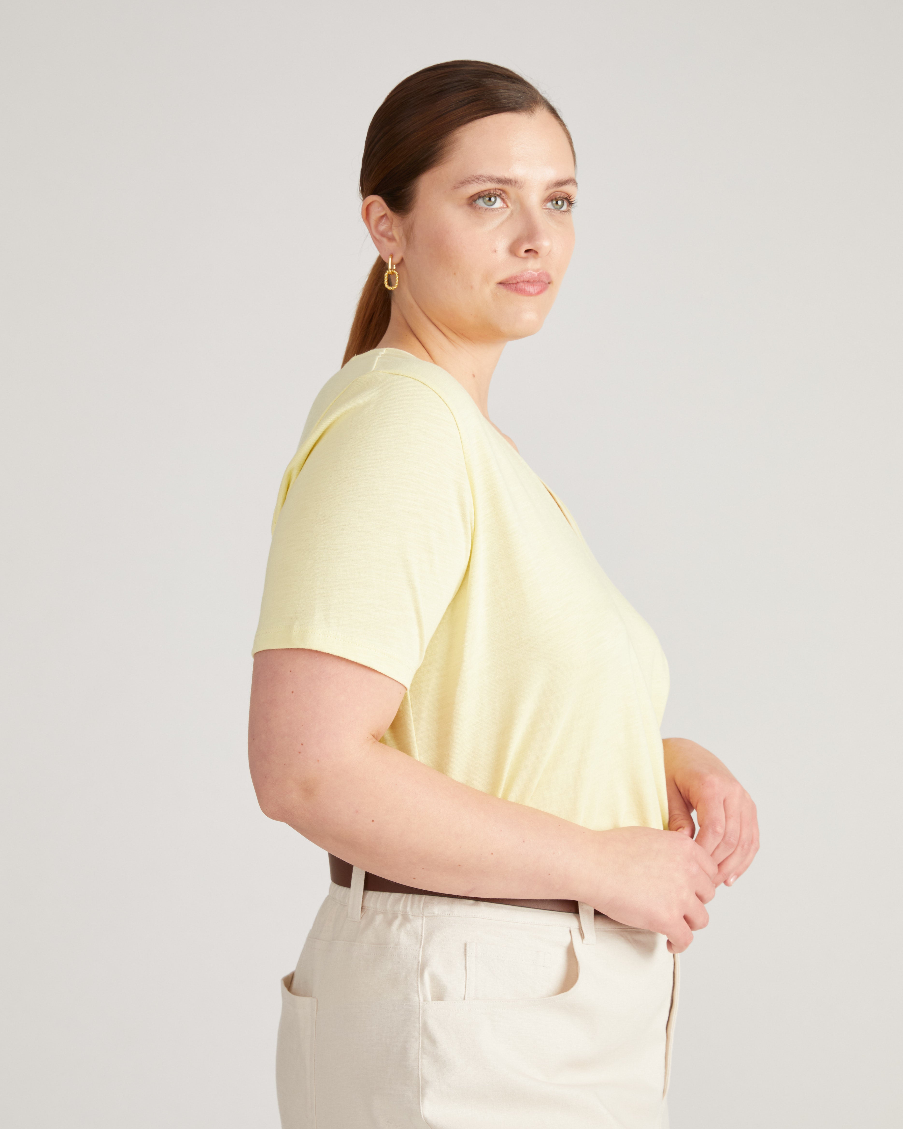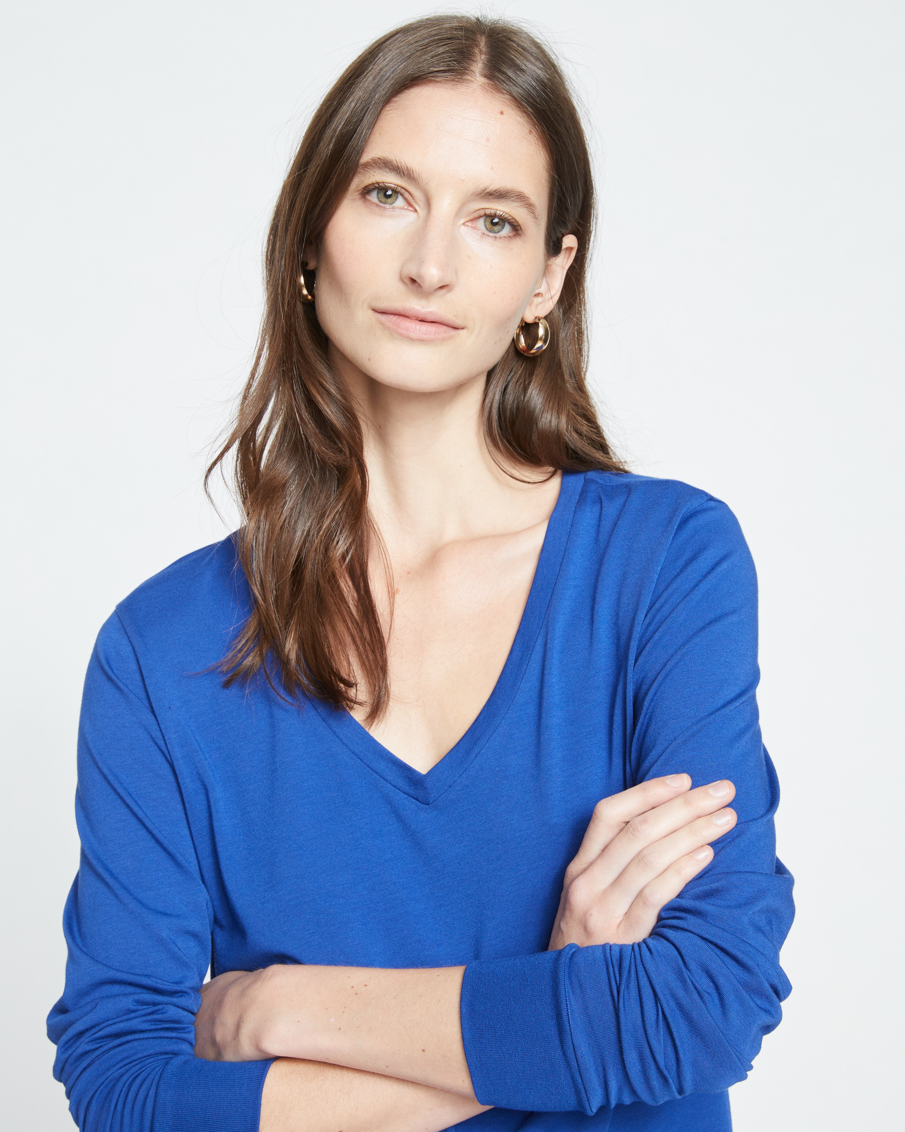 Light-As-Air Long Sleeve V Neck Tee - Brulee