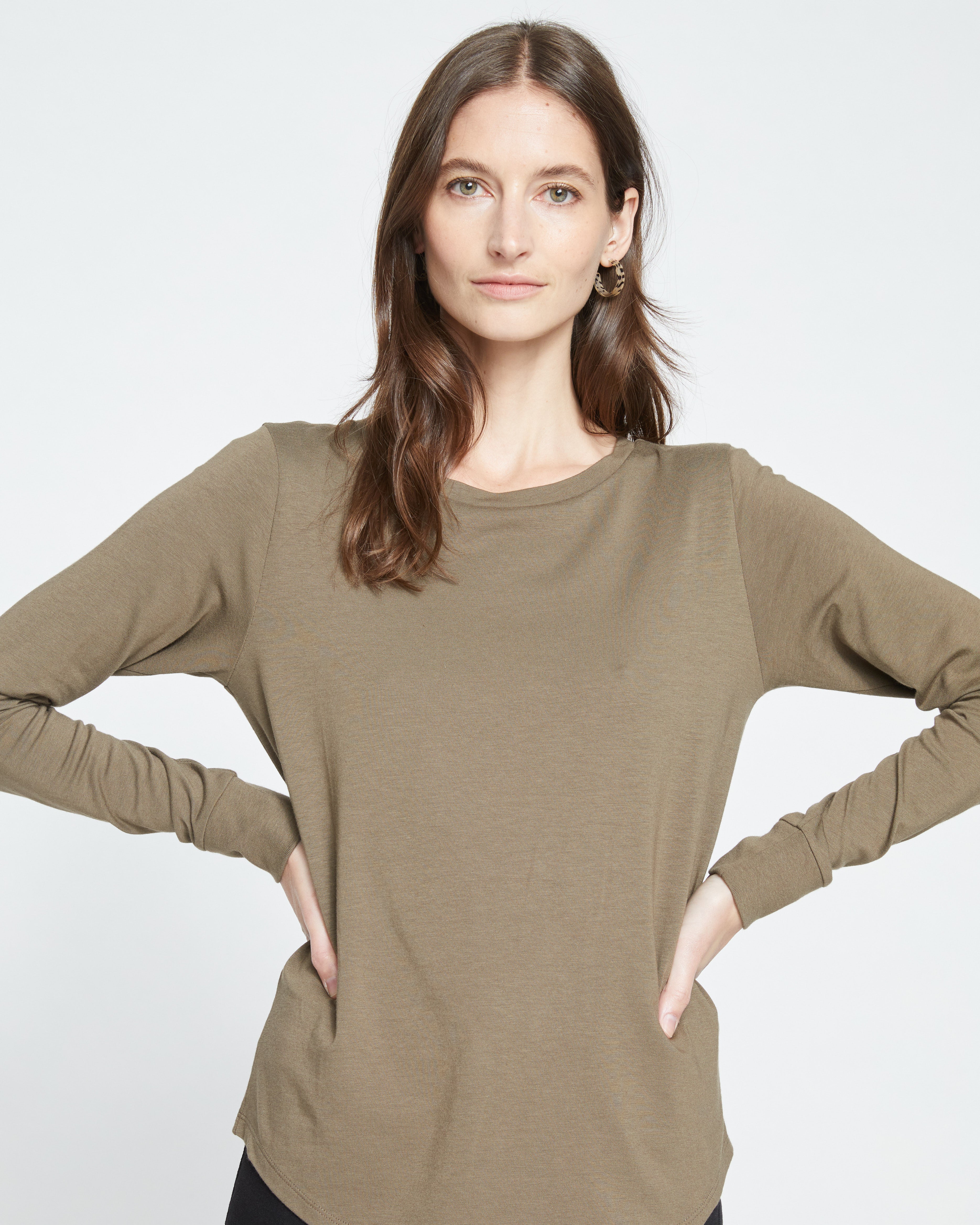 Light-As-Air Long Sleeve Crew Neck Tee - Brulee