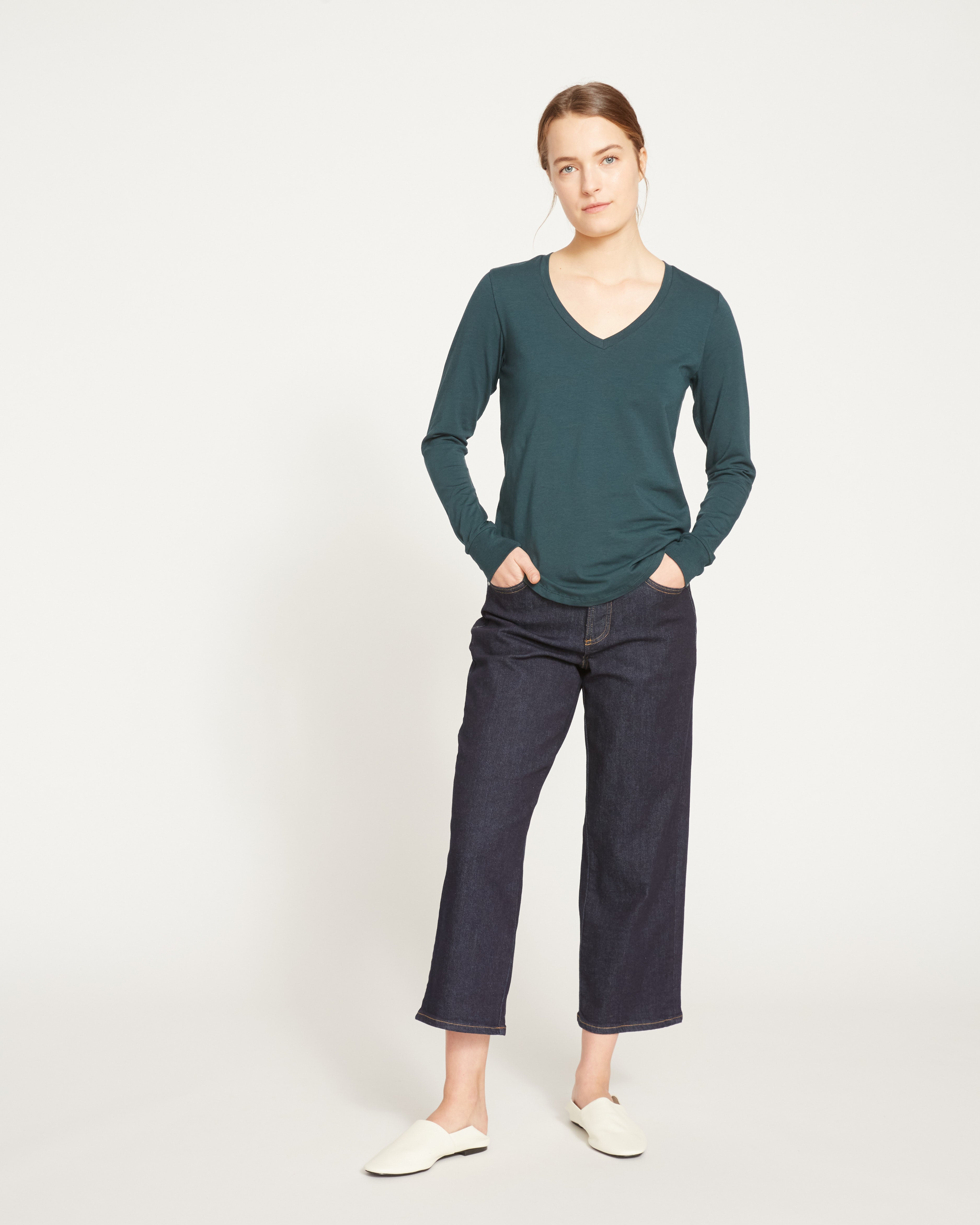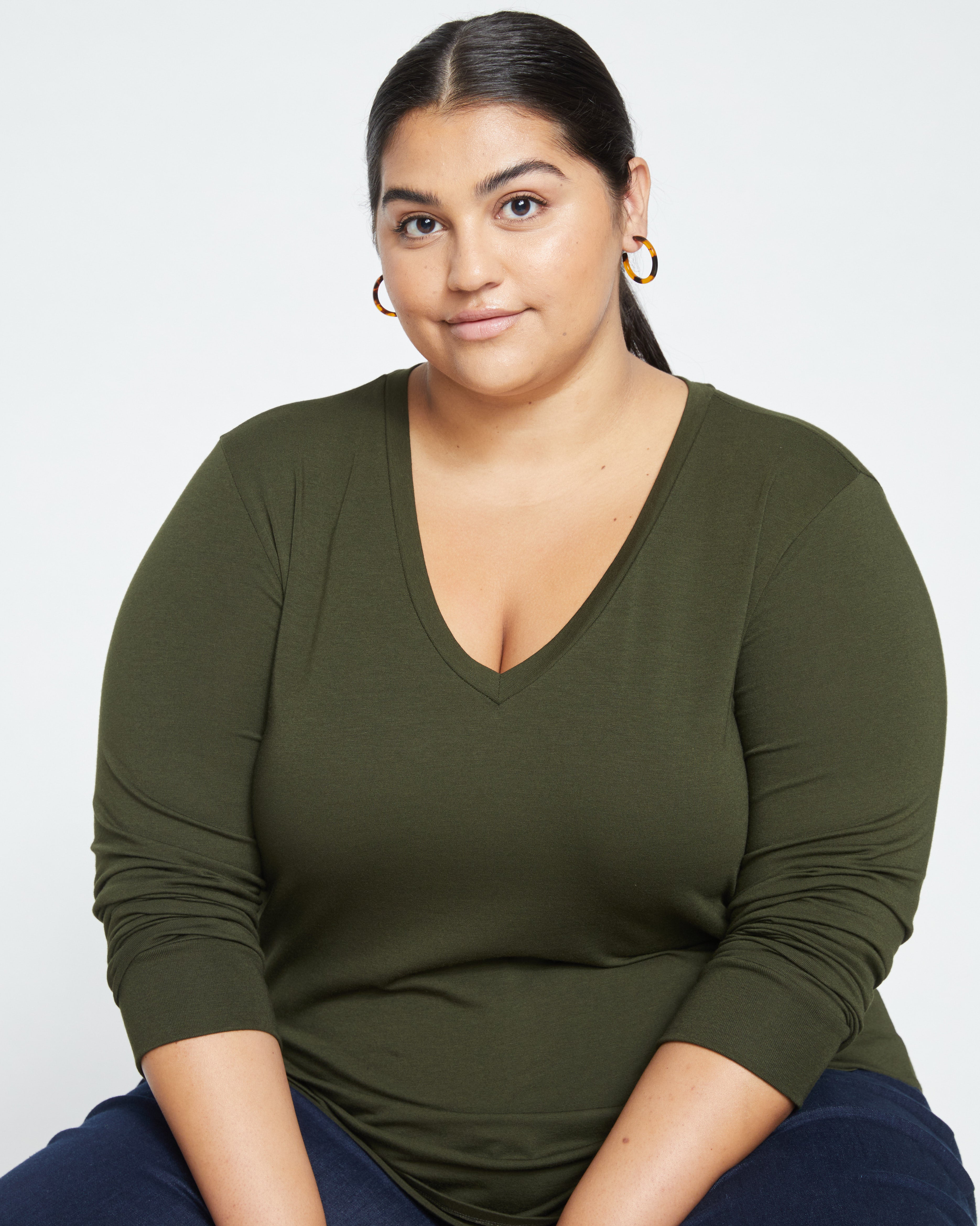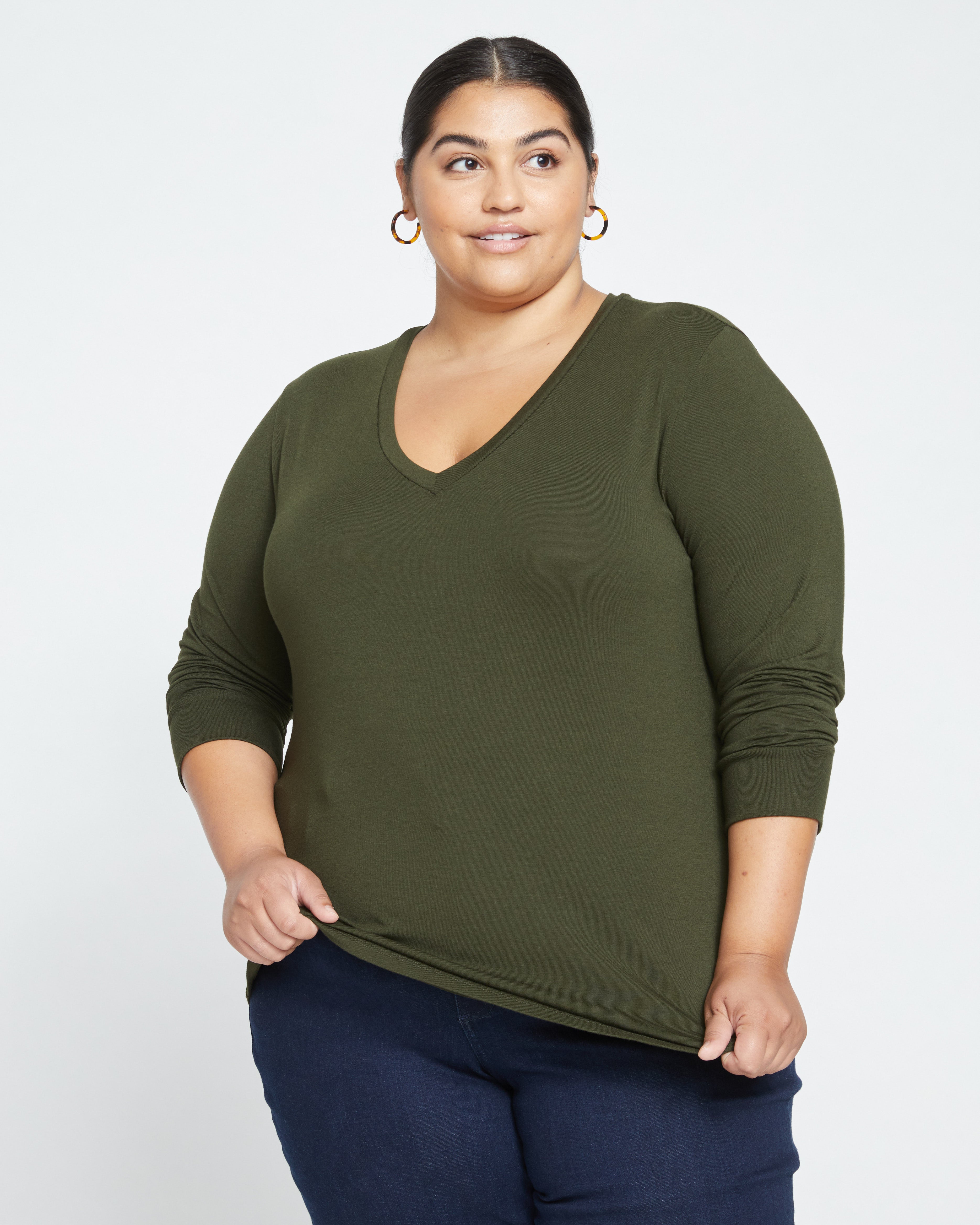 Light-As-Air Long Sleeve V Neck Tee - Nori