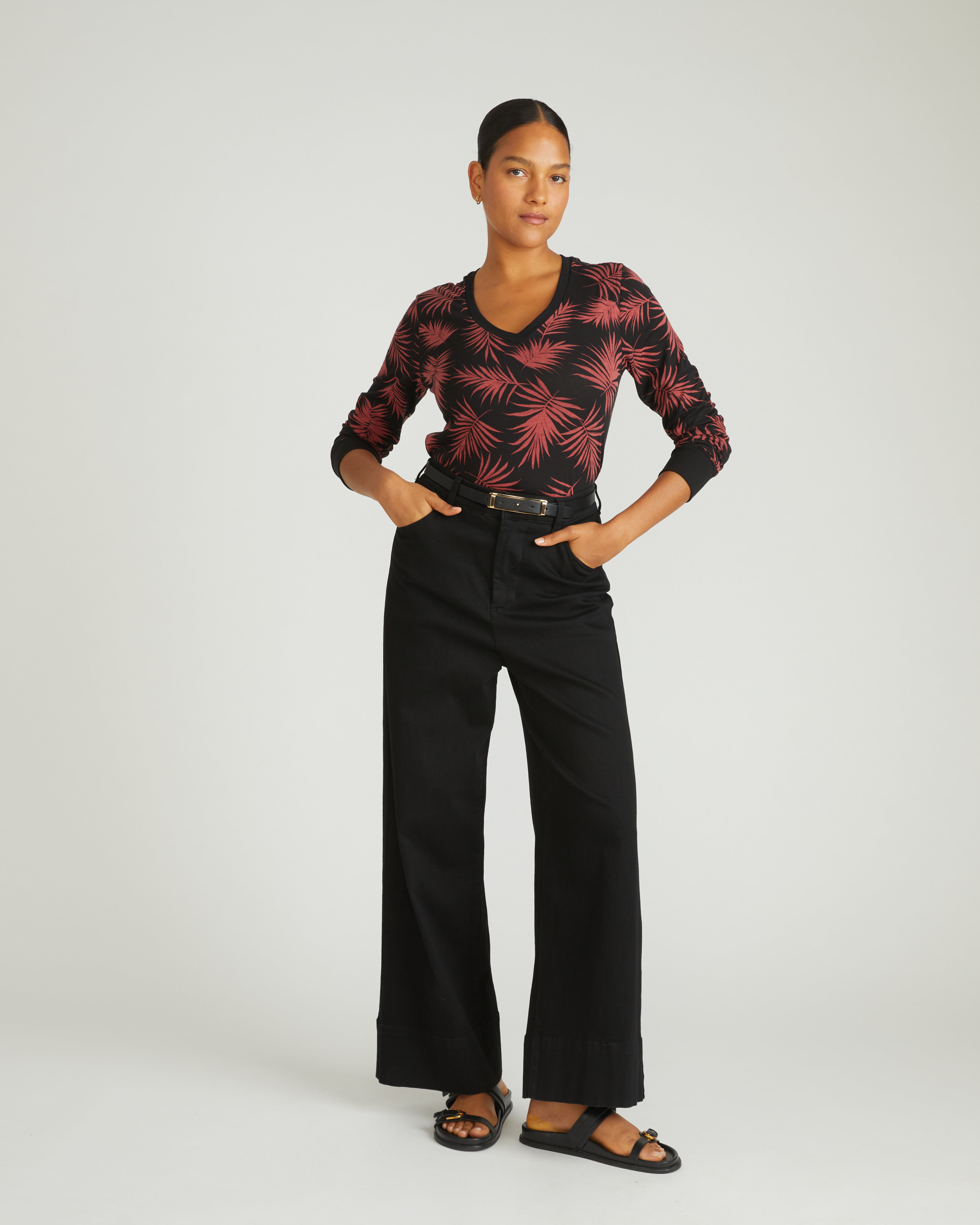 Light-As-Air Long Sleeve V Neck Tee - Black