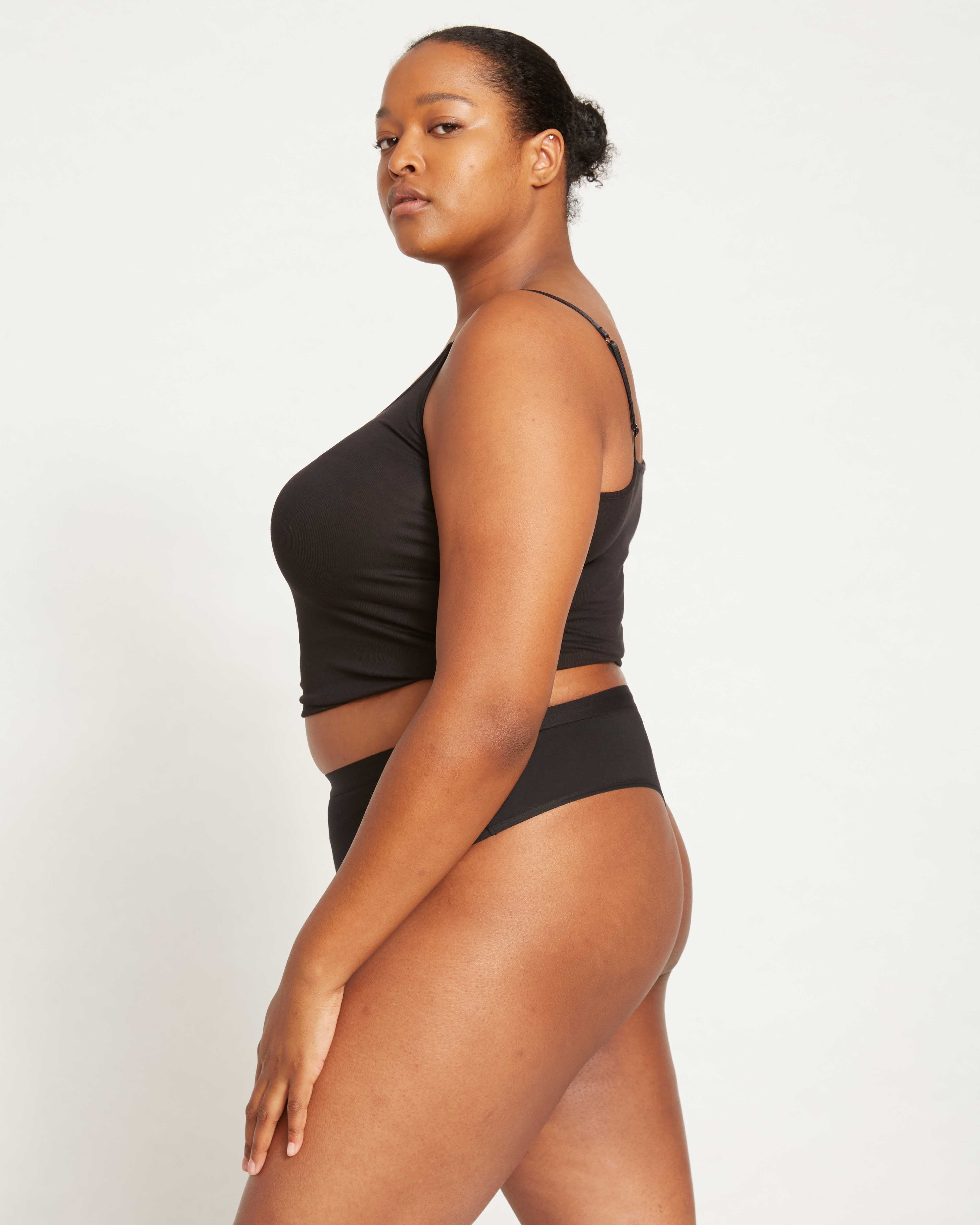 We made the unsung wardrobe heroes you've been missing. The best basics—underwear, perfected. This high-rise thong boasts maximum coverage without any visible lines on your backside. It will sit at your natural waist and under the waistband of our high-rise denim styles. With a tonal elastic band and soft trim, it's made from sustainable cotton jersey blended with modal for a smooth, light-as-air feel and second-skin fit (like it's barely there). You shouldn't have to think about underwear—leave that to US. We've thoughtfully engineered each pair to feel so comfortable you’ll forget you’ve got anything on at all.